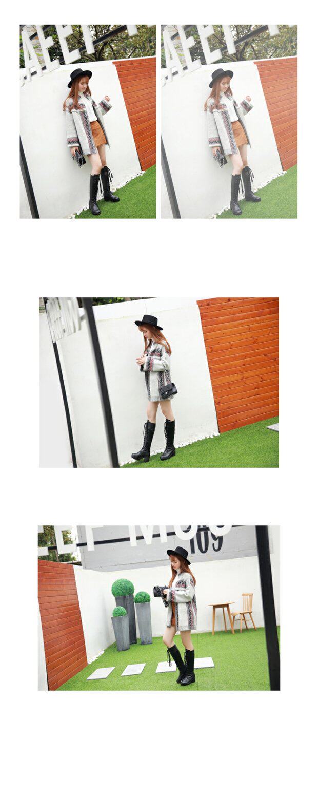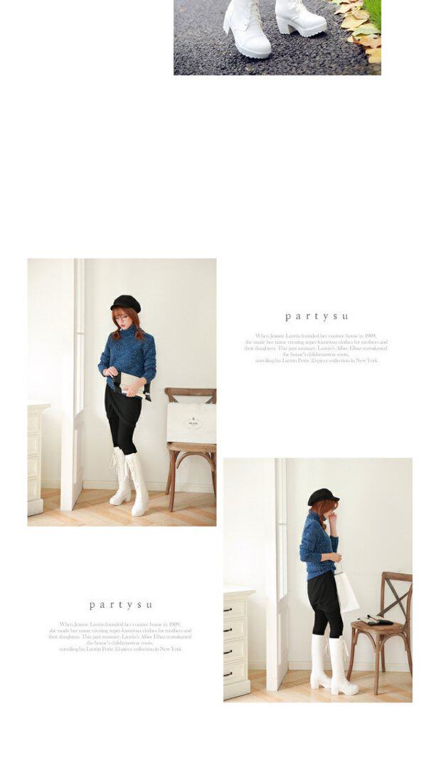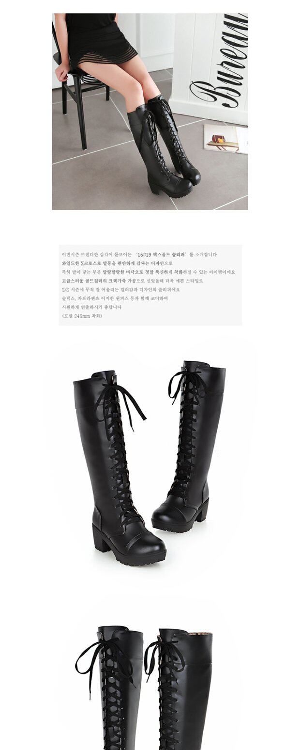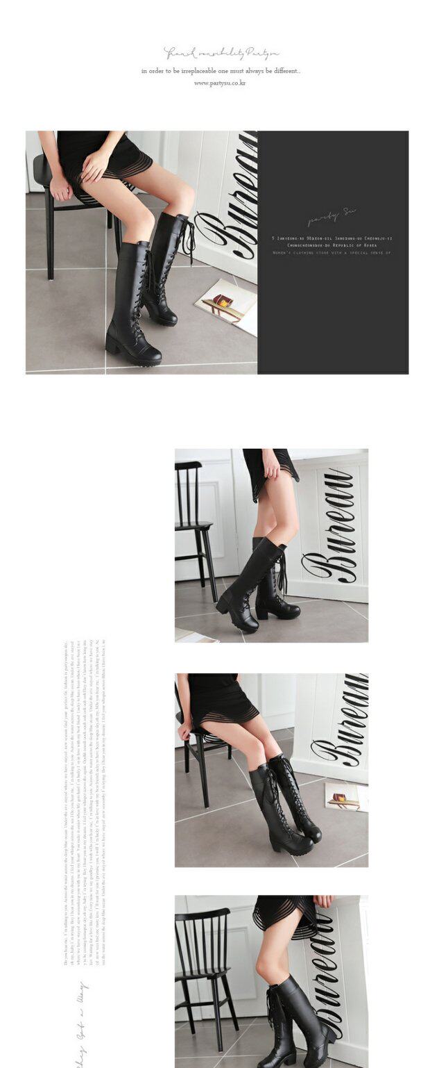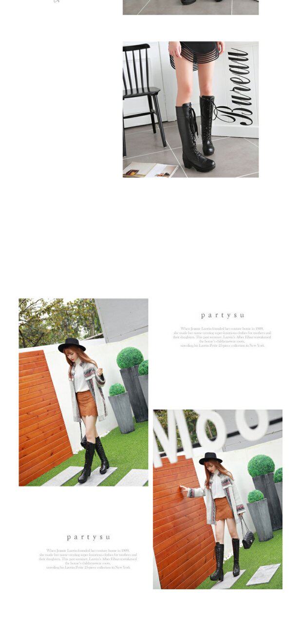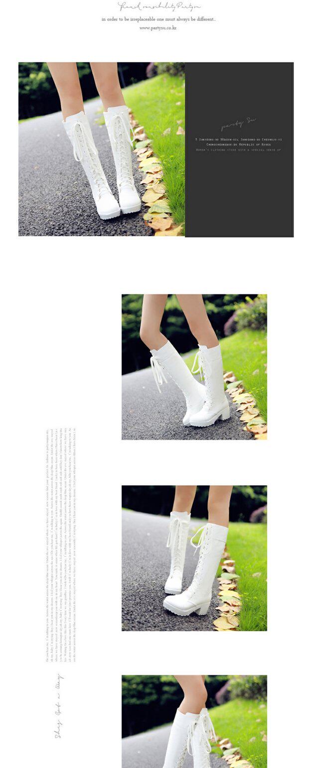 中跟女靴子cos角色扮演舞台英倫騎士靴系帶白色粗黑色高筒馬丁靴