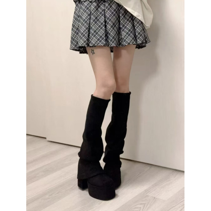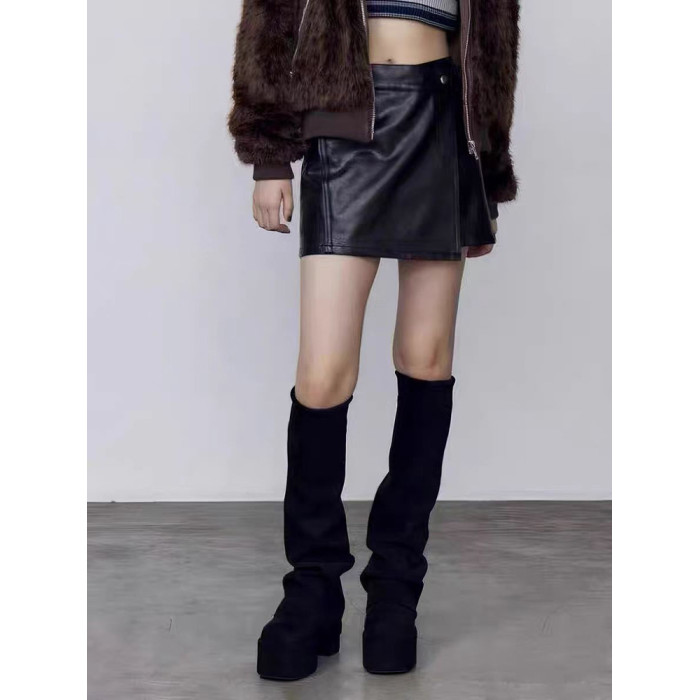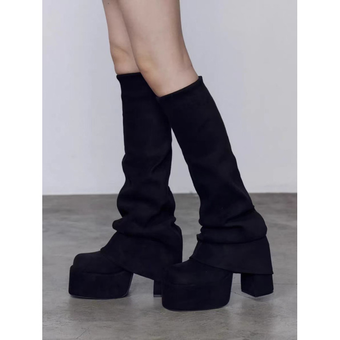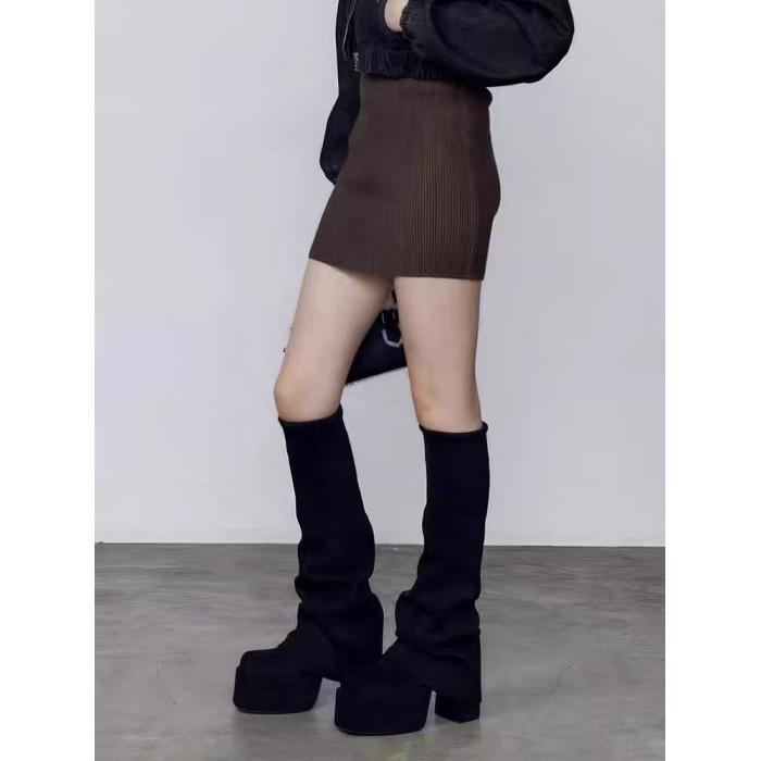 厚底高跟褲琯靴女2025秋冬新款方頭長筒堆堆靴顯瘦彈力瘦瘦騎士靴