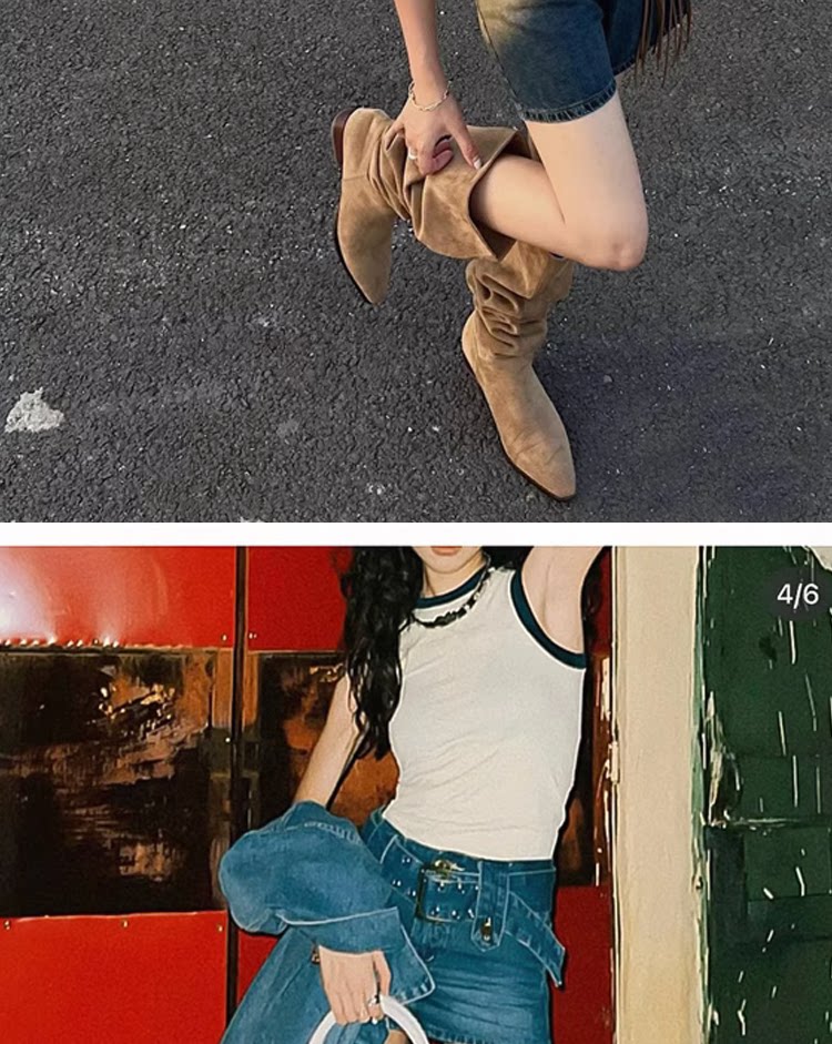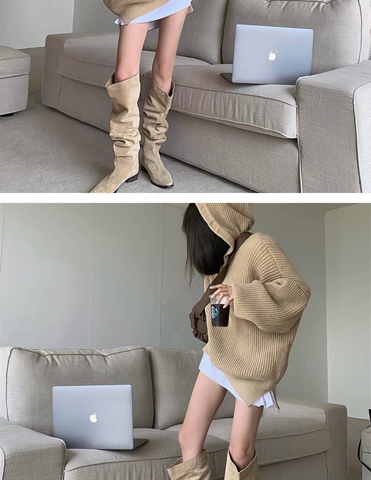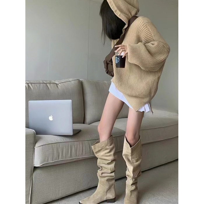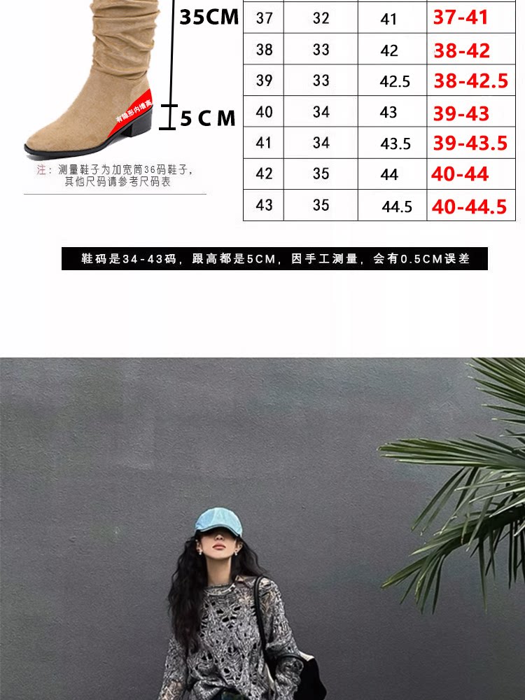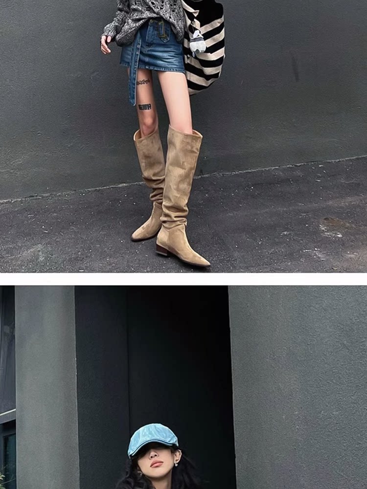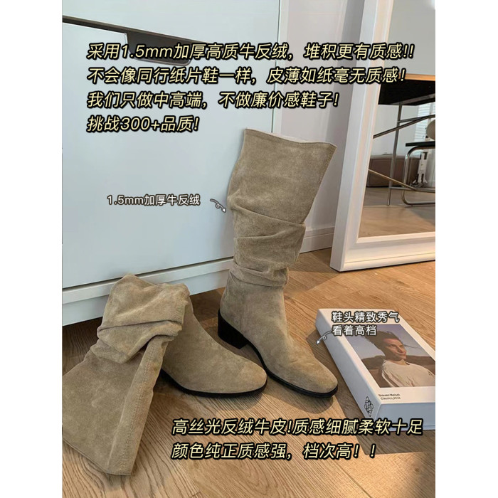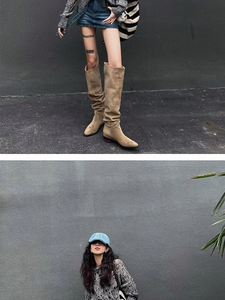 春夏卡其色美拉德堆堆靴女款復古褶皺2025新款爆款靴子長筒靴長靴