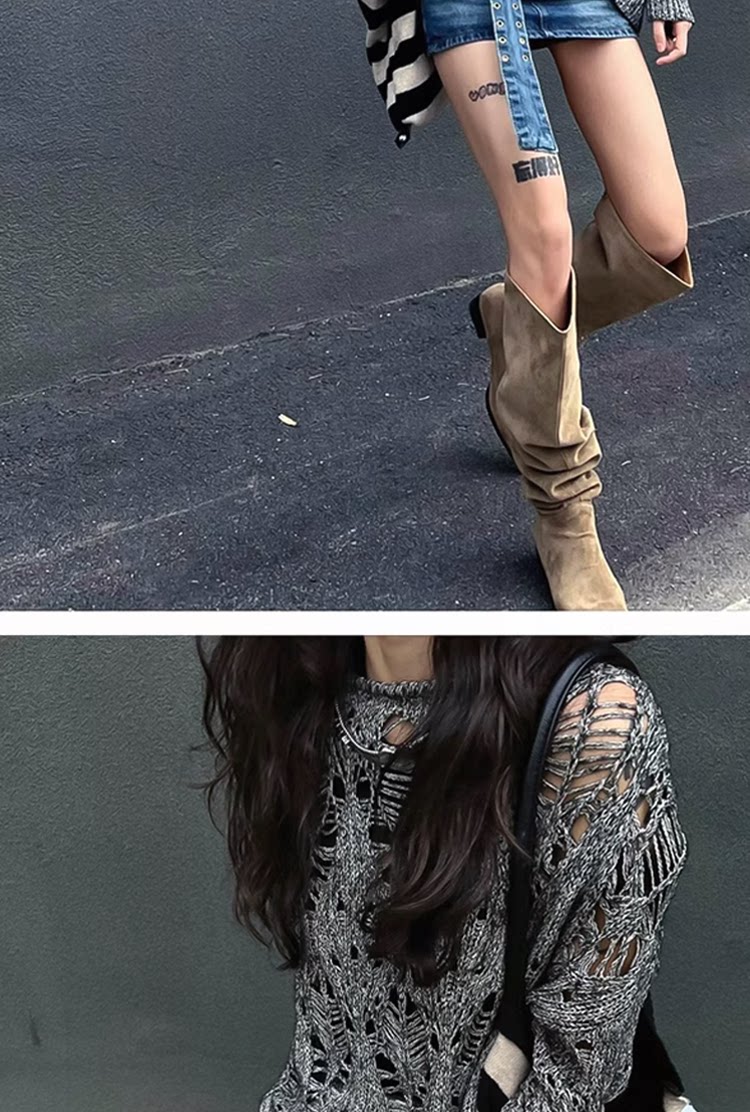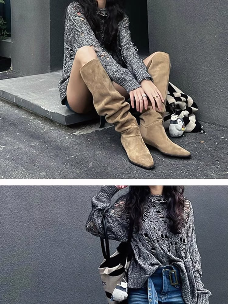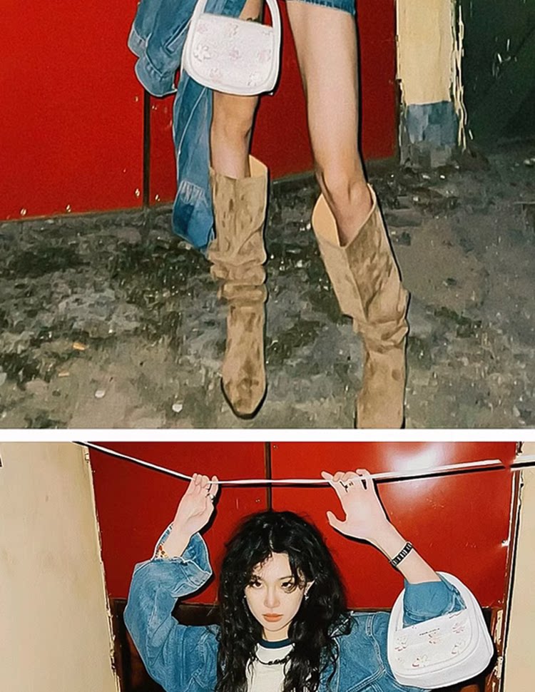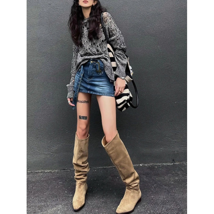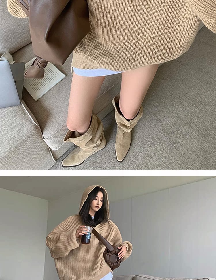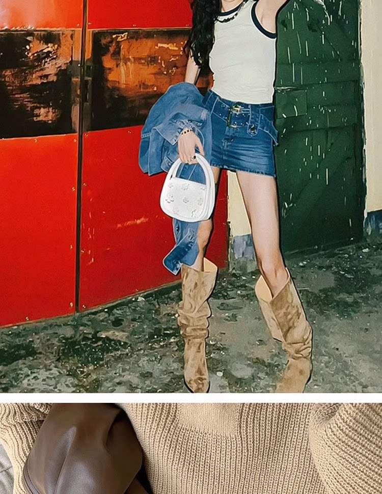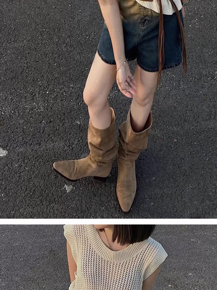 春夏卡其色美拉德堆堆靴女款復古褶皺2025新款爆款靴子長筒靴長靴