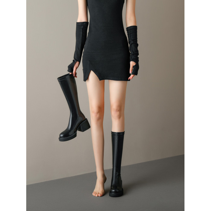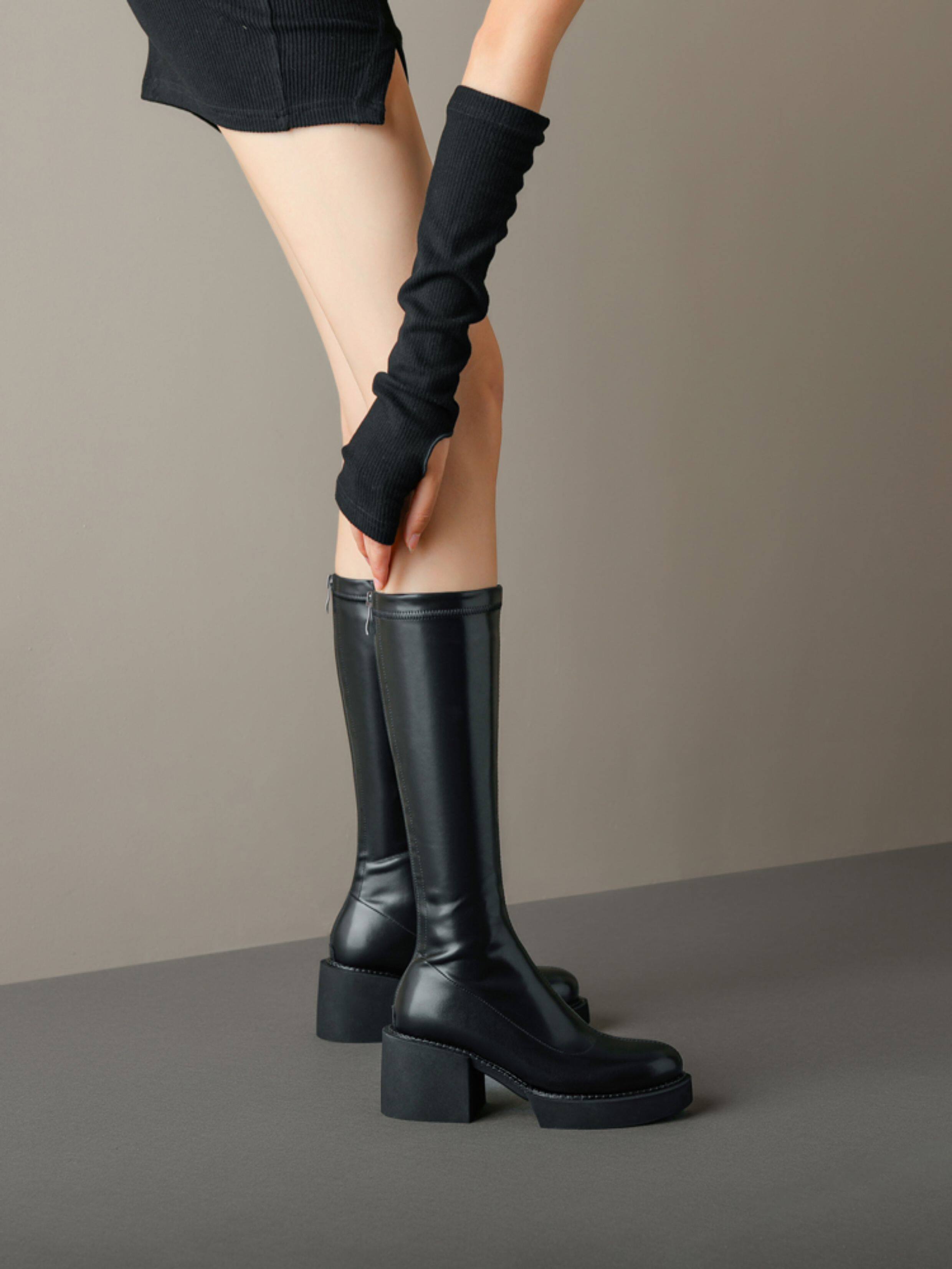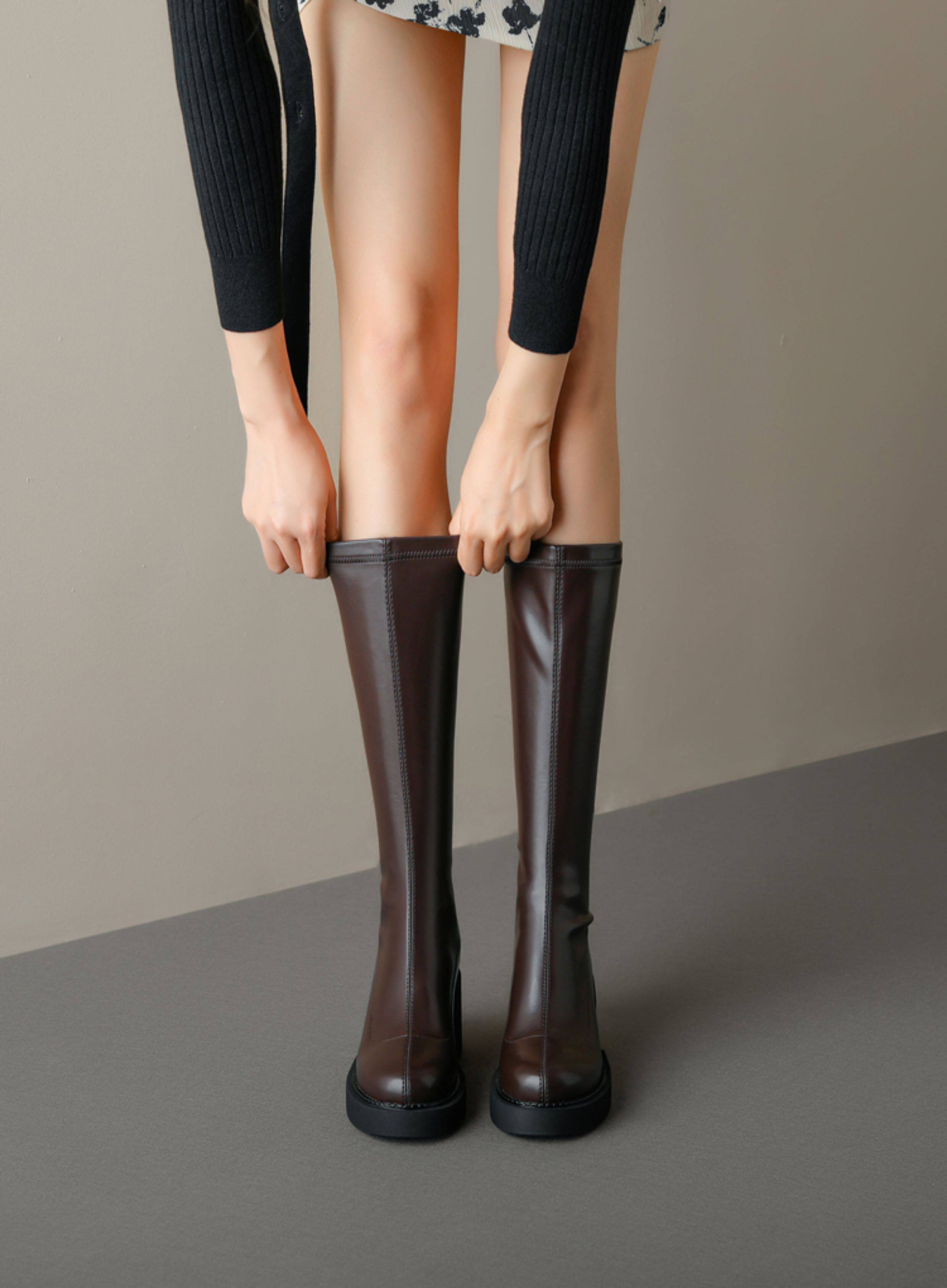 小鳥腿厚底靴子女長筒靴小個子細腿長靴瘦瘦靴小筒圍高筒靴騎士靴