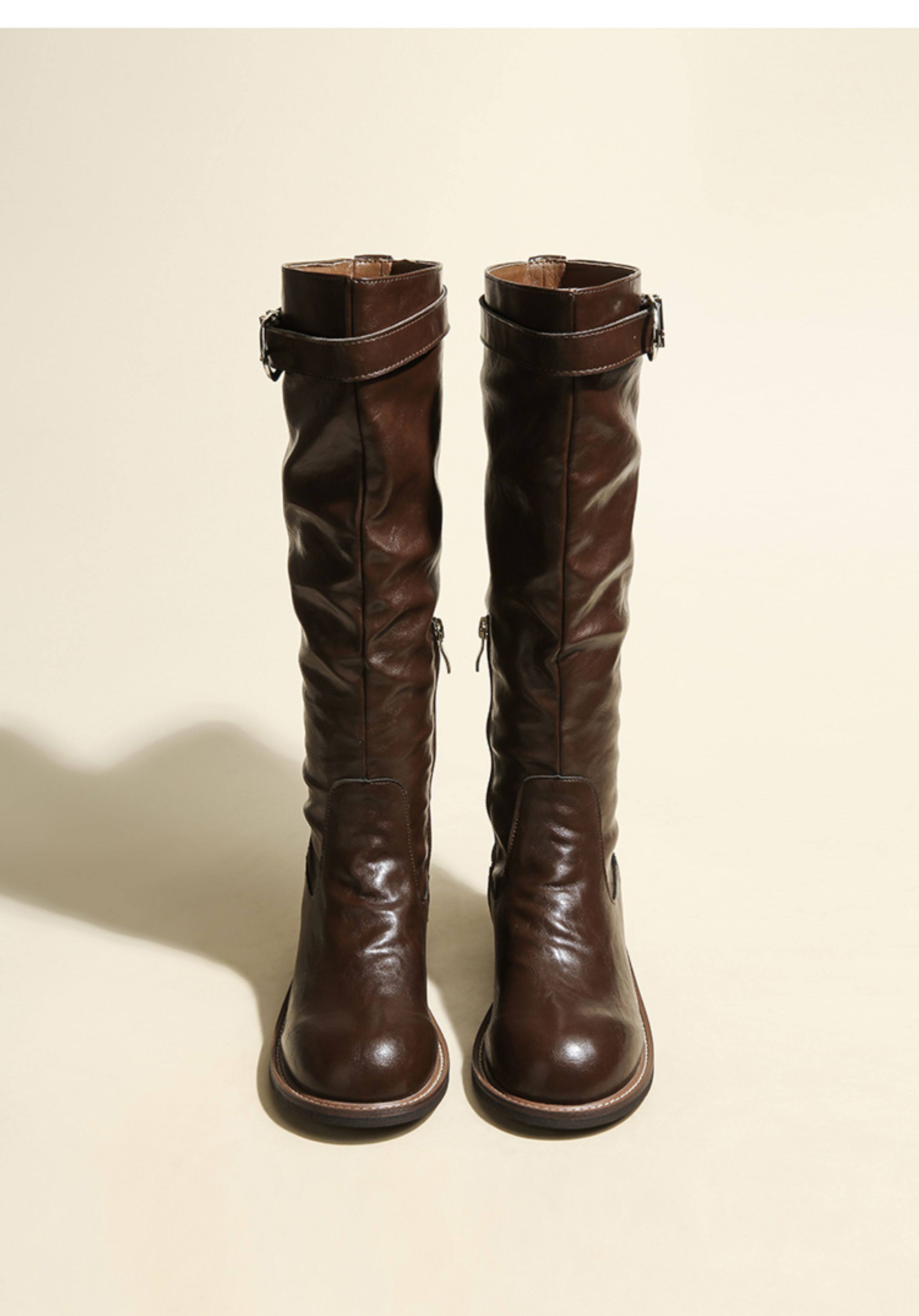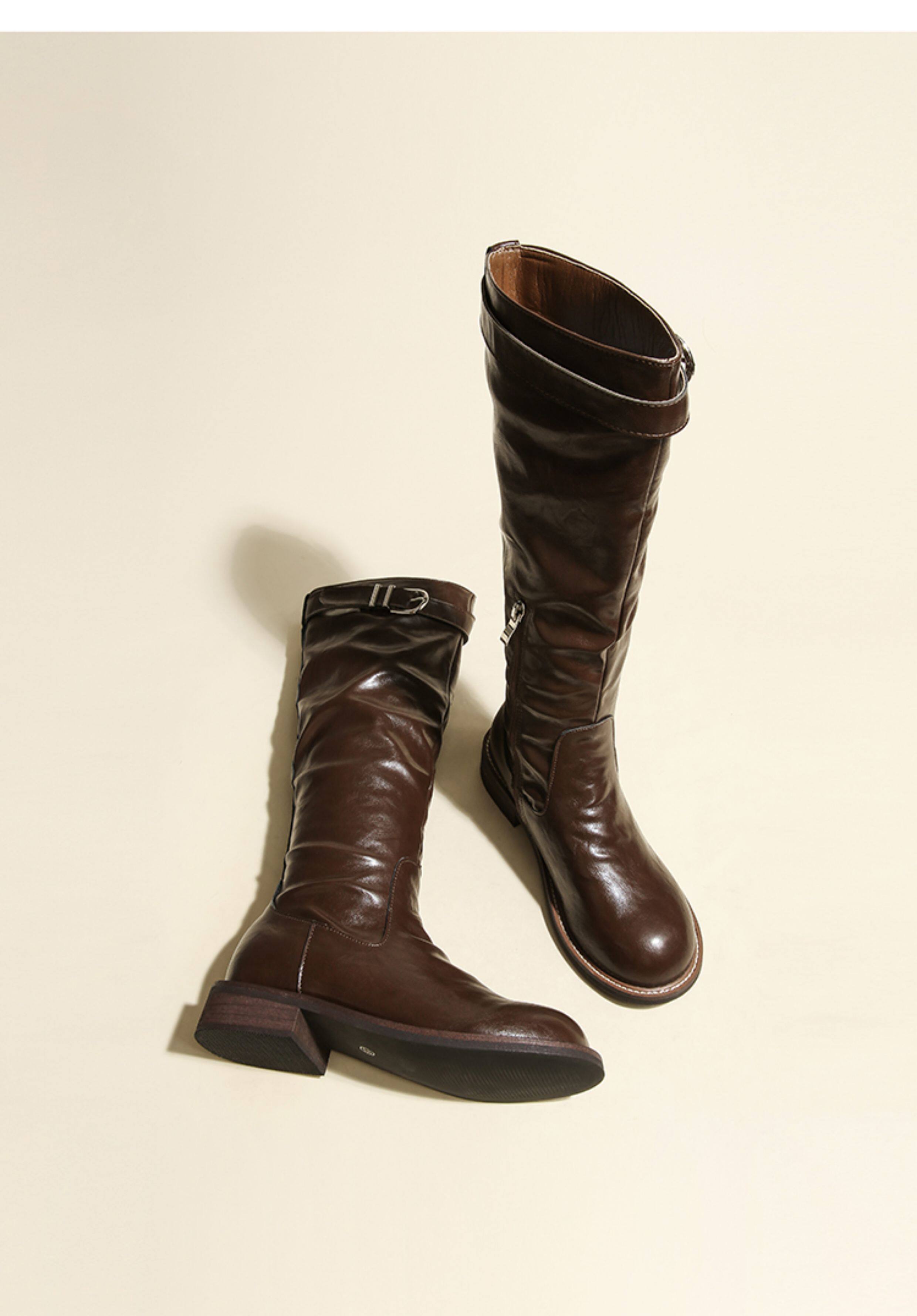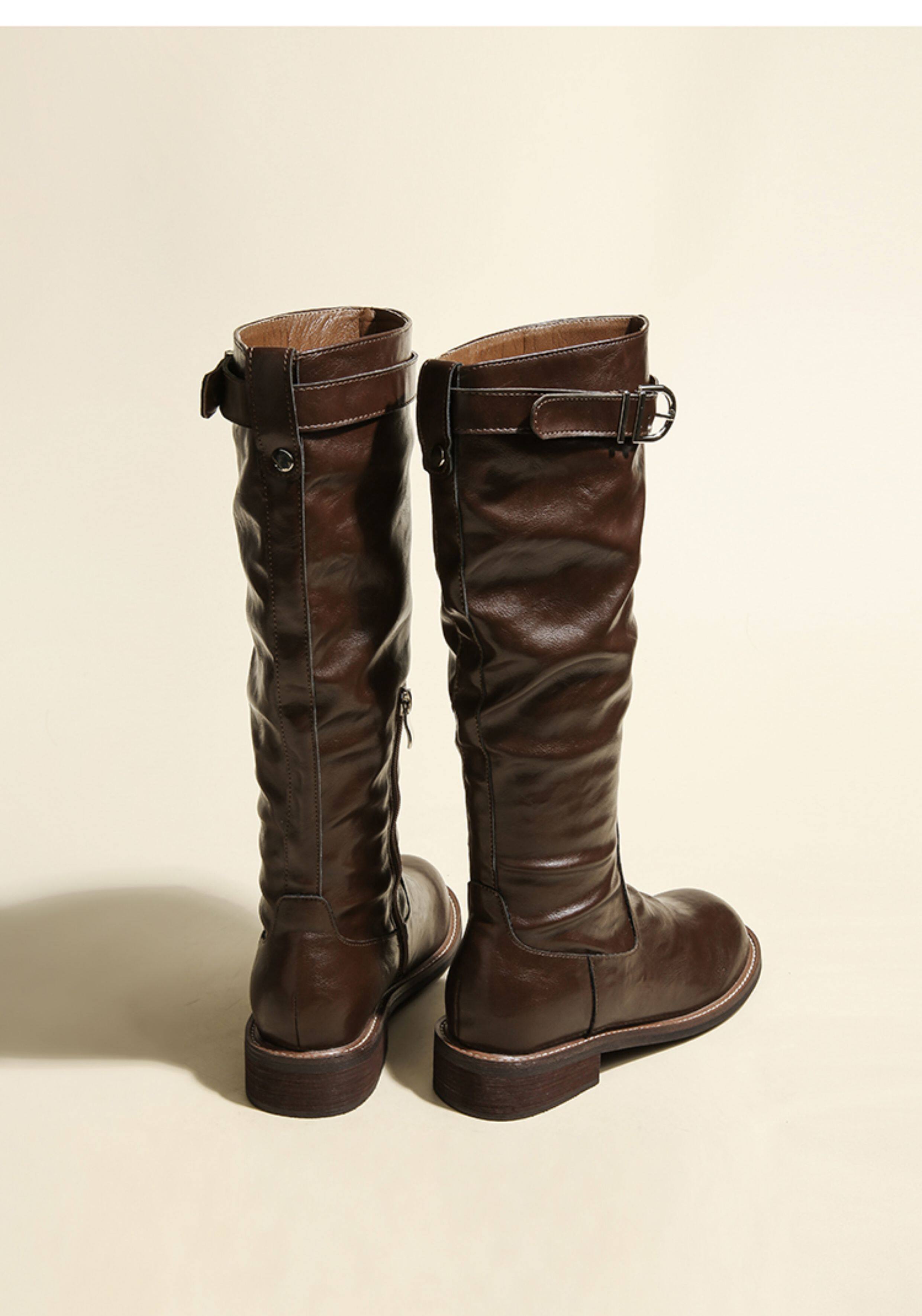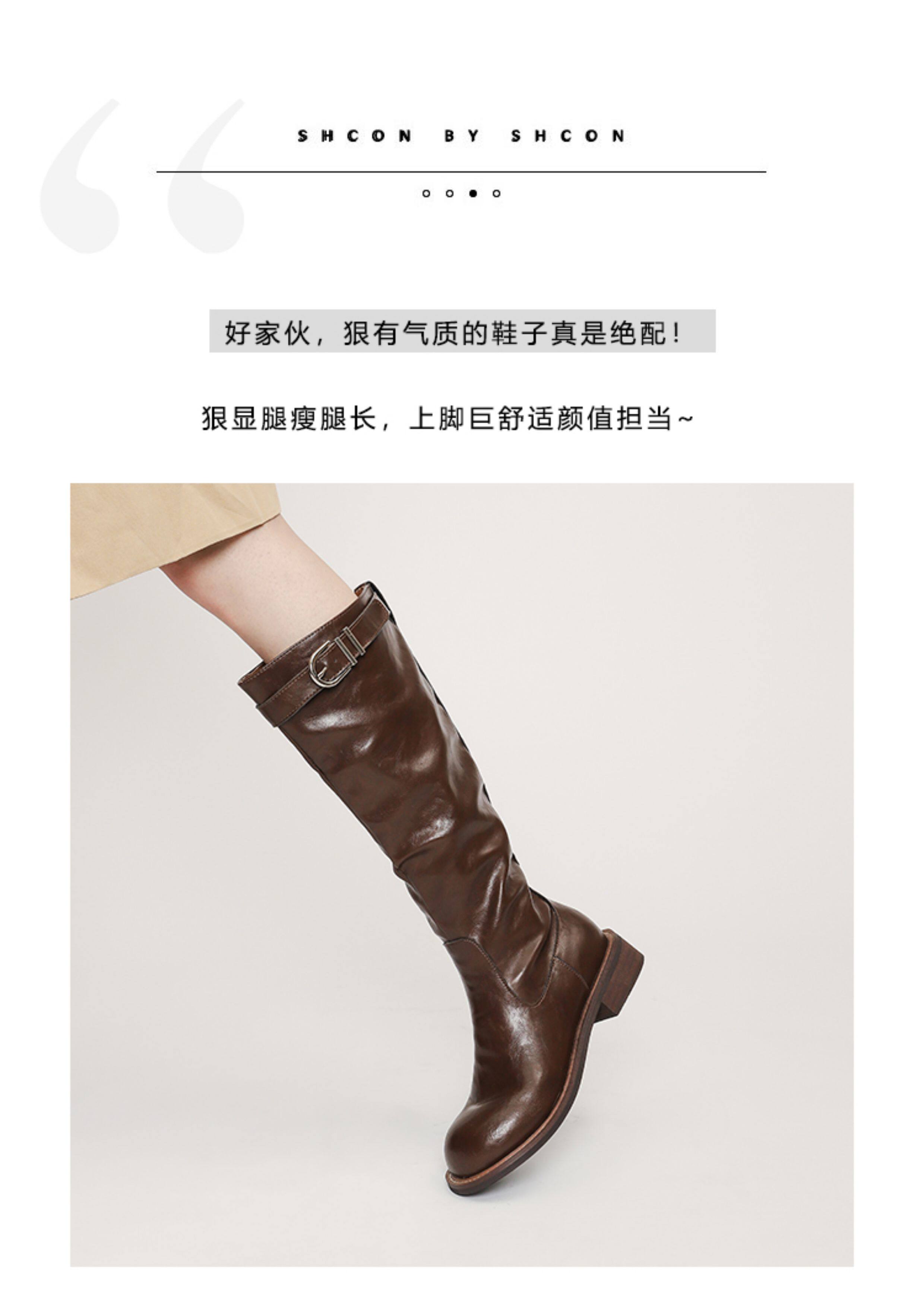 棕色高筒胖mm大筒圍長筒靴女粗腿平底英倫風騎士靴大碼長靴41到43