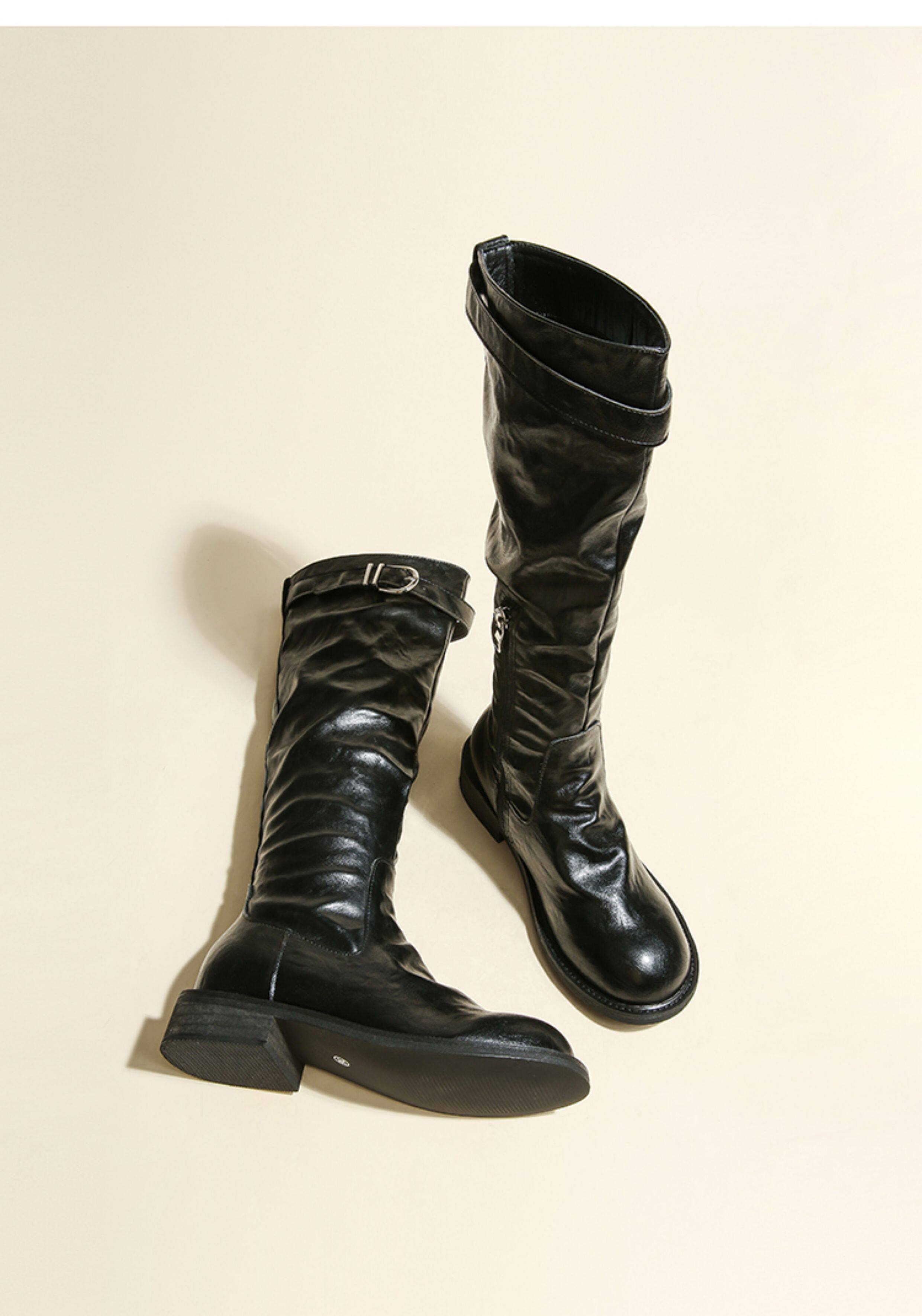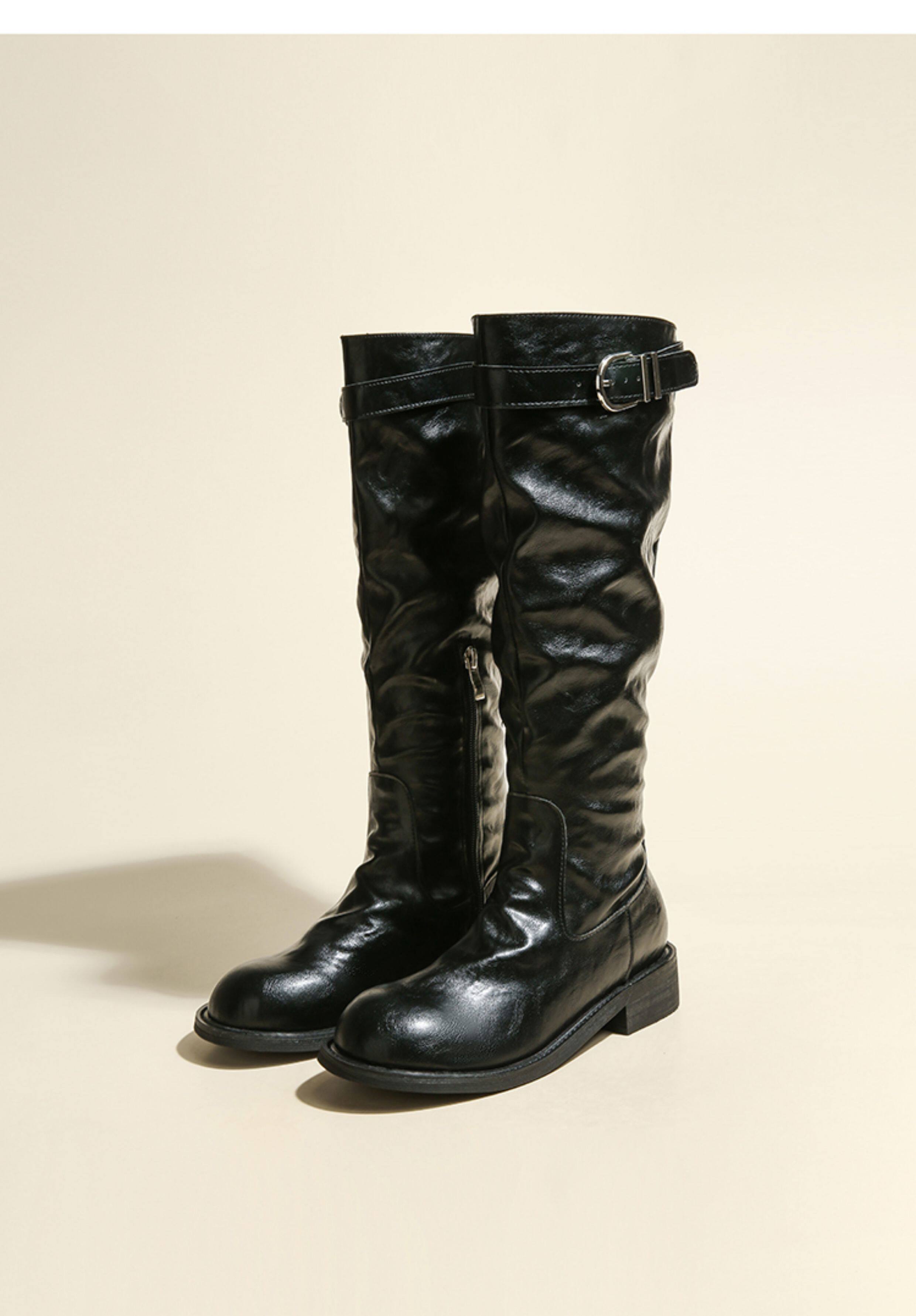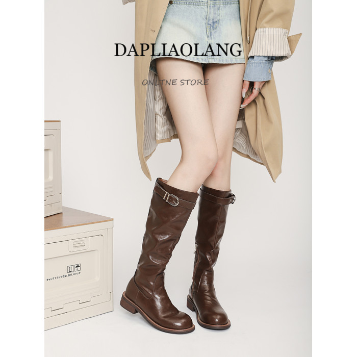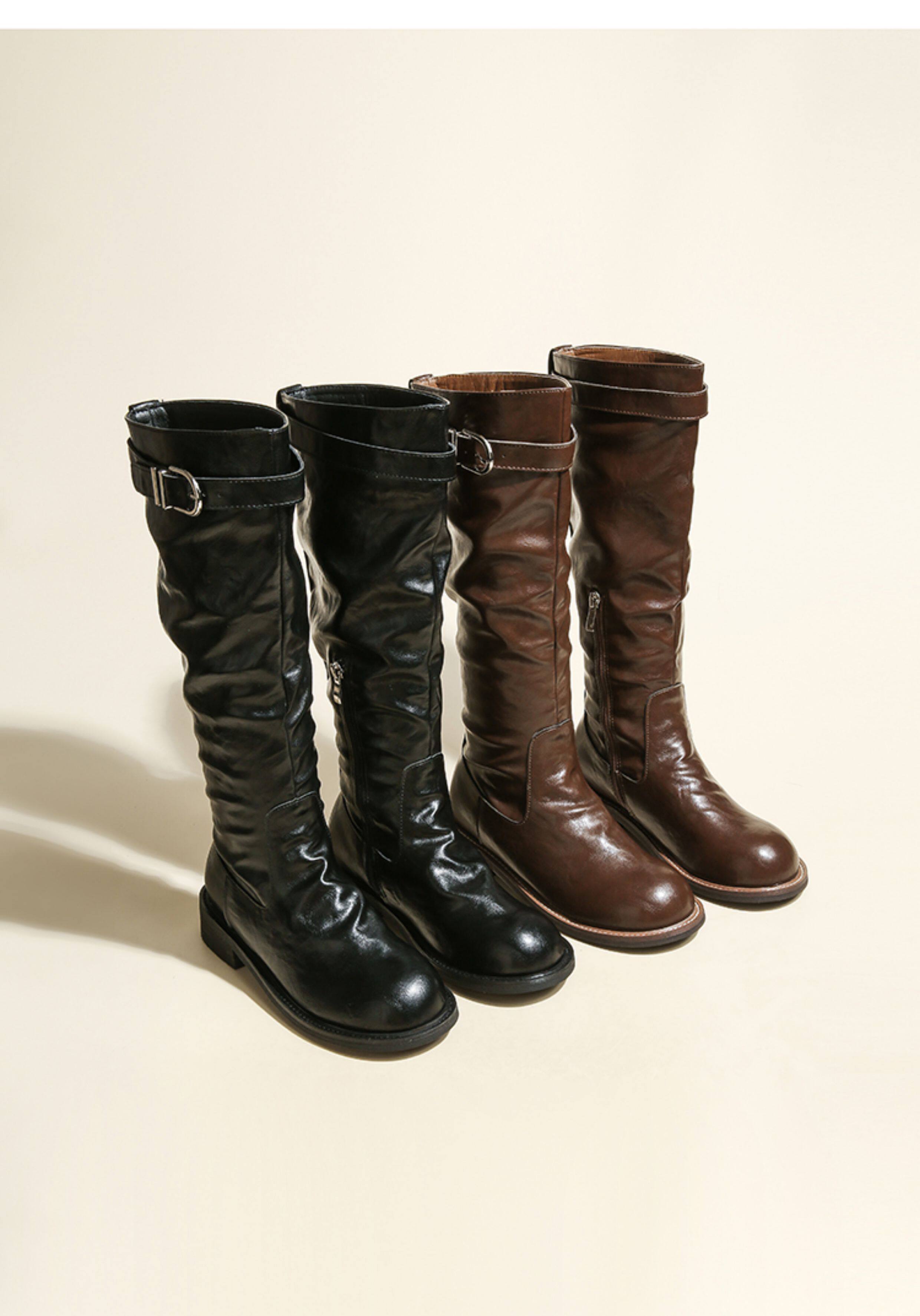 棕色高筒胖mm大筒圍長筒靴女粗腿平底英倫風騎士靴大碼長靴41到43