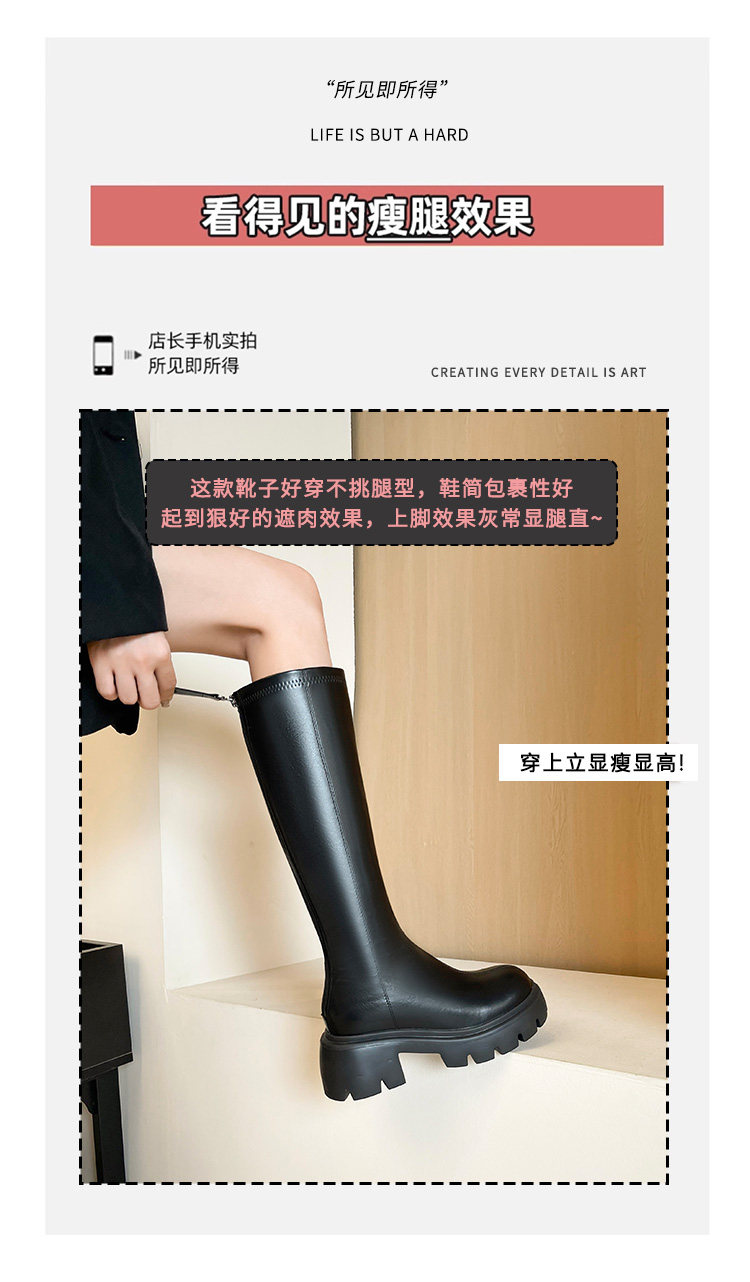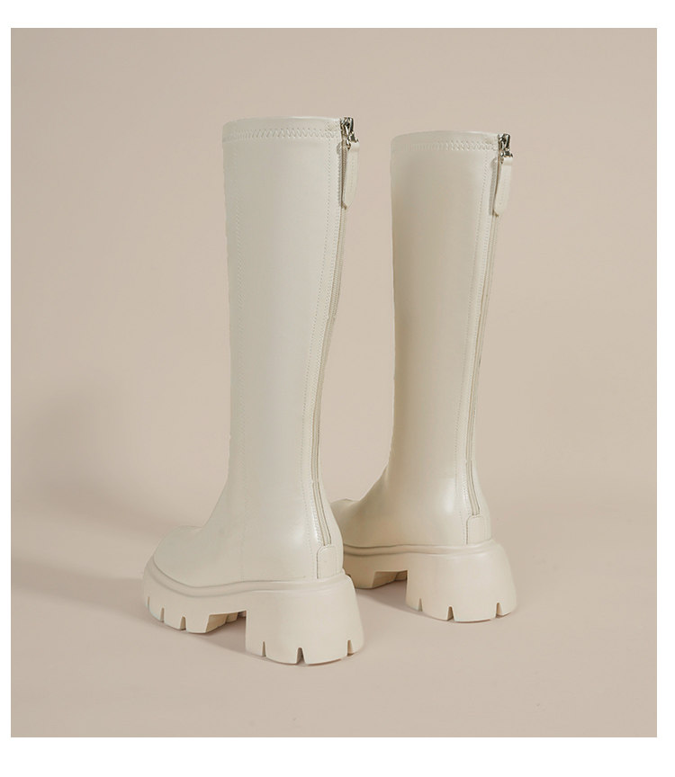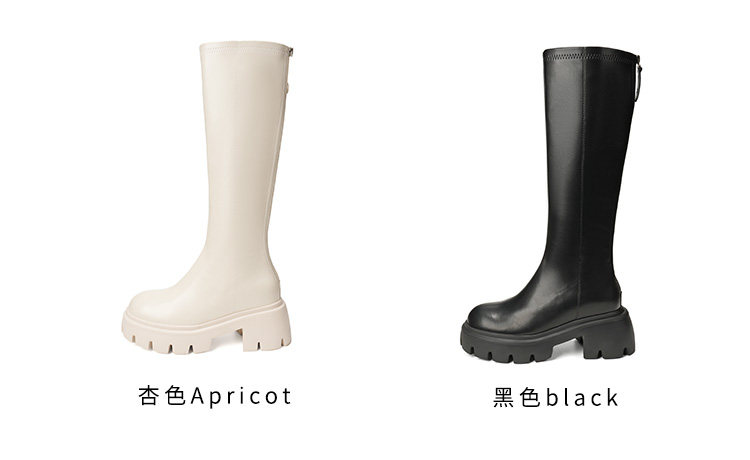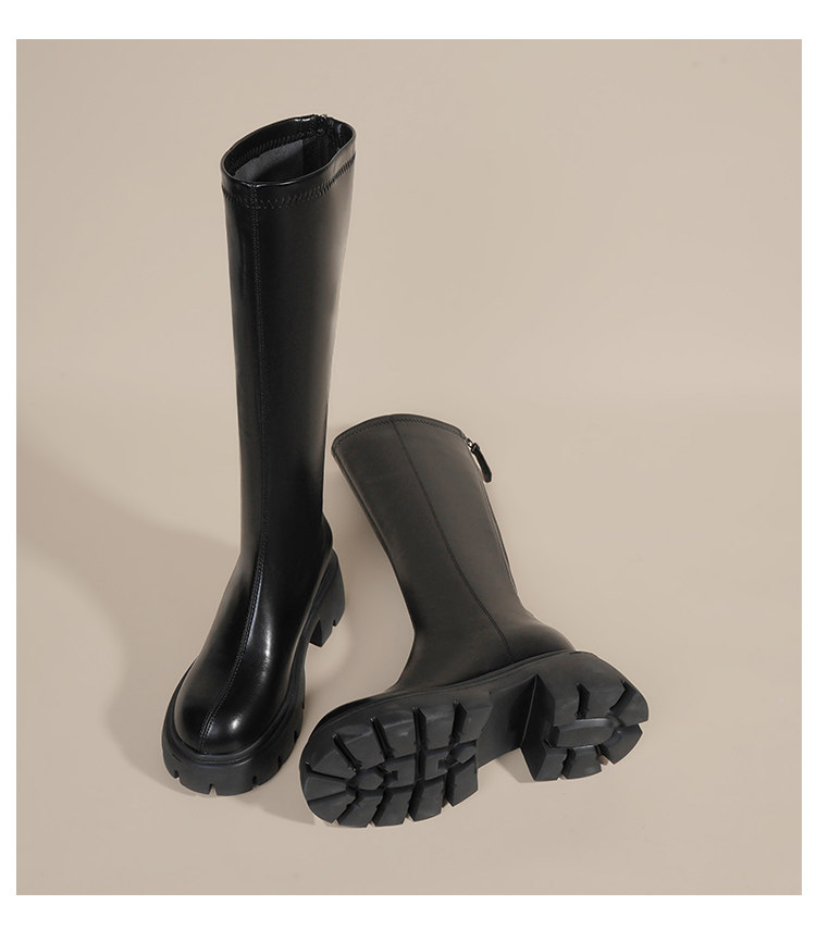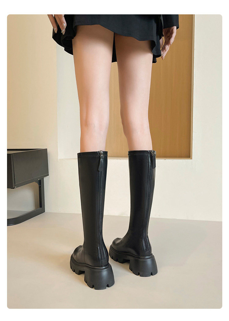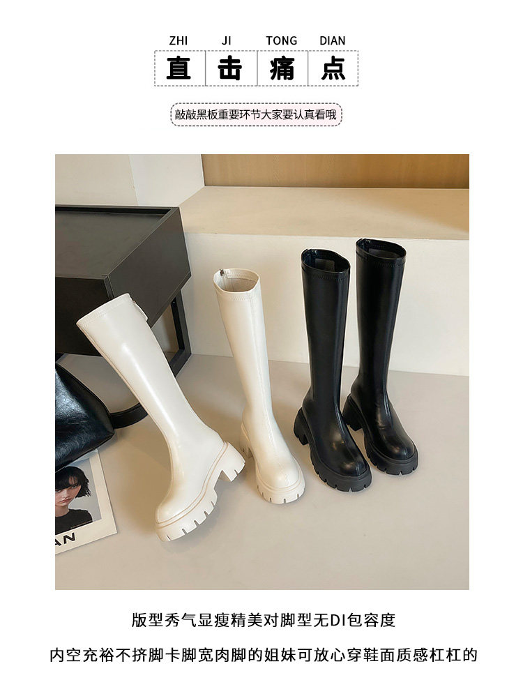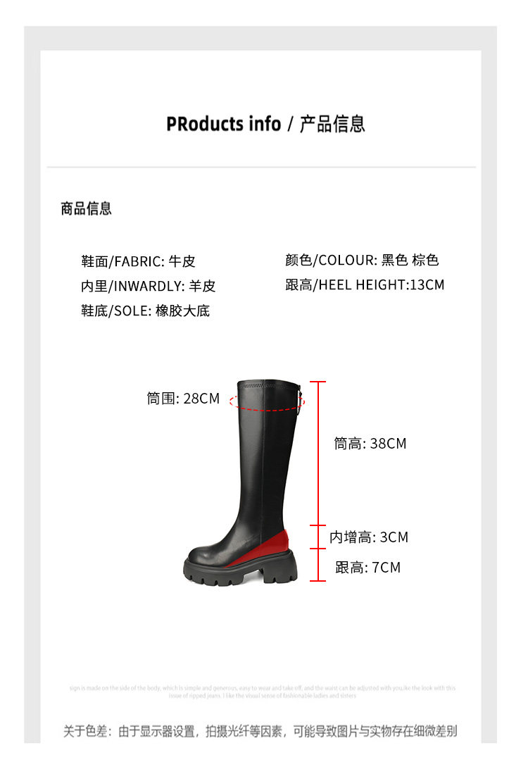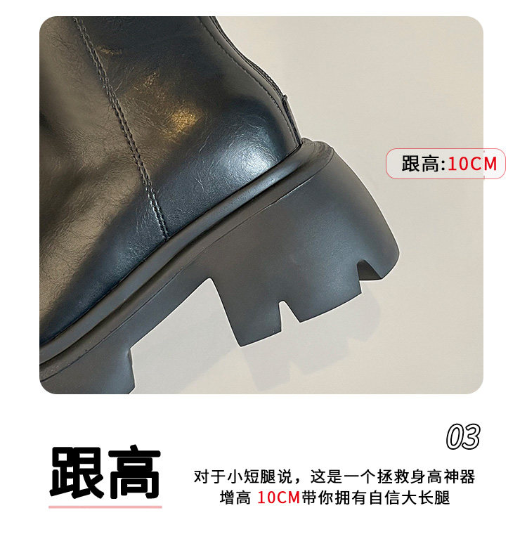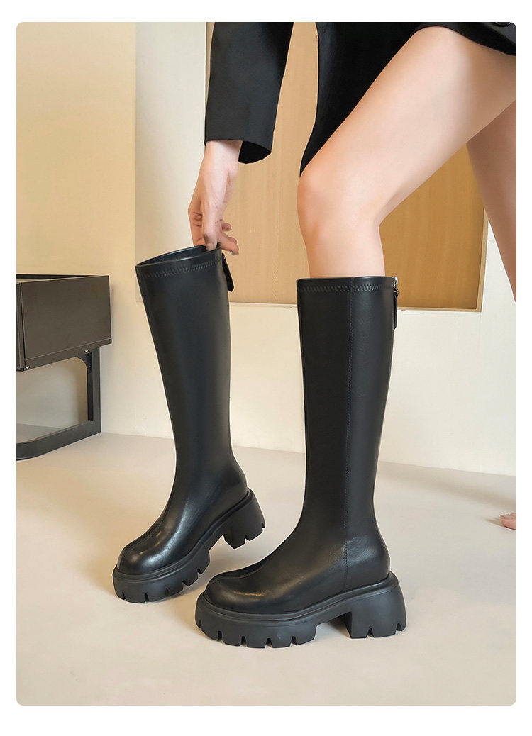 牛皮版內增高10cm厚底小個子長筒靴女不過膝後拉鍊粗跟騎士長靴子