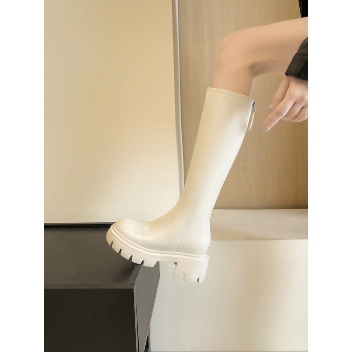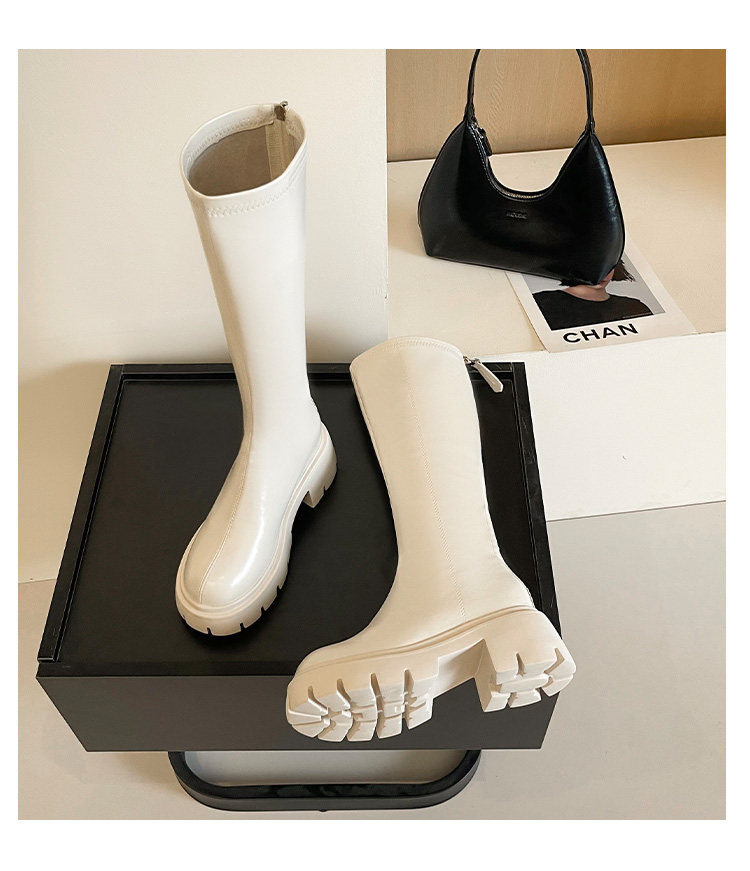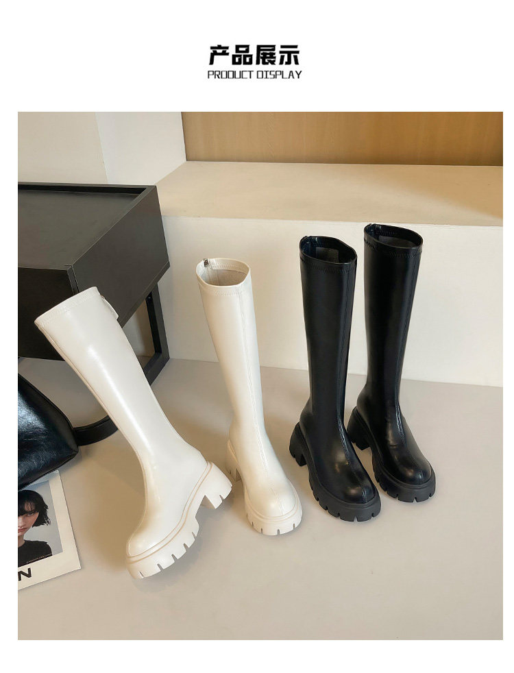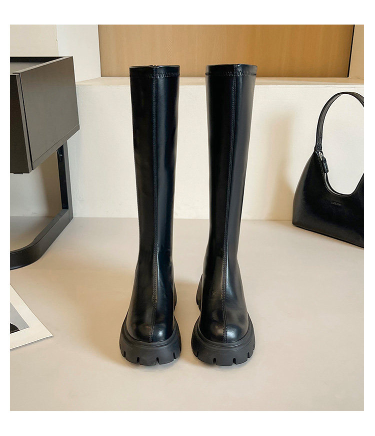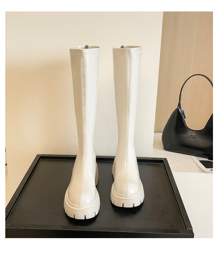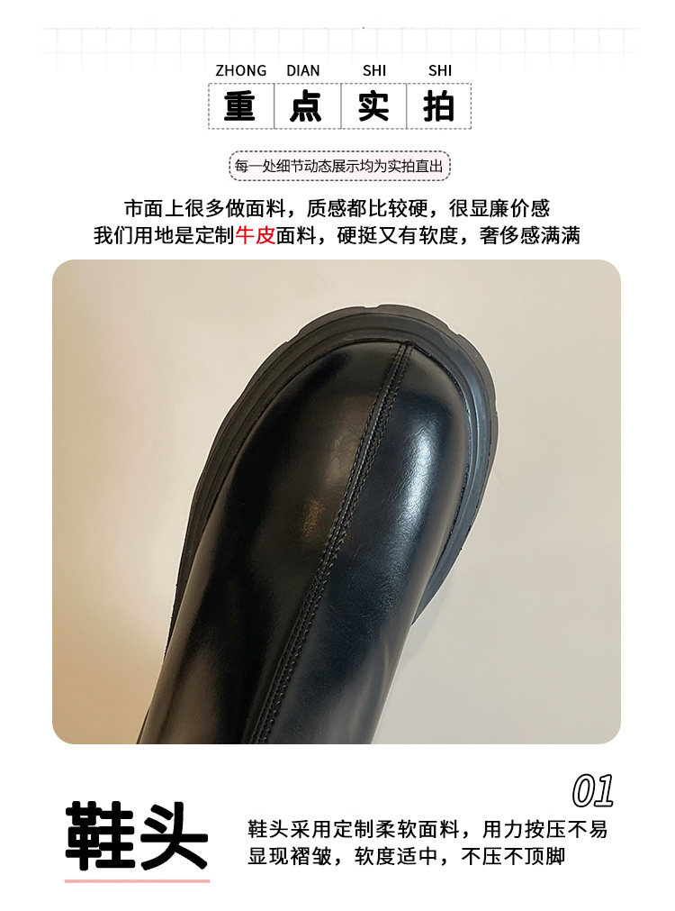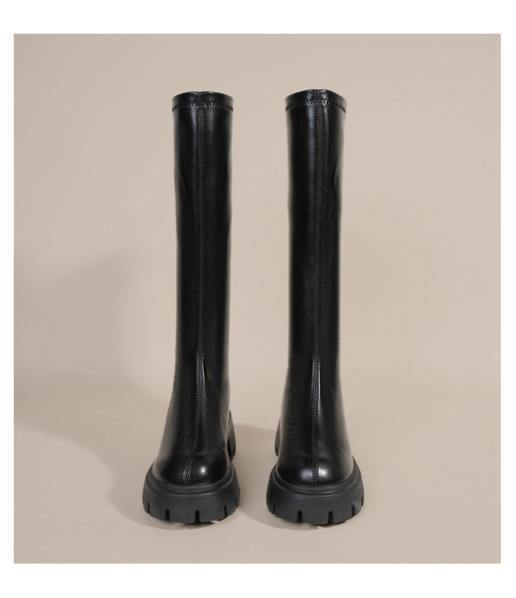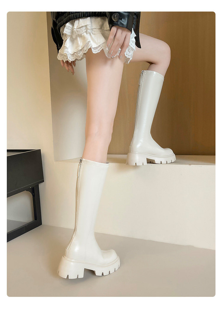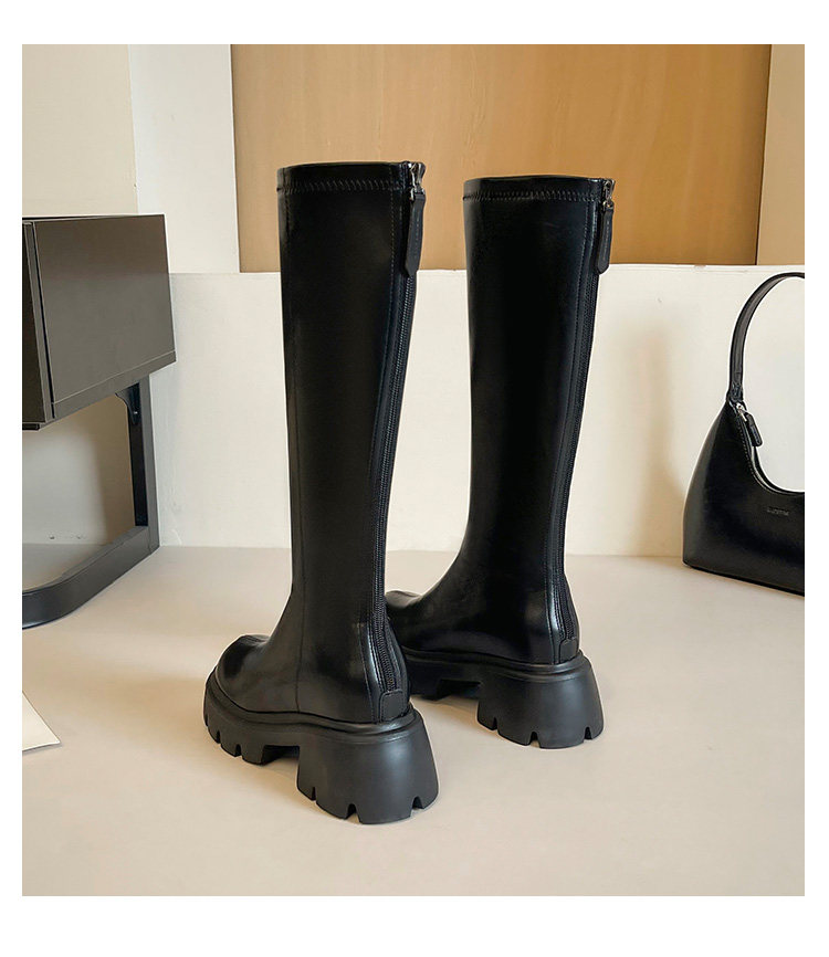 牛皮版內增高10cm厚底小個子長筒靴女不過膝後拉鍊粗跟騎士長靴子
