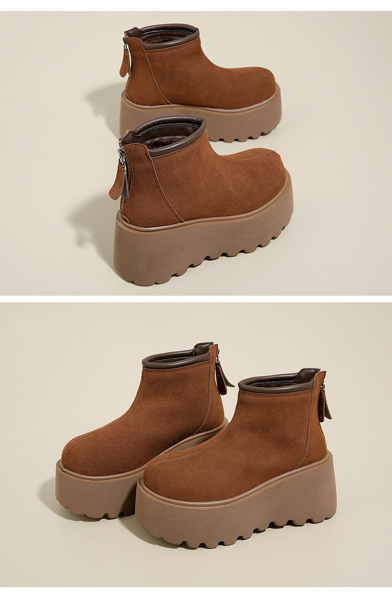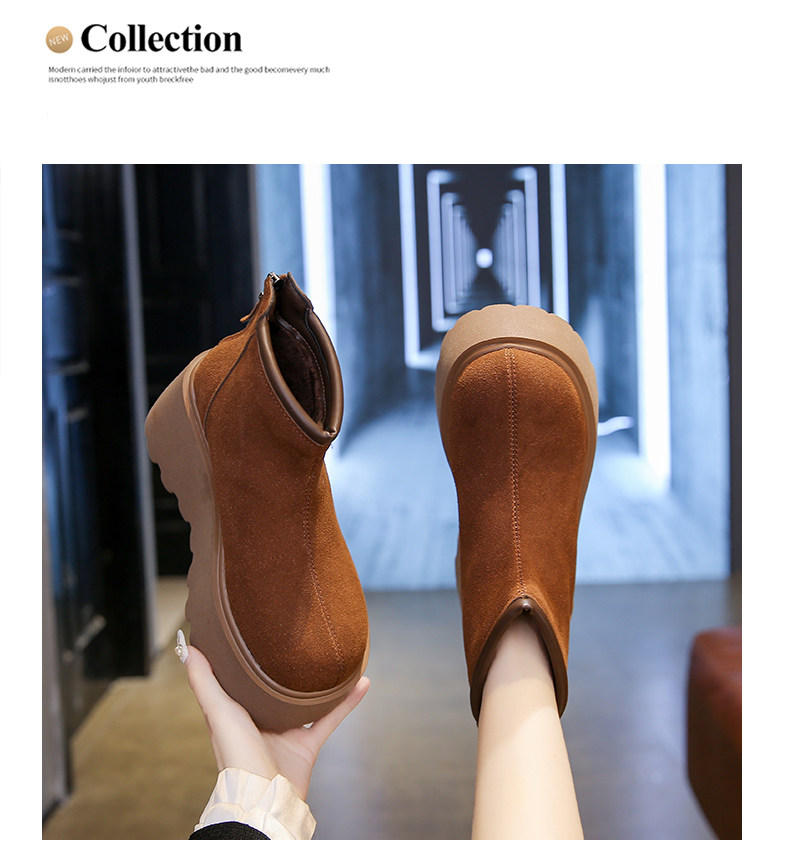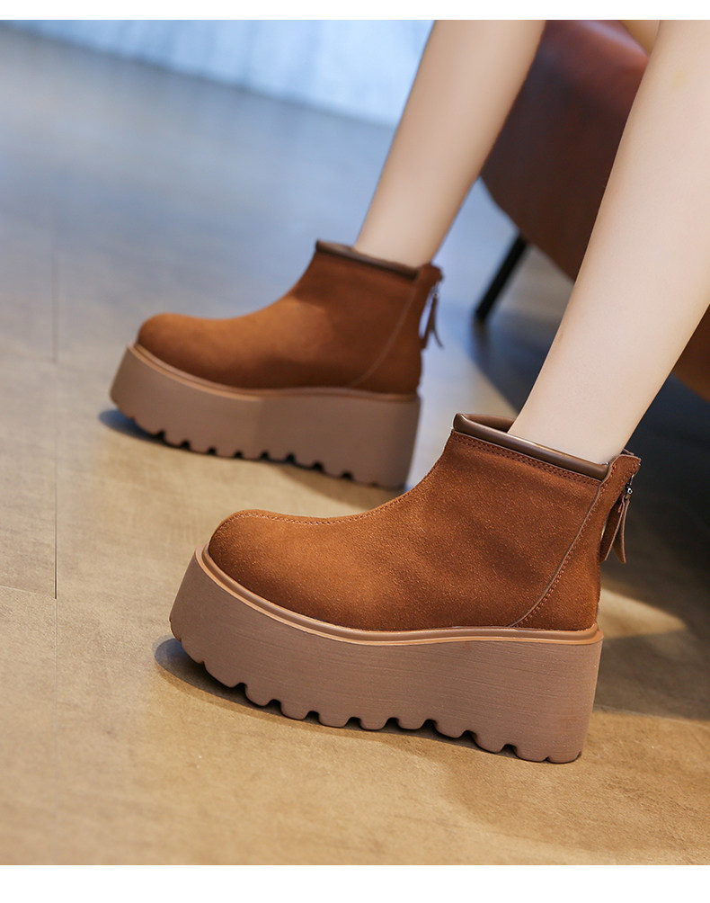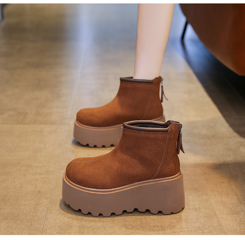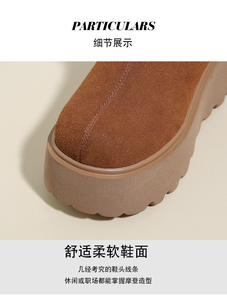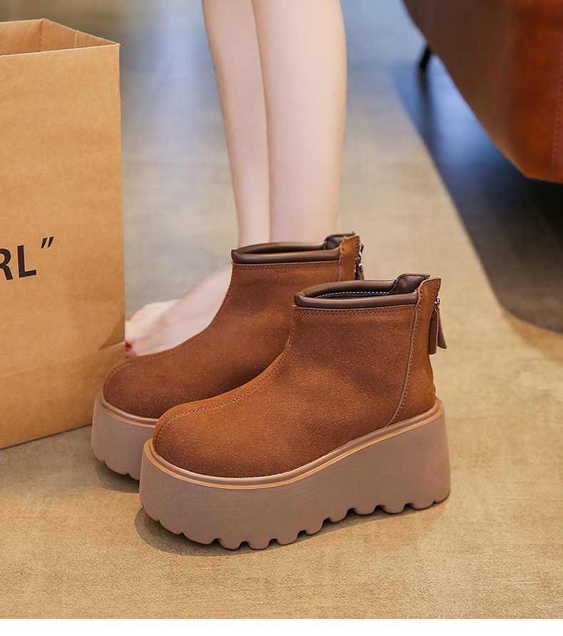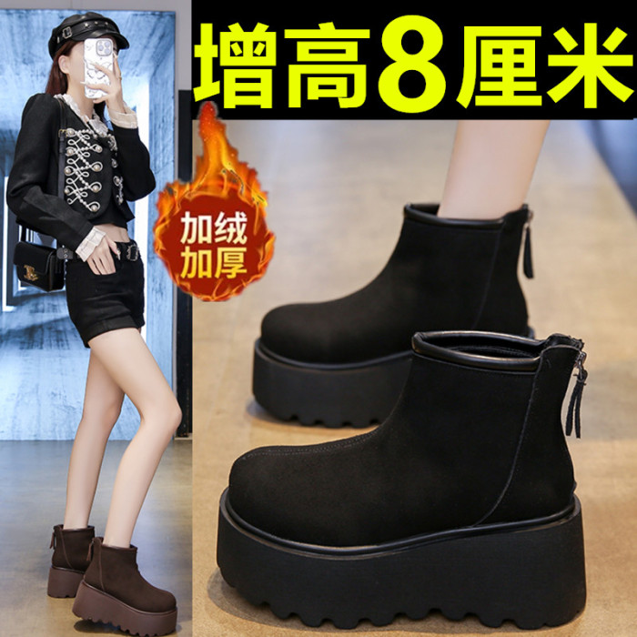 真皮厚底加絨保暖增高煙囪靴女冬季新款小個子輕便小碼34二棉短靴
