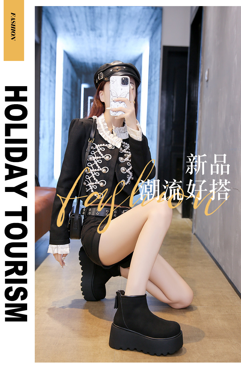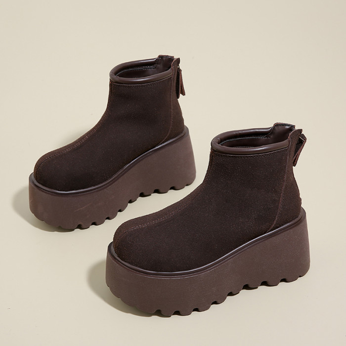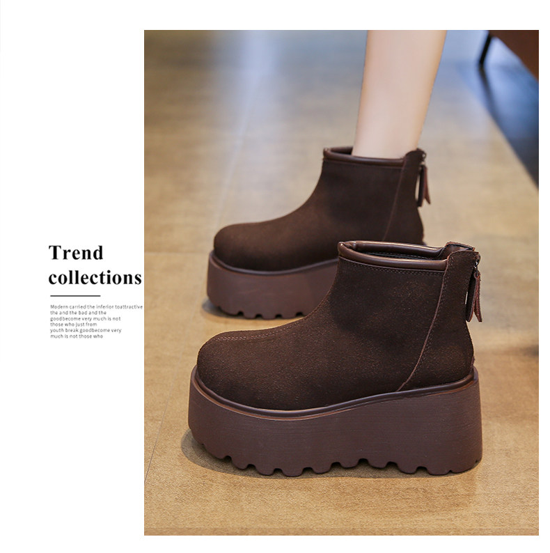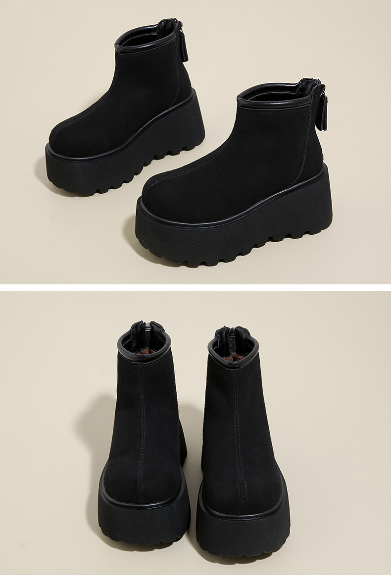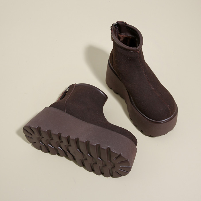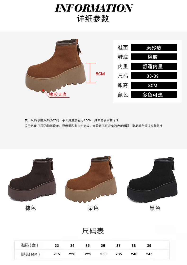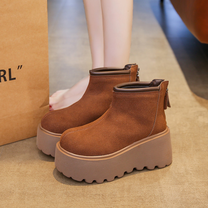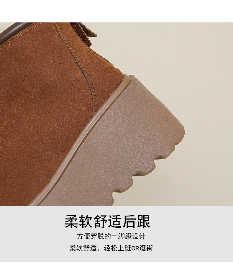真皮厚底加絨保暖增高煙囪靴女冬季新款小個子輕便小碼34二棉短靴