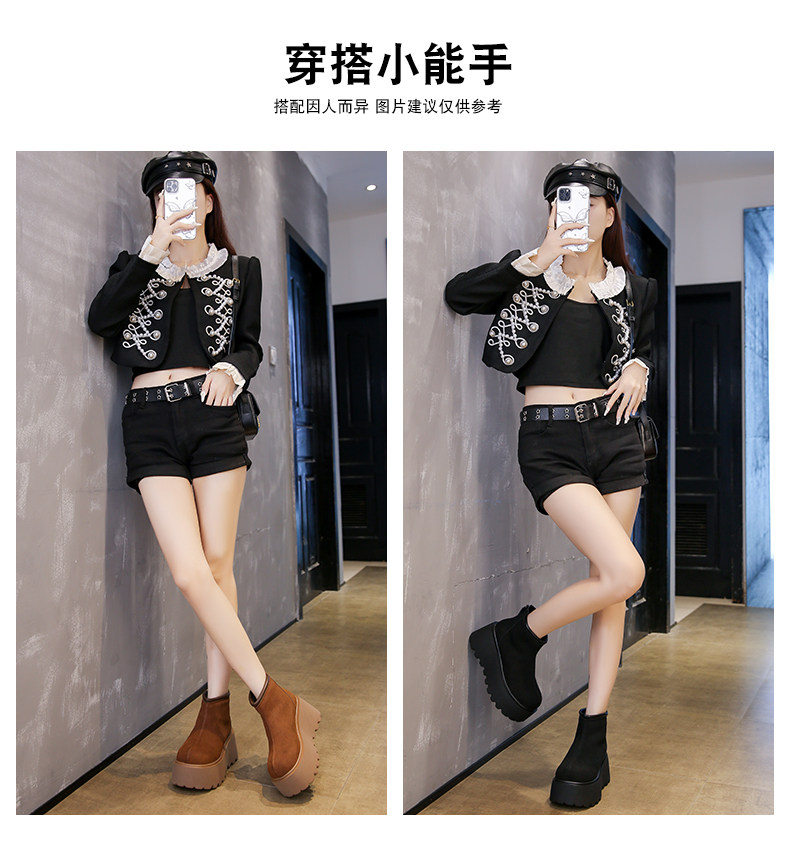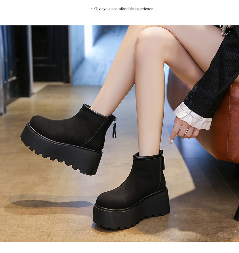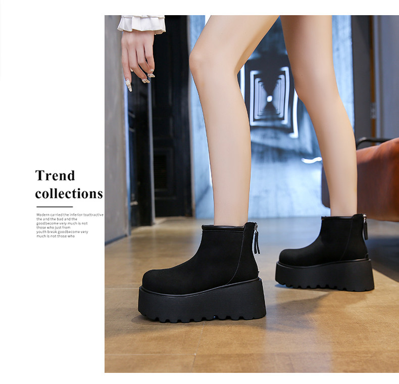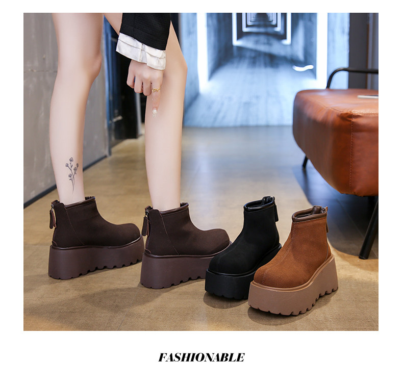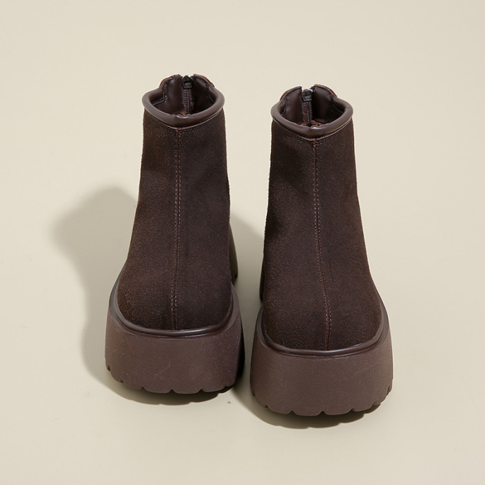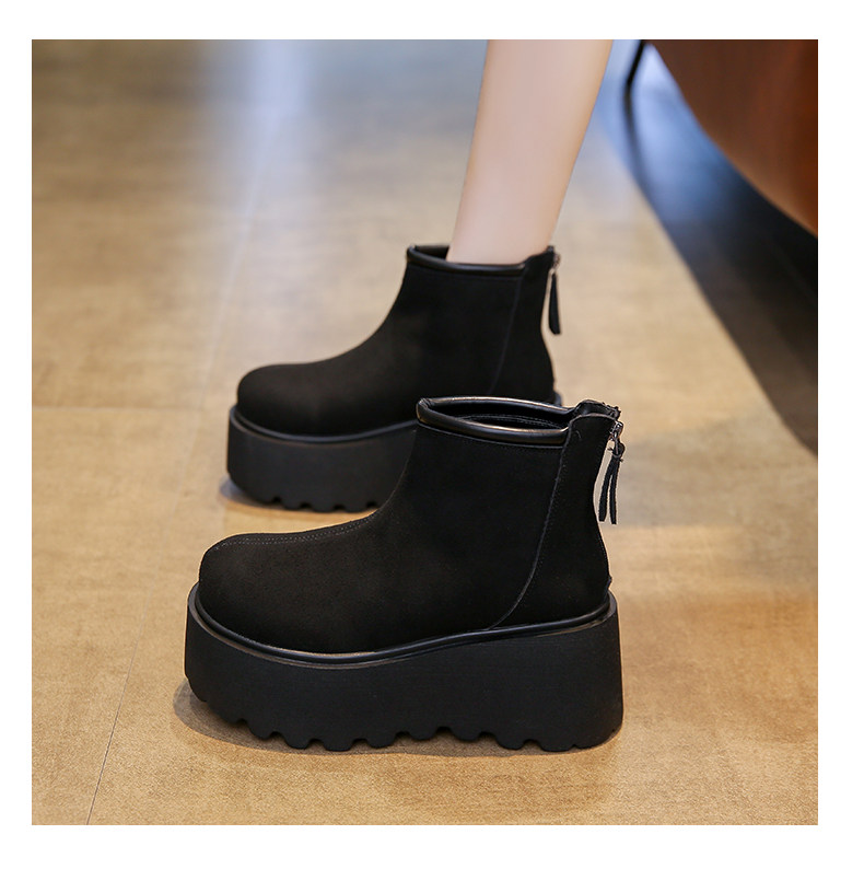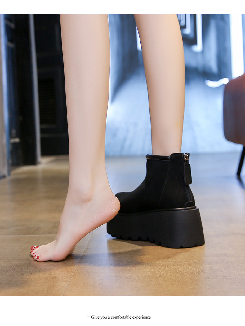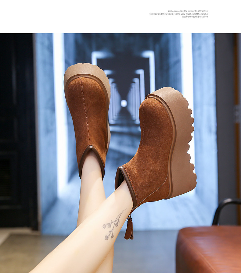 真皮厚底加絨保暖增高煙囪靴女冬季新款小個子輕便小碼34二棉短靴