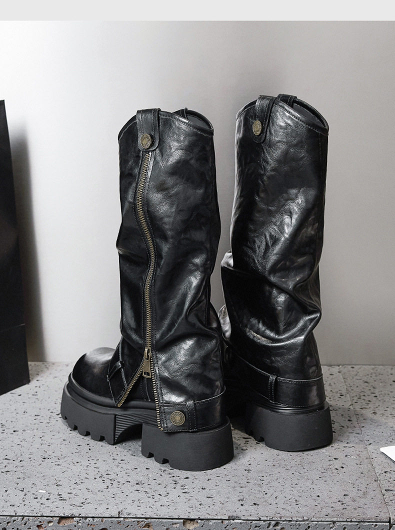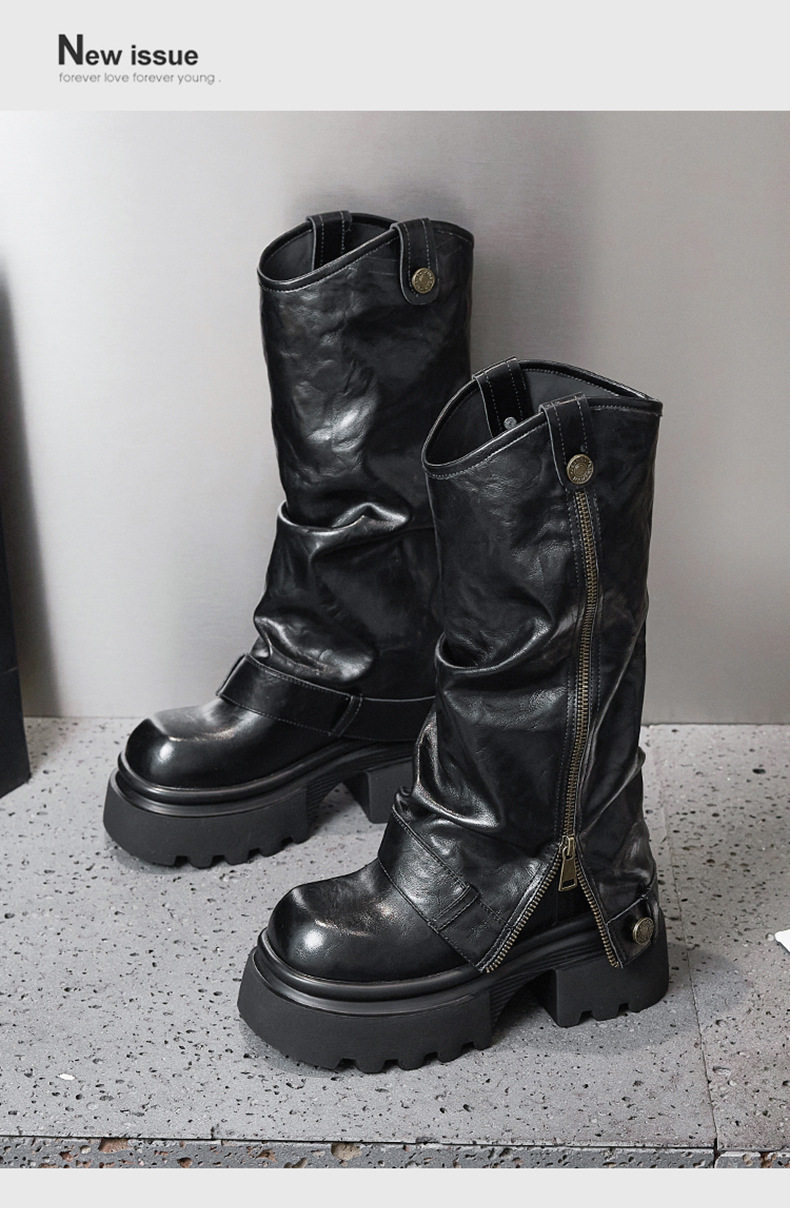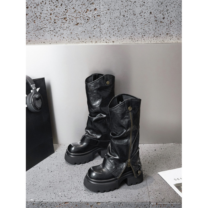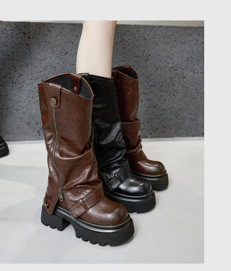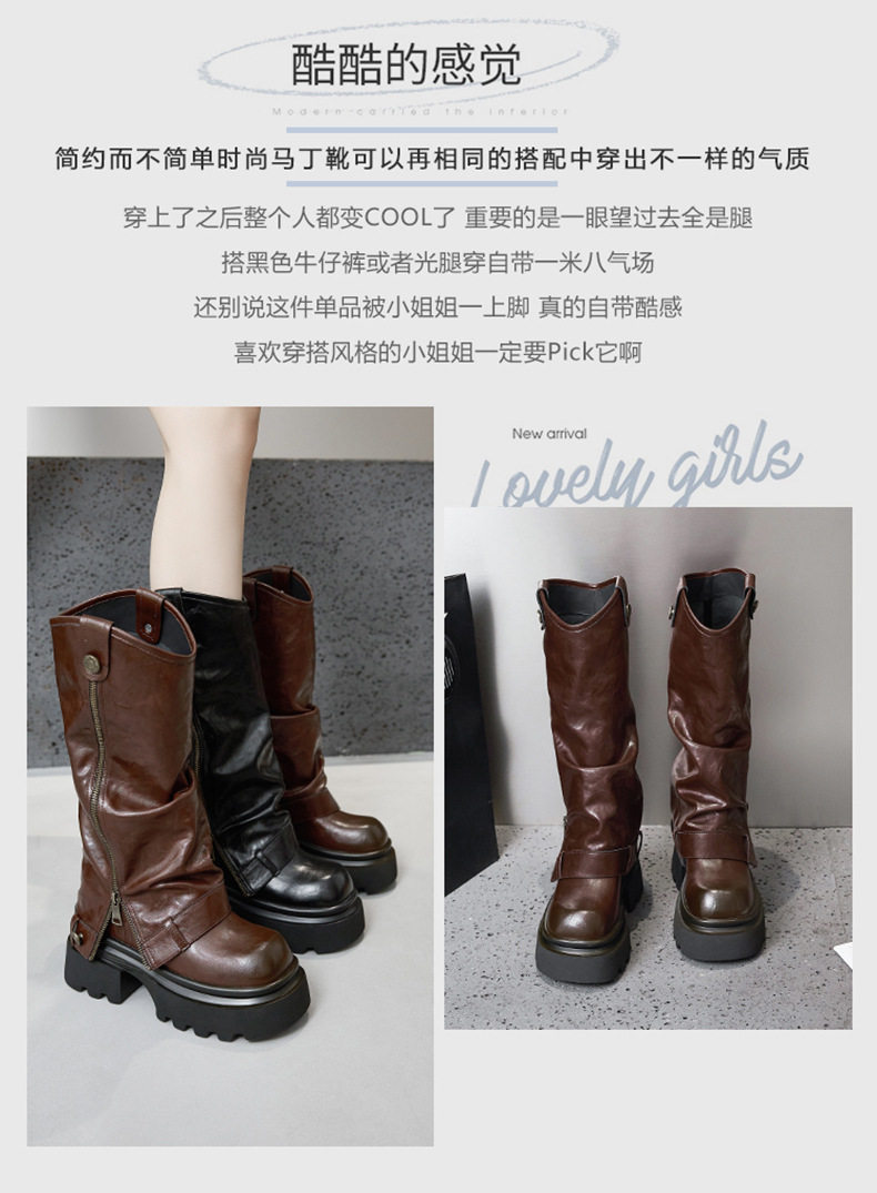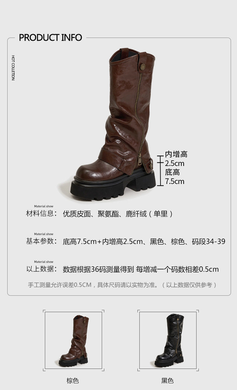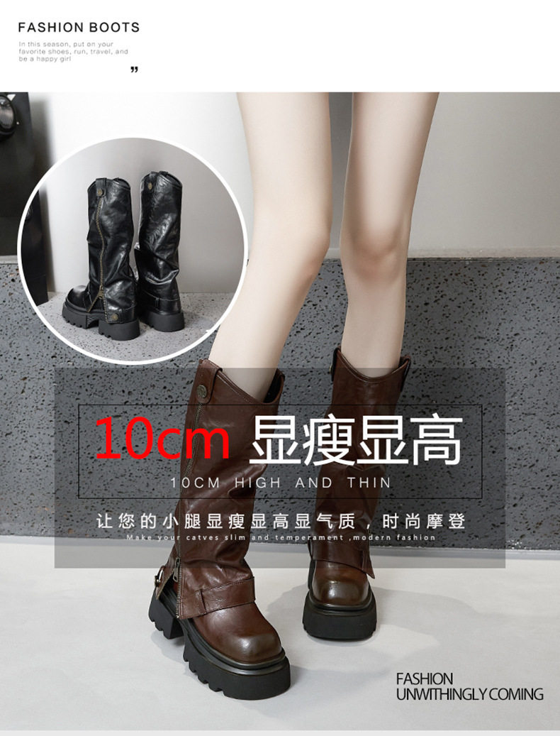 厚底高低兩穿騎士靴女2025秋冬季內增高粗跟套筒堆堆靴長筒褲琯靴