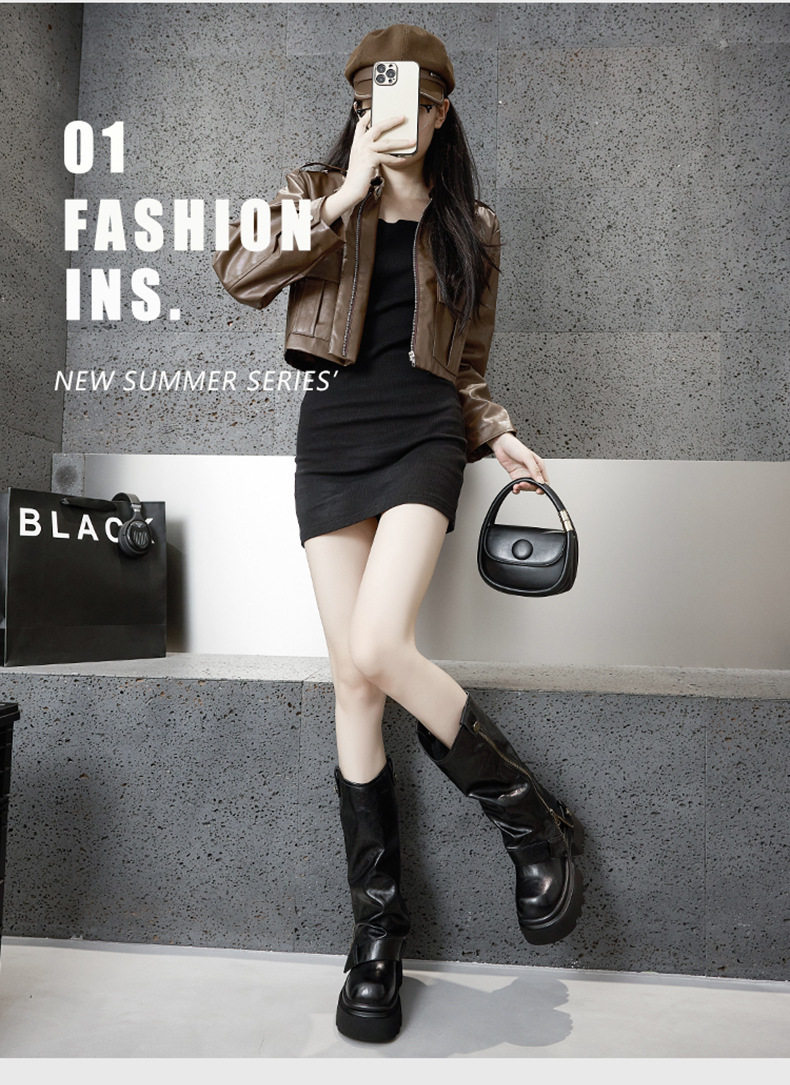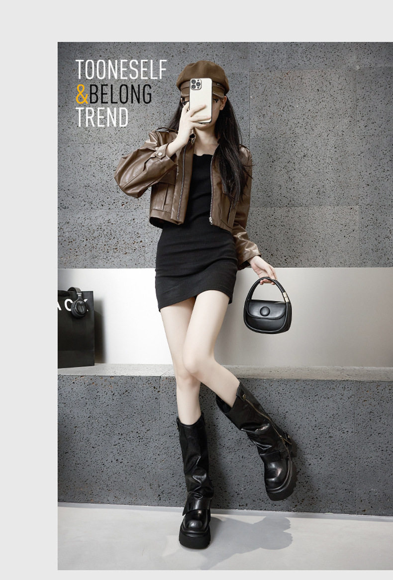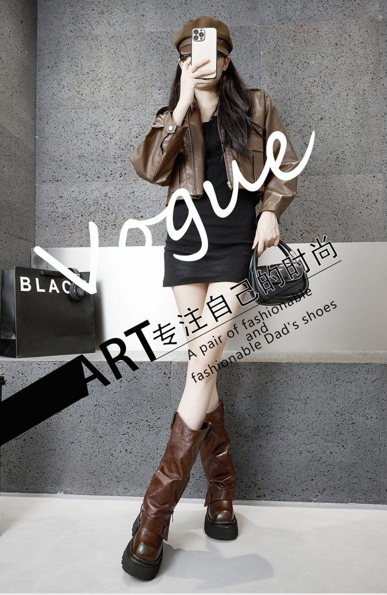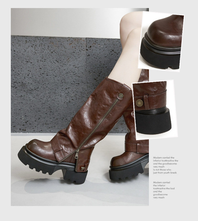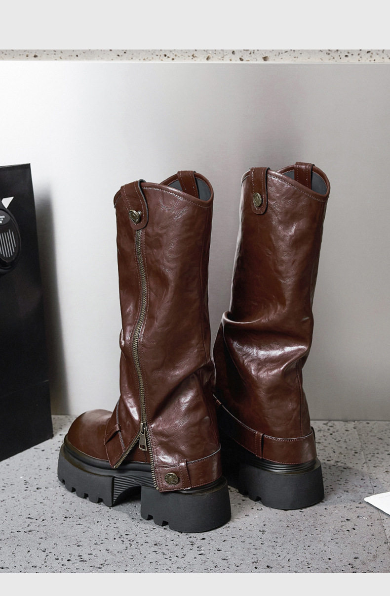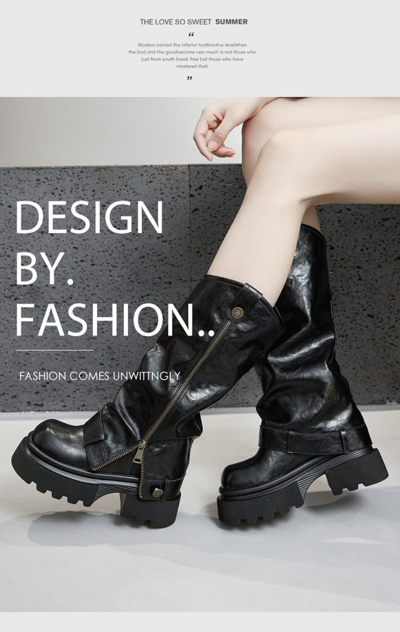 厚底高低兩穿騎士靴女2025秋冬季內增高粗跟套筒堆堆靴長筒褲琯靴