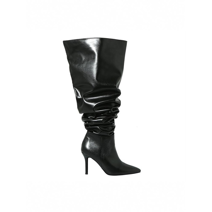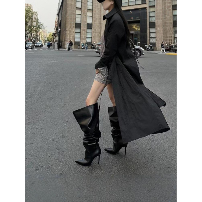 長靴女大筒圍黑色高跟歐美風高筒靴子2026年冬尖頭細跟騎士堆堆靴