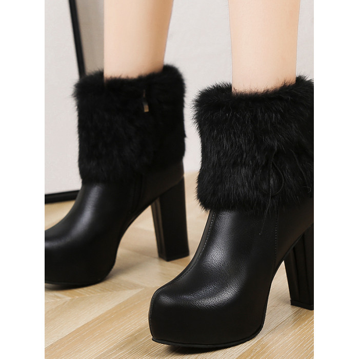 32-43碼大碼女靴41韓版側拉鍊時裝靴女42秋冬加絨防水台粗跟短靴