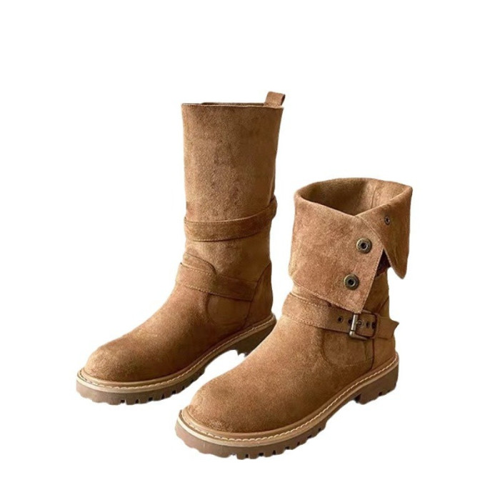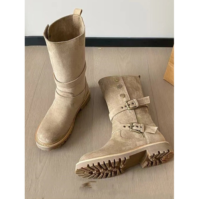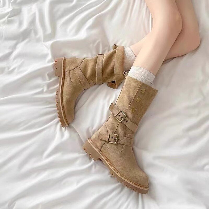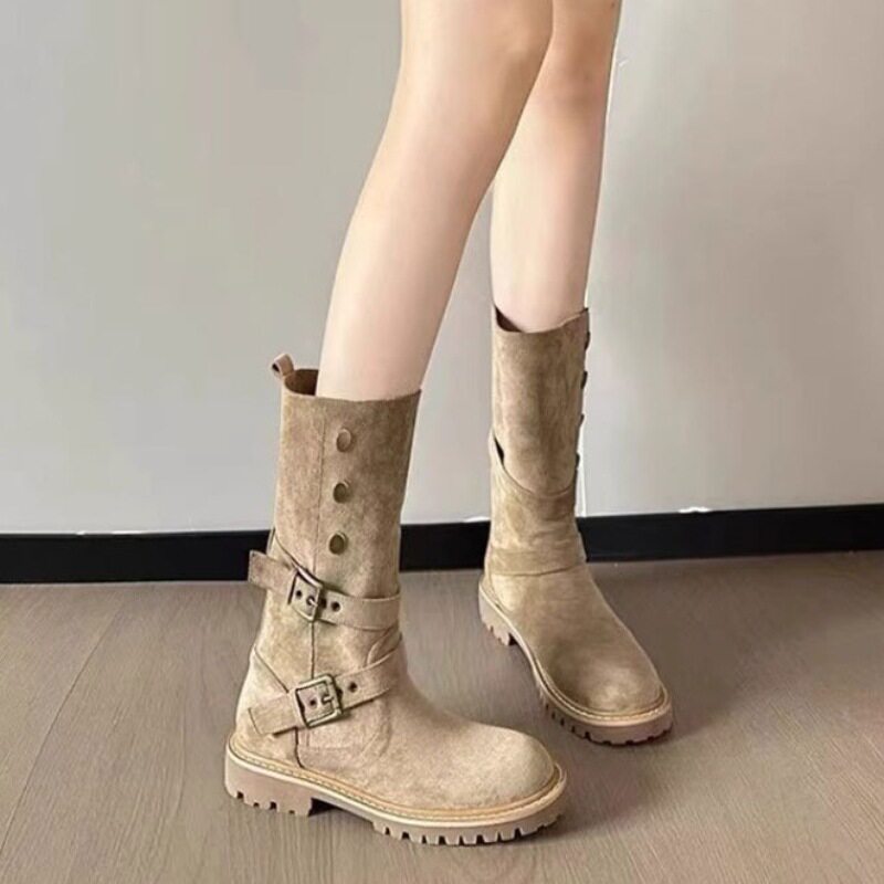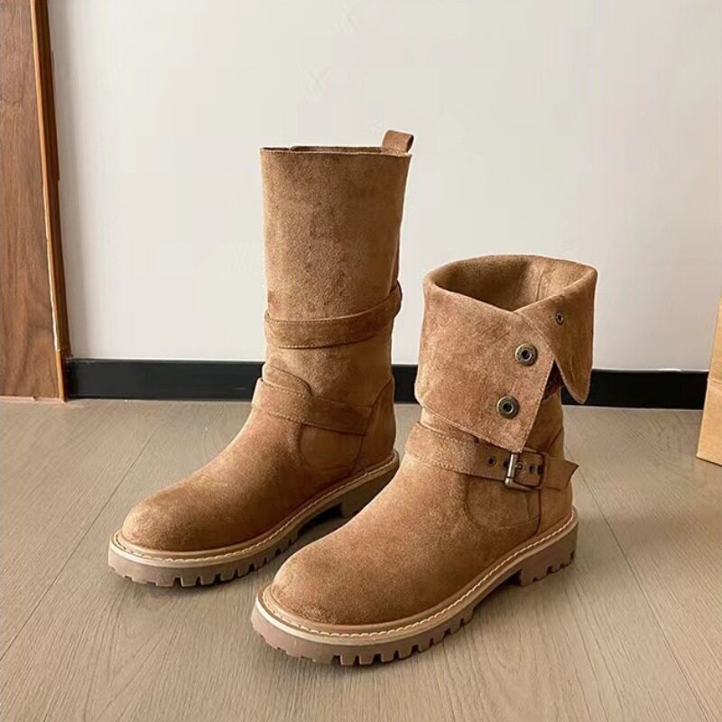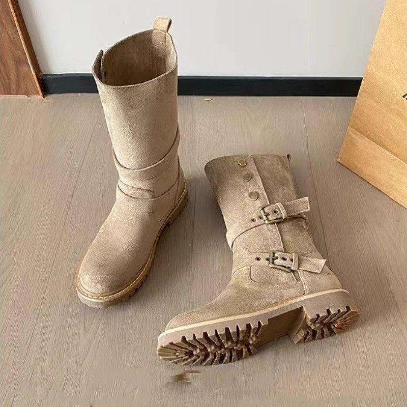 大碼41-43復古馬丁靴女2025新款不過膝西部牛仔靴網紅瘦瘦短靴子