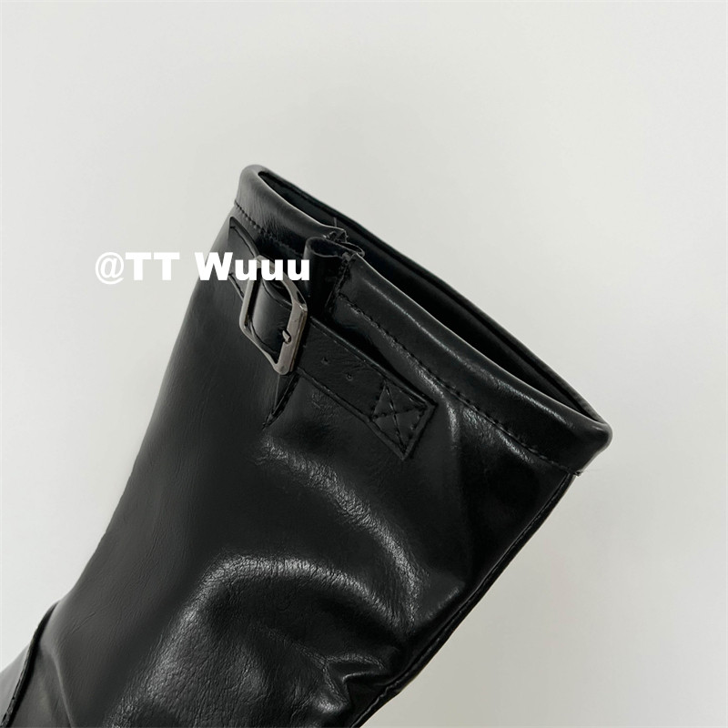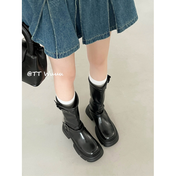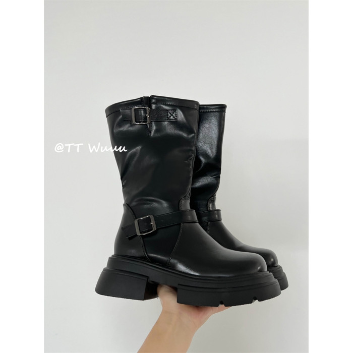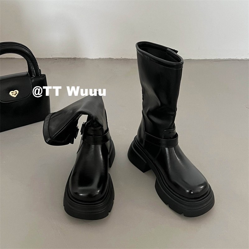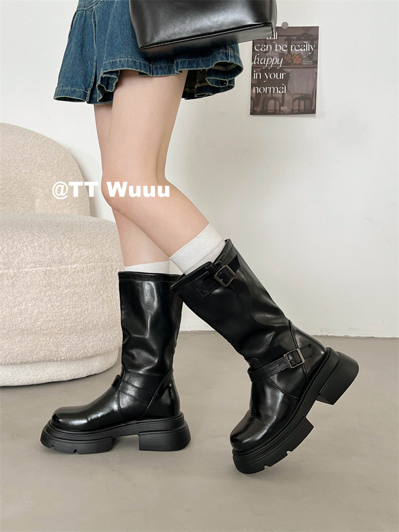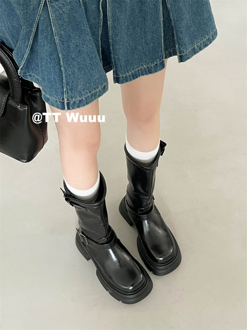 TTWuuu美拉德風厚底中高筒騎士靴復古顯瘦增高西部靴短靴小腿靴女