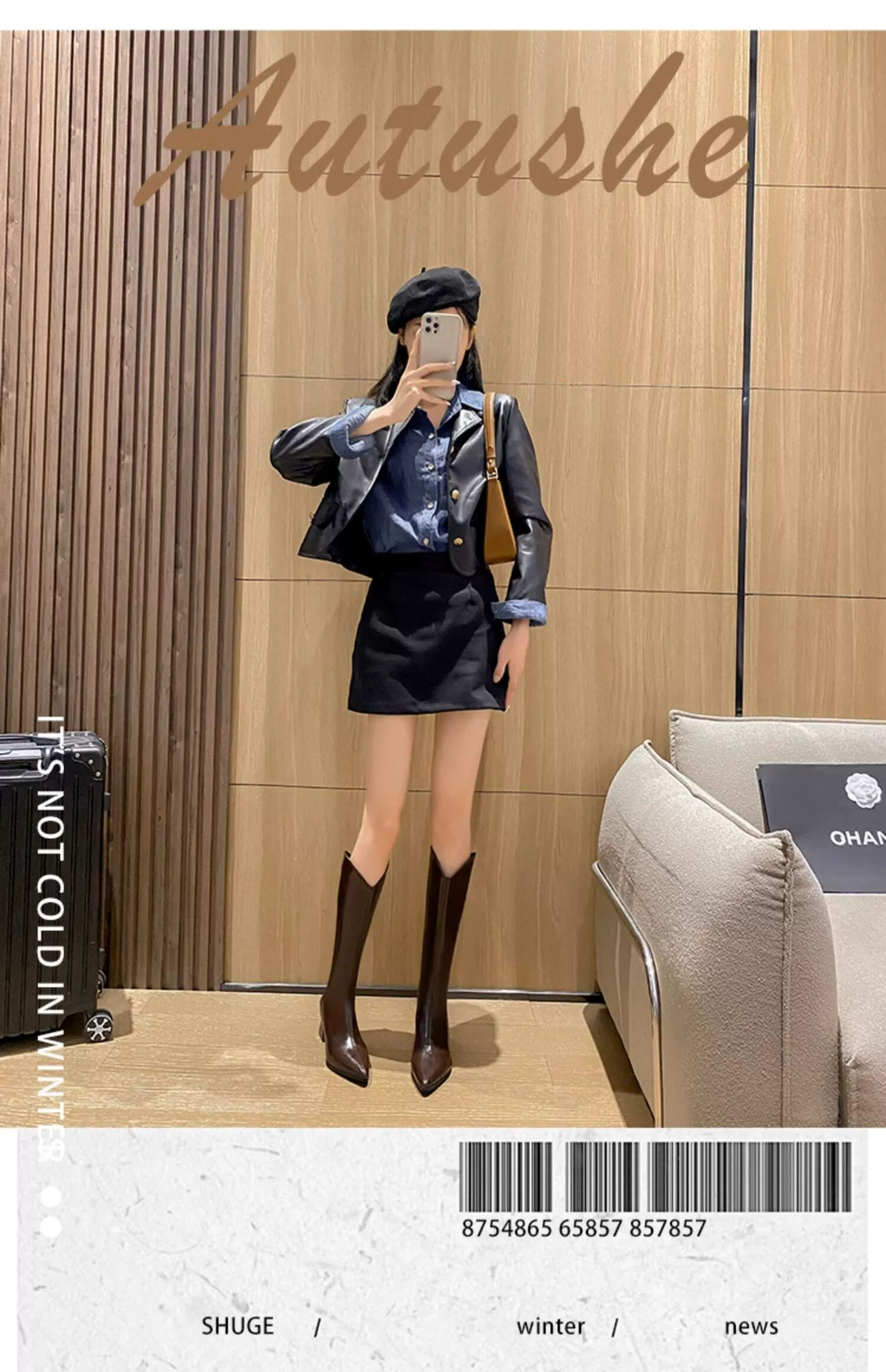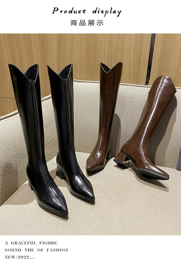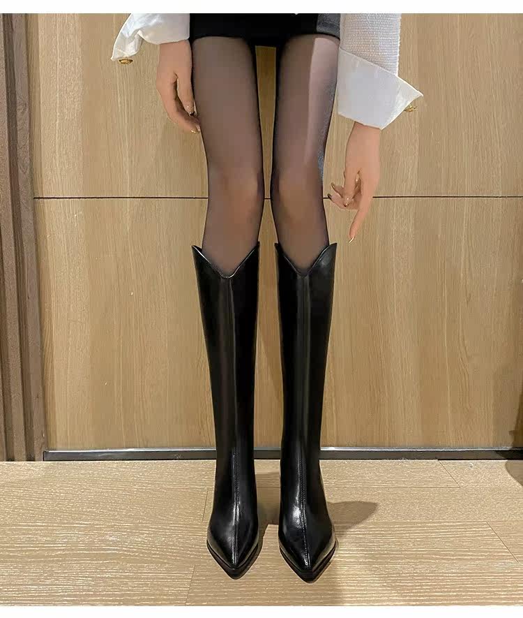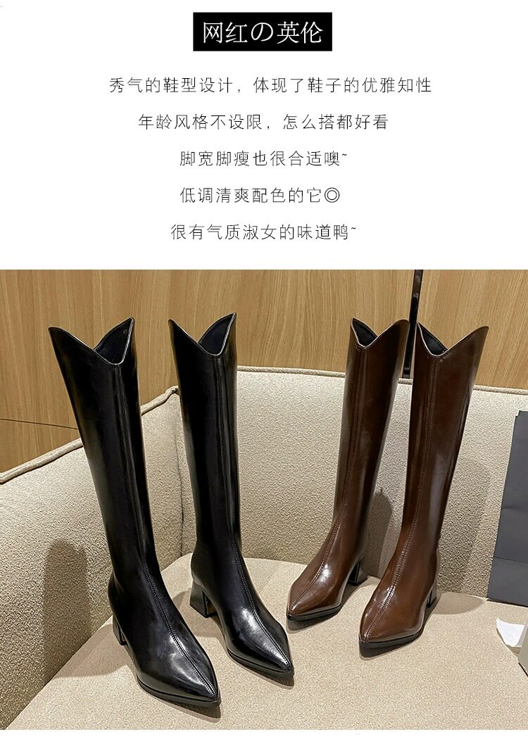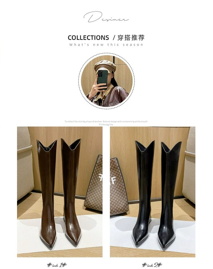 真皮v口顯瘦歐貨爆款騎士靴子女2025新款秋冬高跟長靴高筒長筒靴