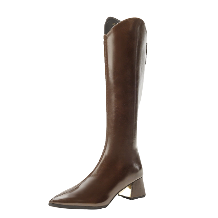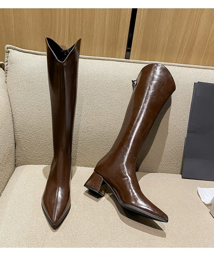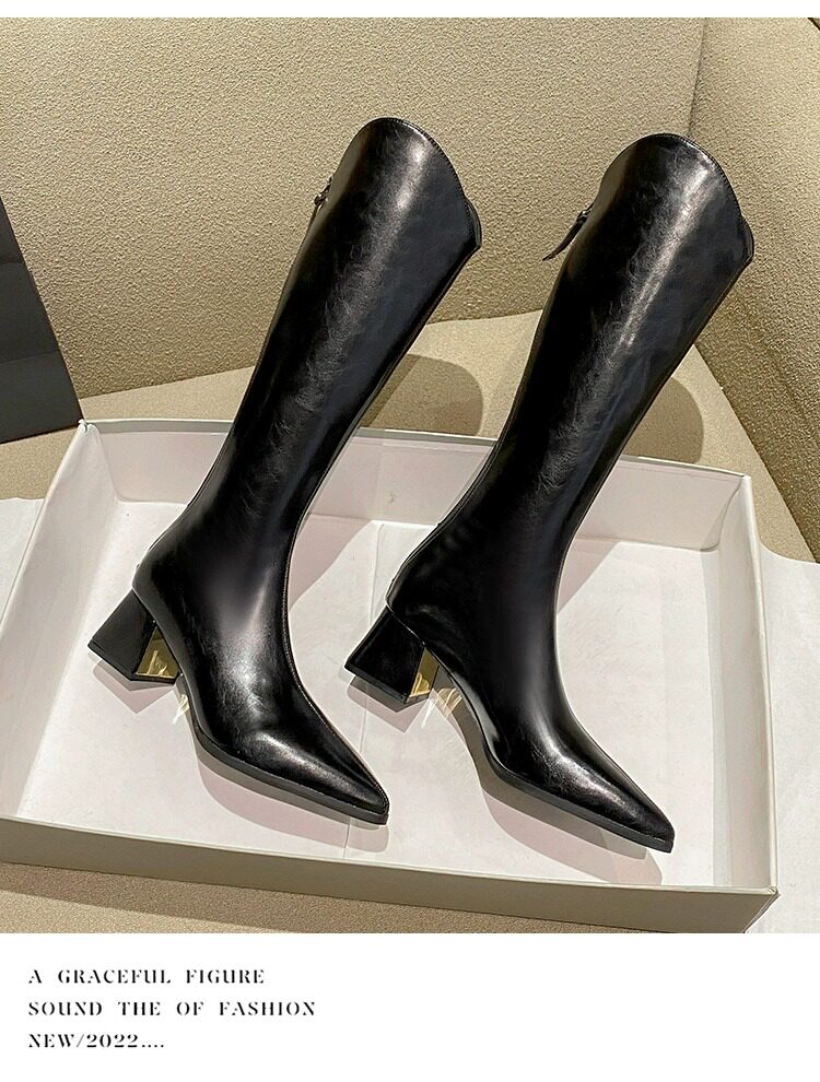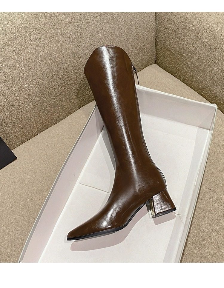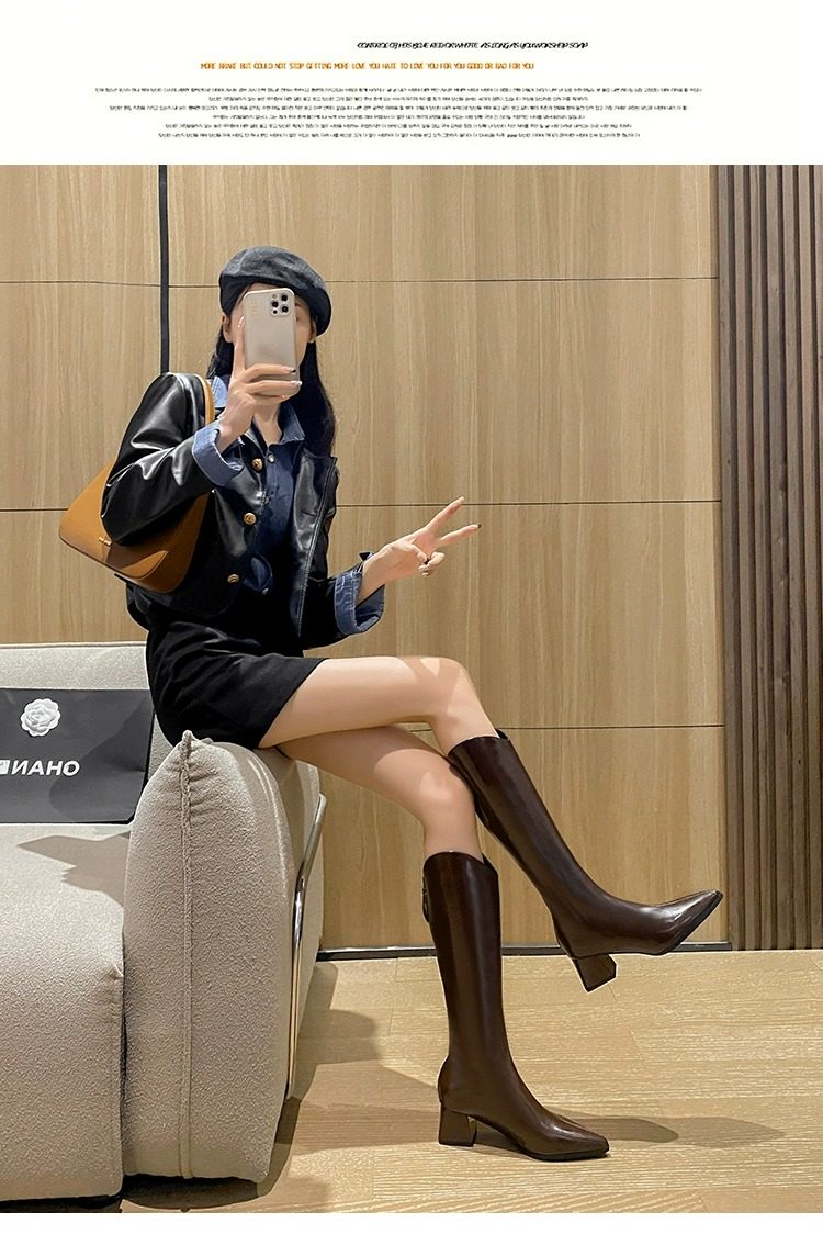 真皮v口顯瘦歐貨爆款騎士靴子女2025新款秋冬高跟長靴高筒長筒靴