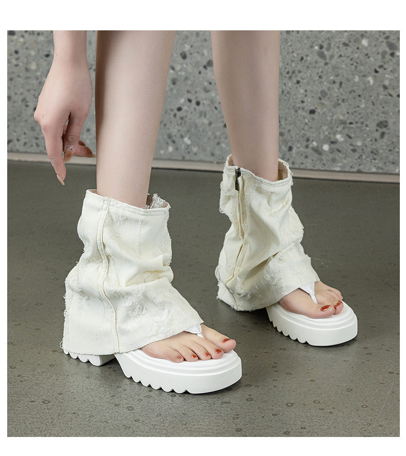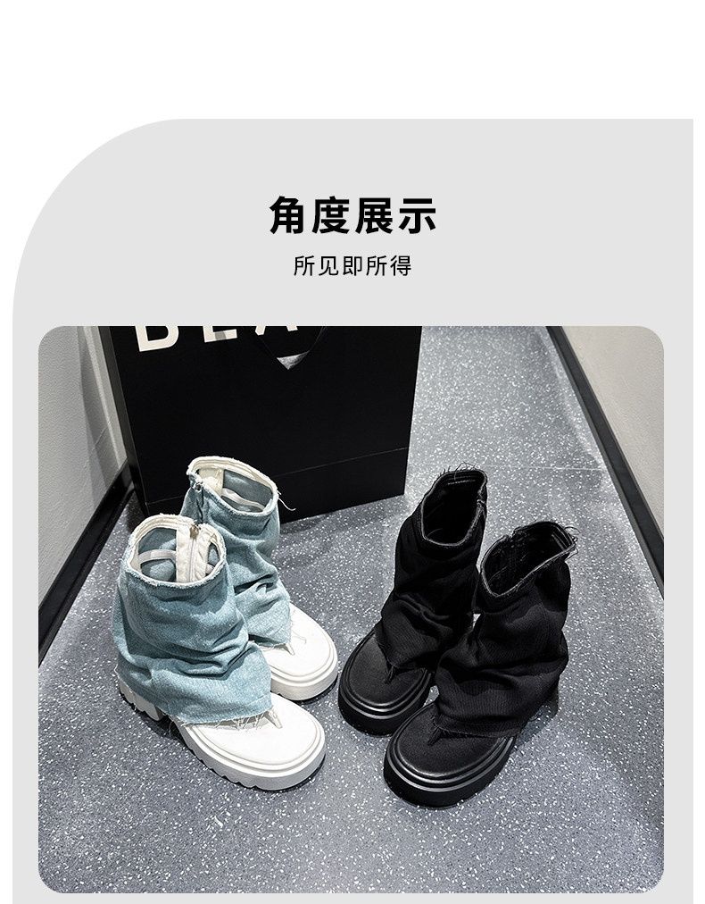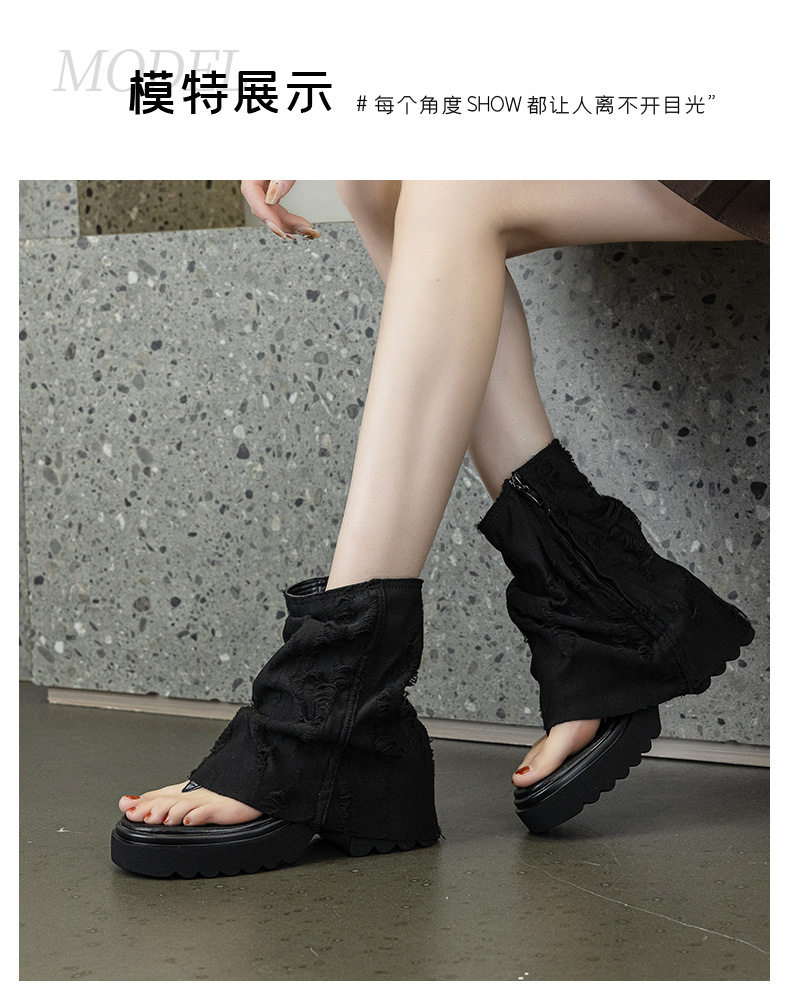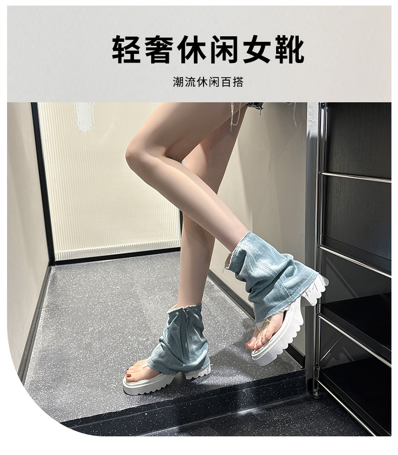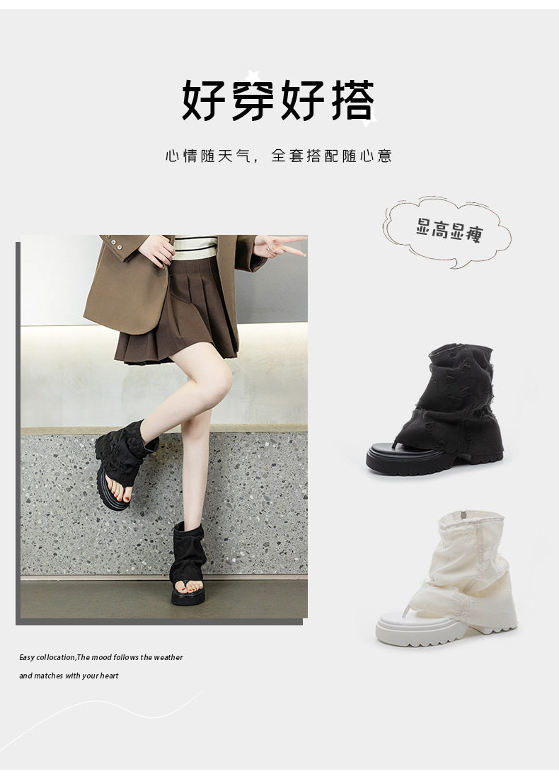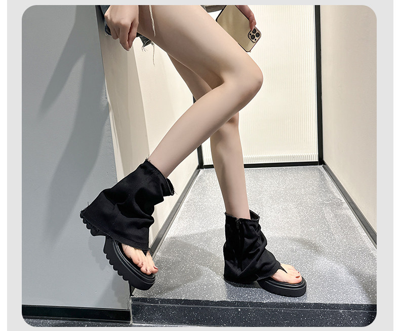 夾趾涼靴女短筒增高厚底時尚涼鞋配裙子網紅牛仔藍褲琯靴菸筒靴潮