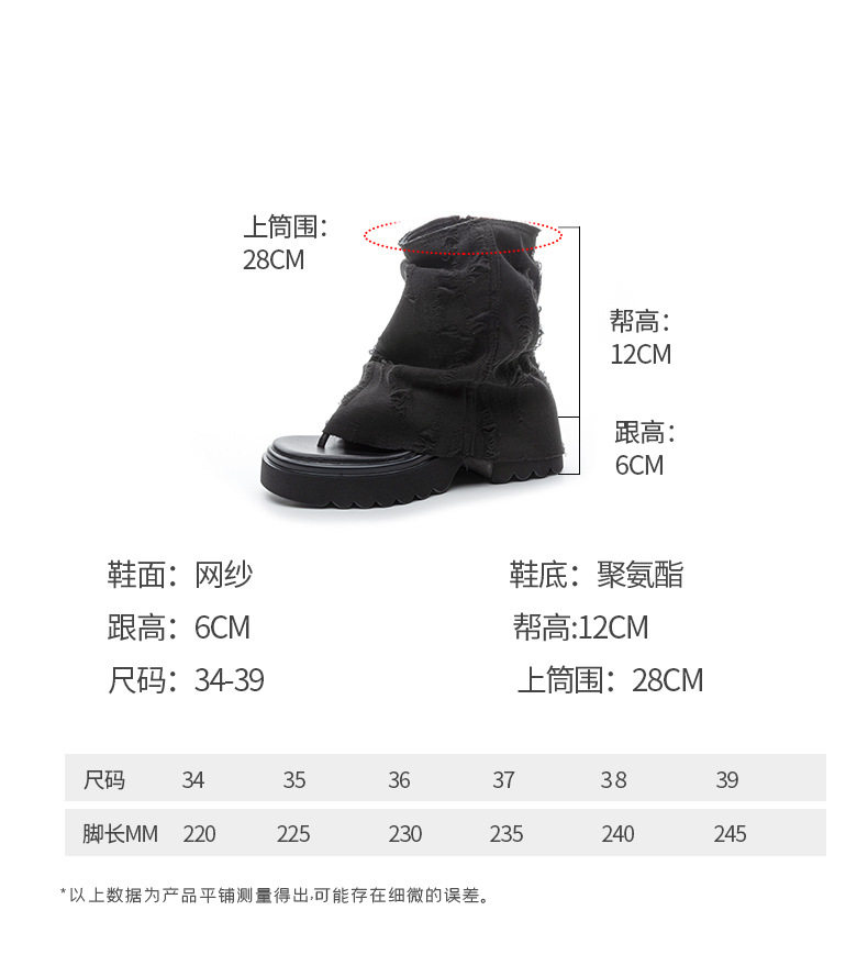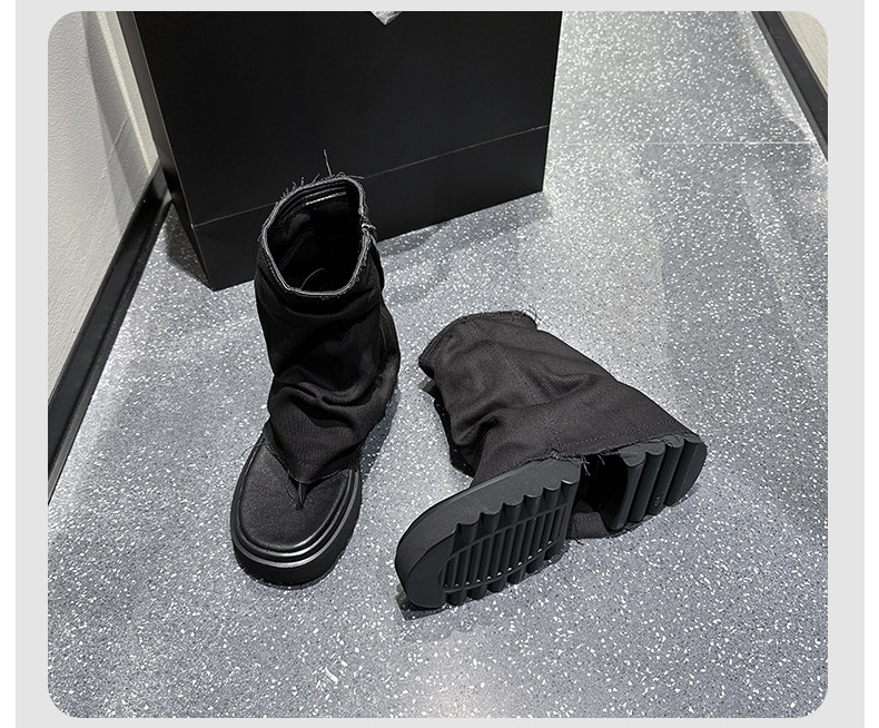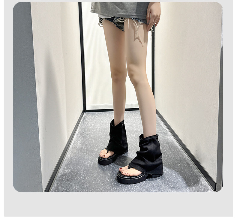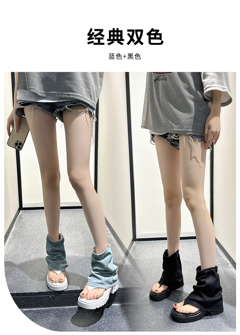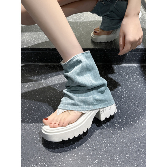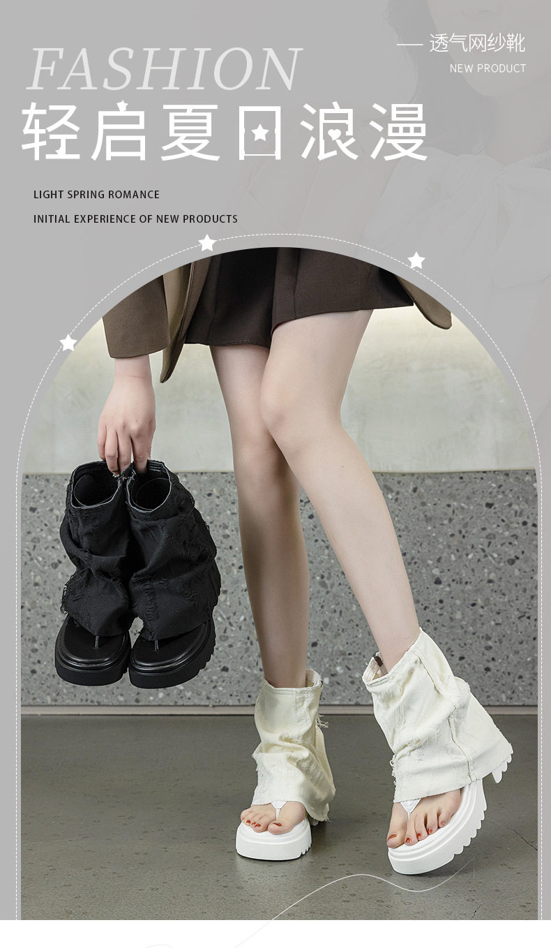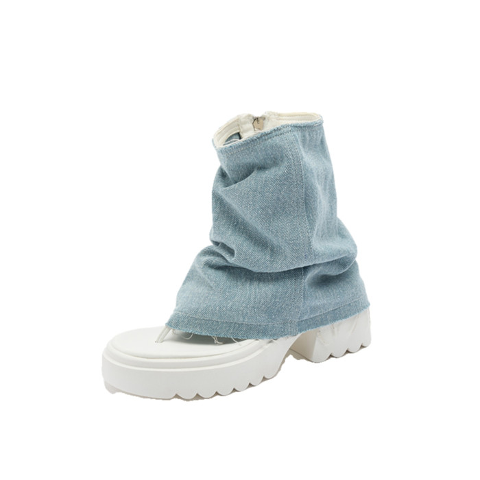 夾趾涼靴女短筒增高厚底時尚涼鞋配裙子網紅牛仔藍褲琯靴菸筒靴潮