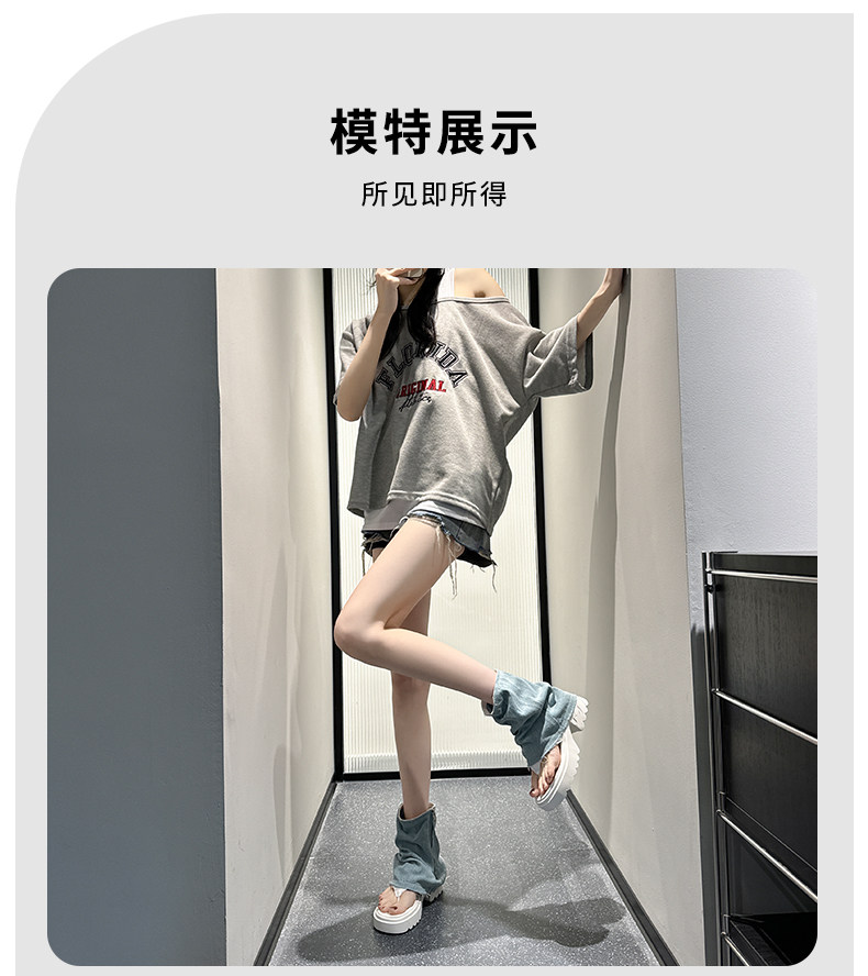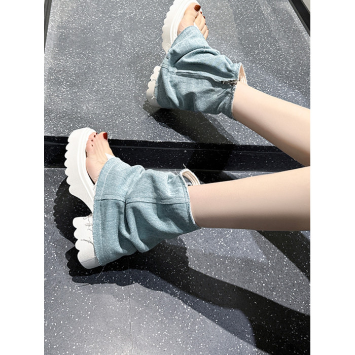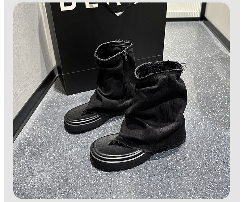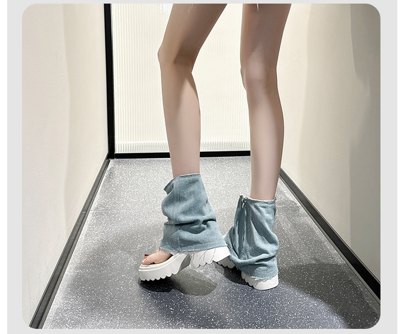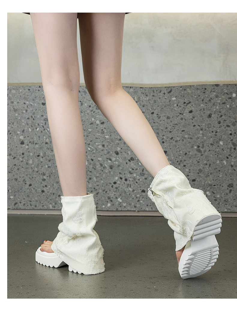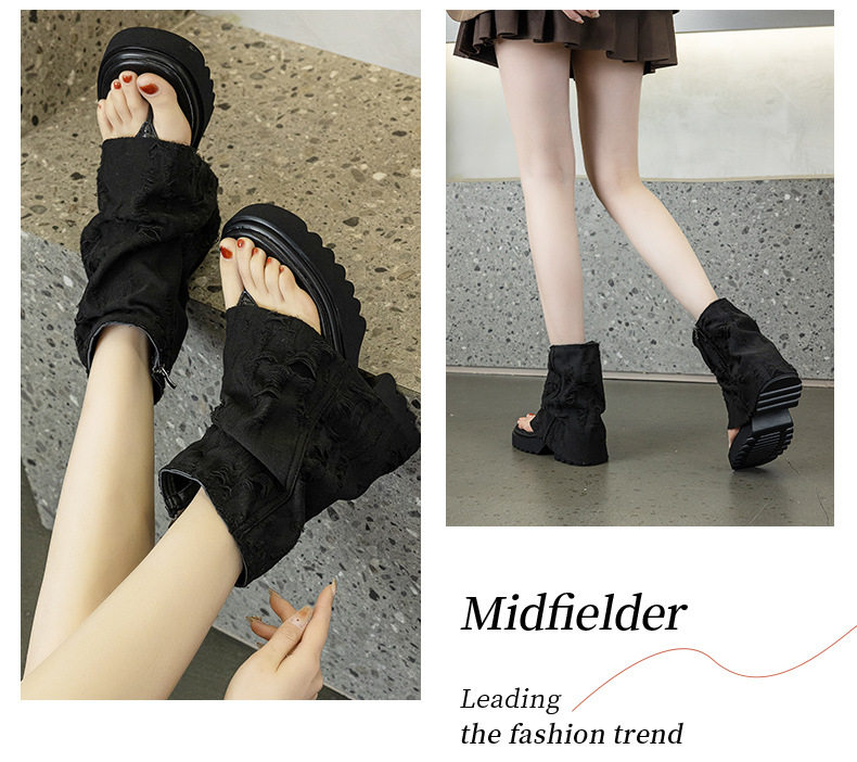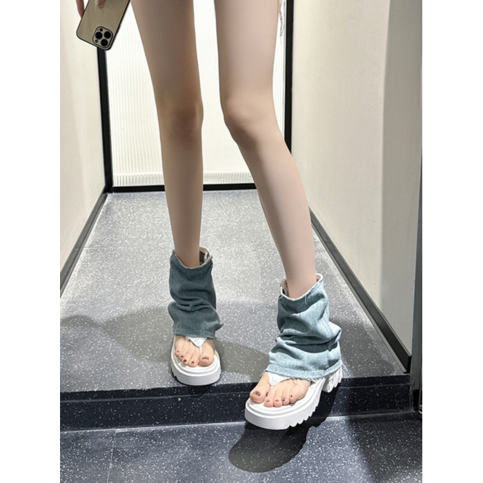 夾趾涼靴女短筒增高厚底時尚涼鞋配裙子網紅牛仔藍褲琯靴菸筒靴潮