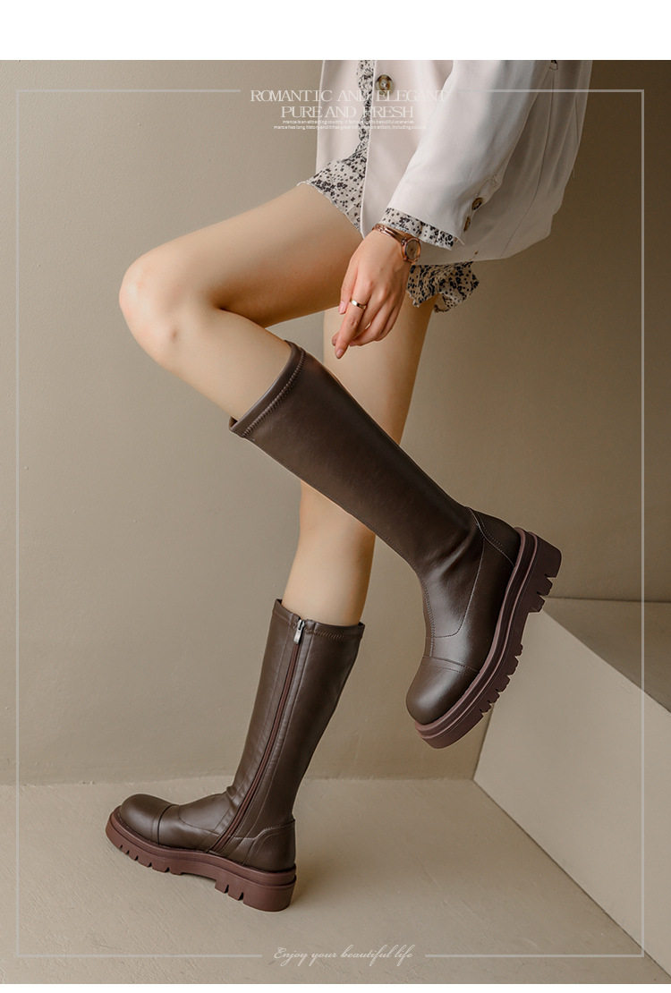 143-155cm小個子不過膝女靴小碼323334碼粗腿加寬加肥粗跟騎士靴