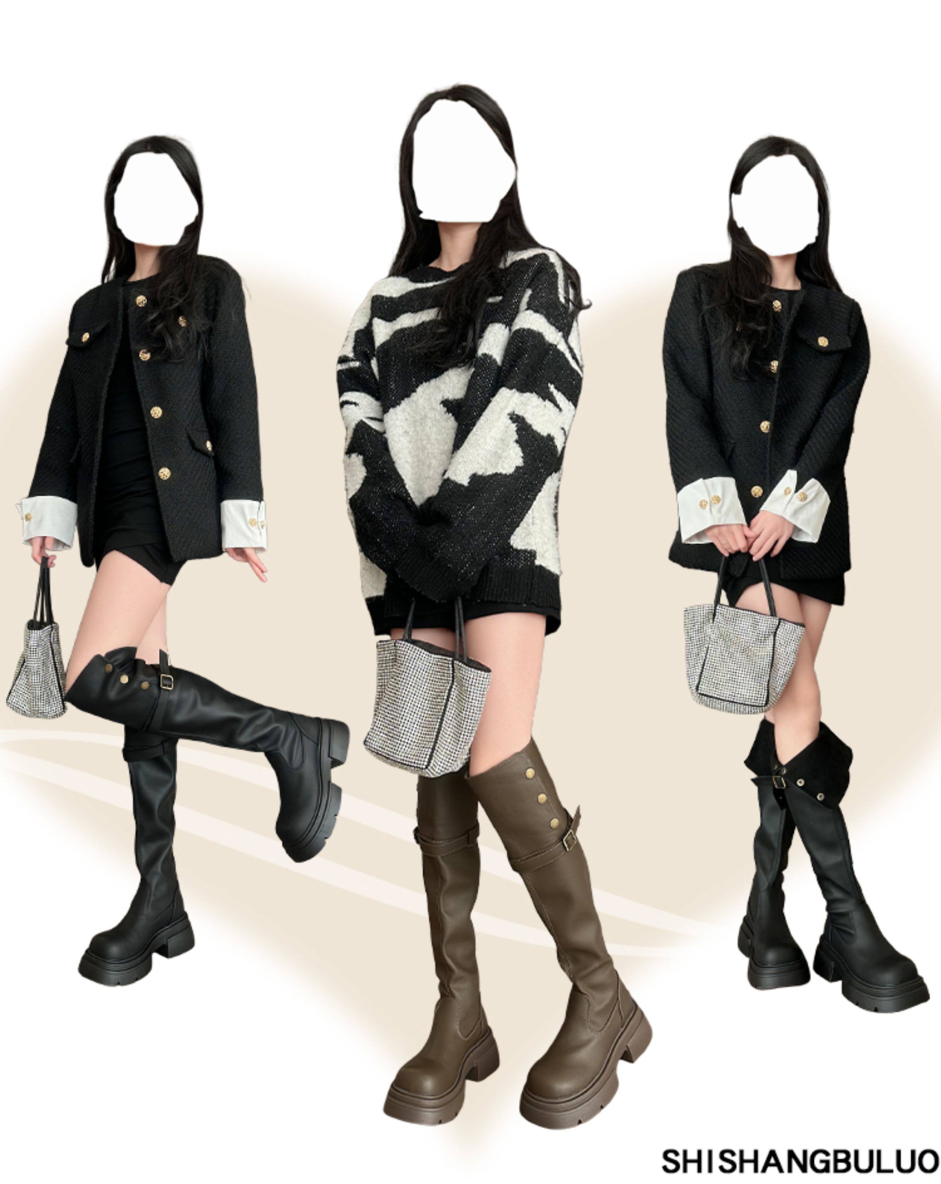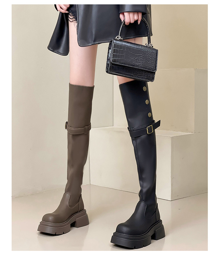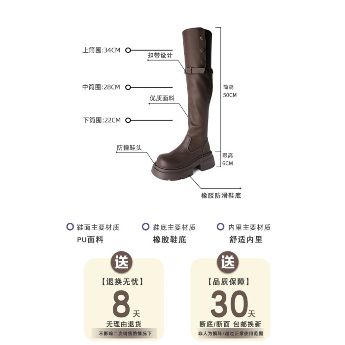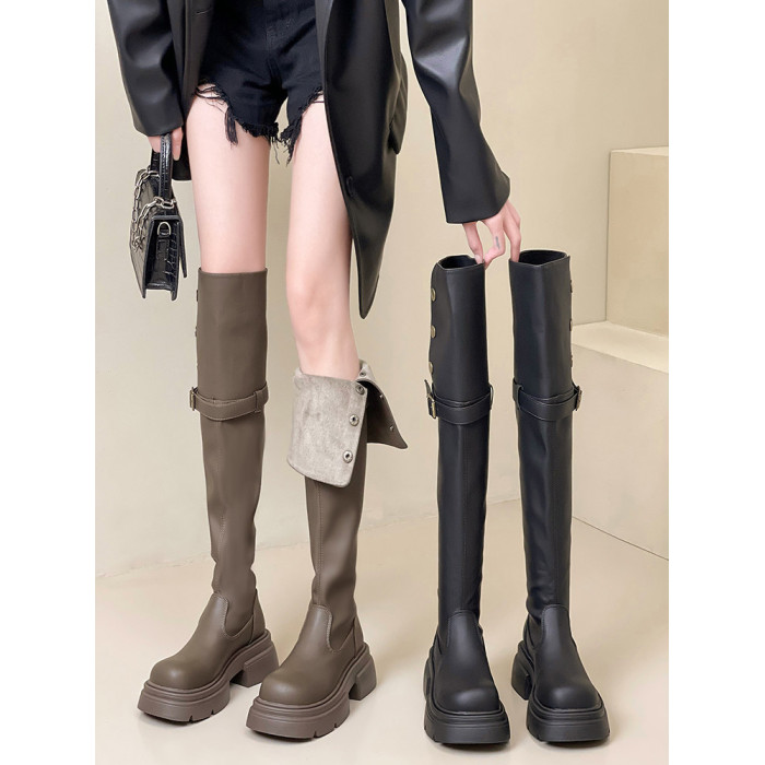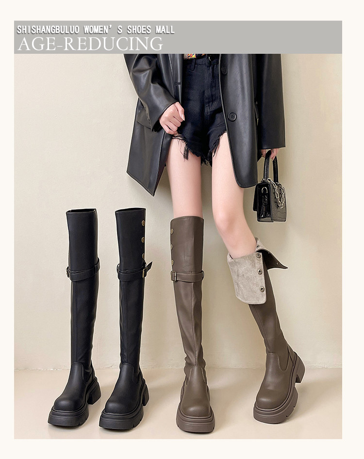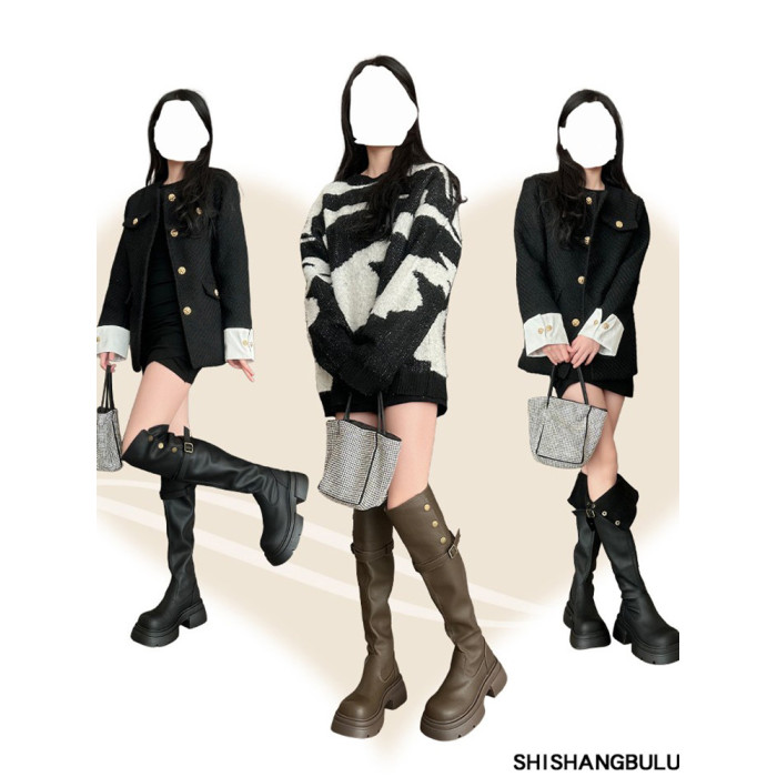 時尚部落兩穿厚底長筒過膝靴子女2025秋冬新款粗跟加絨長靴時裝靴