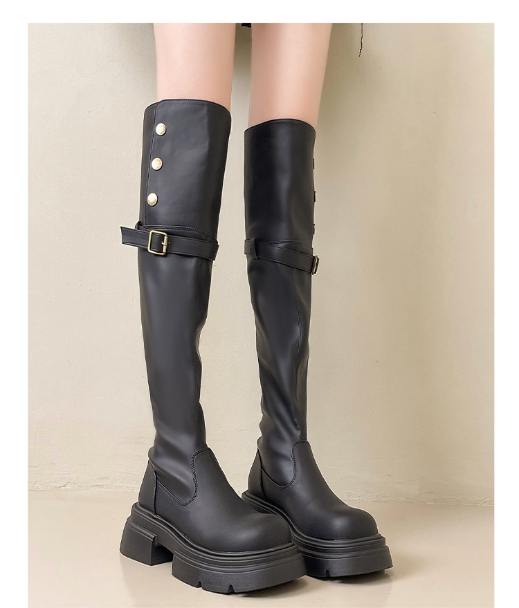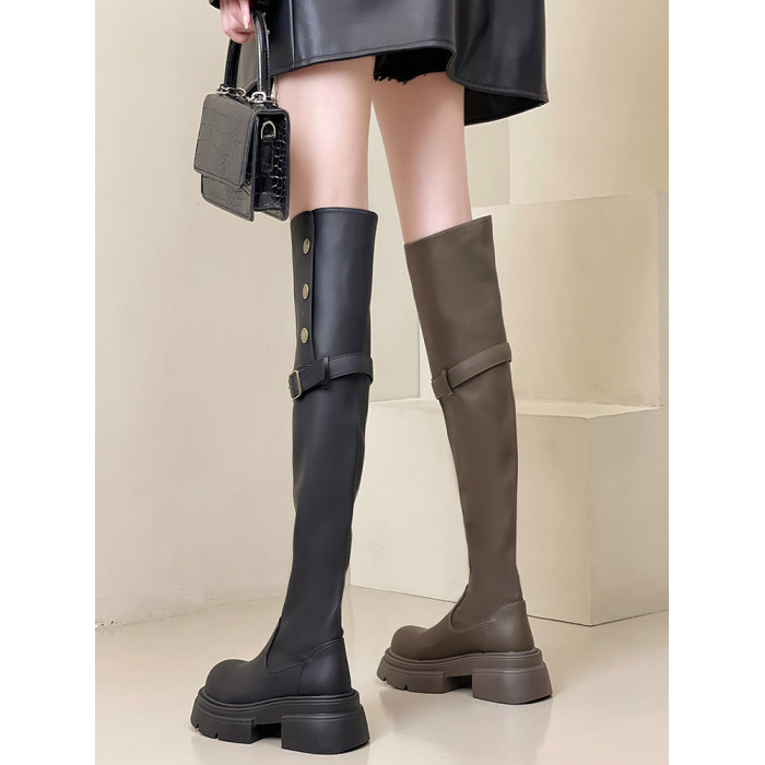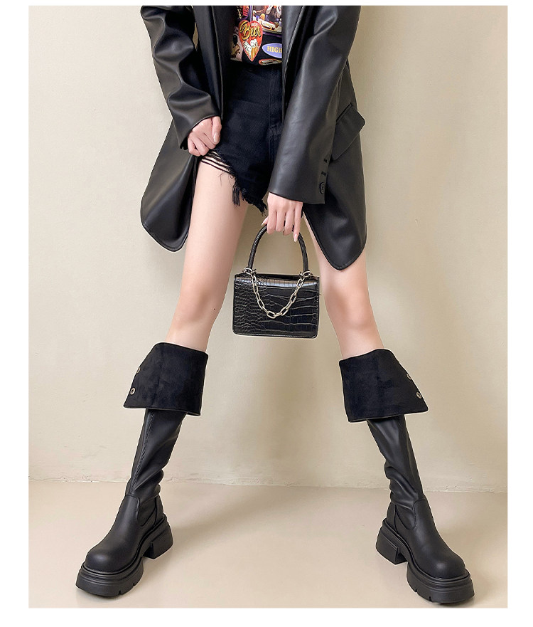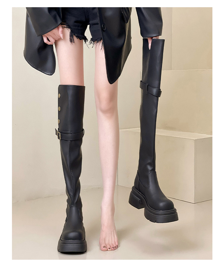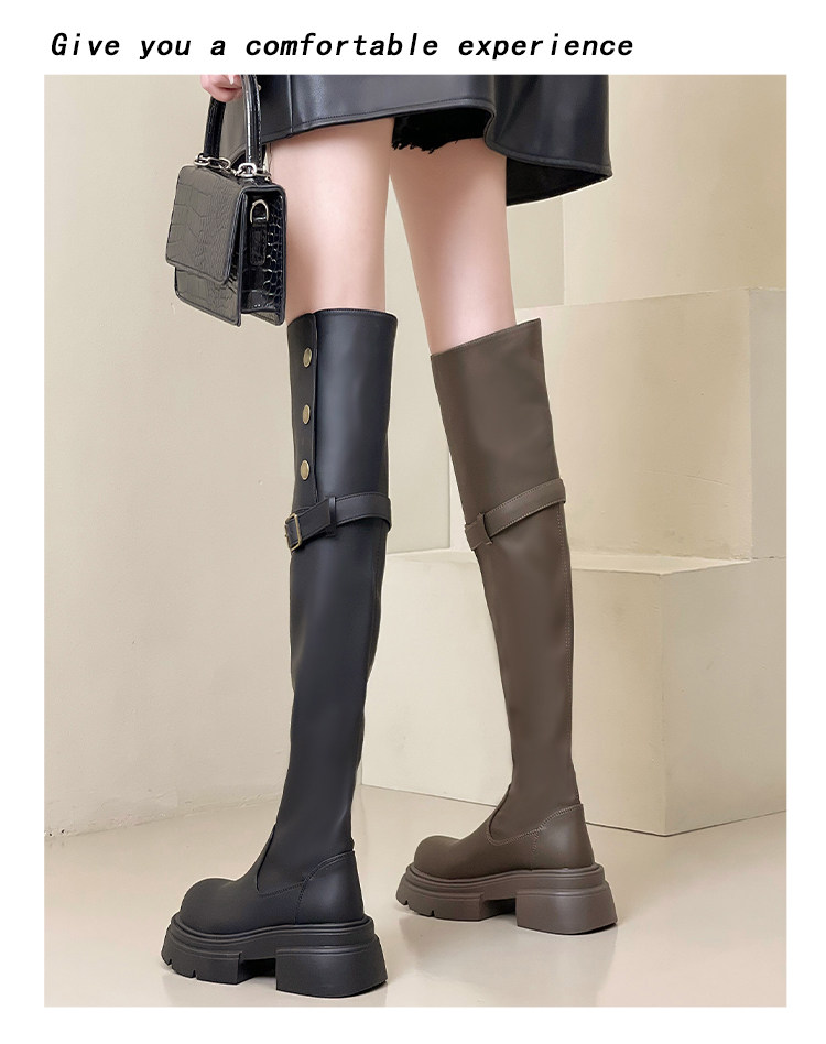 時尚部落兩穿厚底長筒過膝靴子女2025秋冬新款粗跟加絨長靴時裝靴