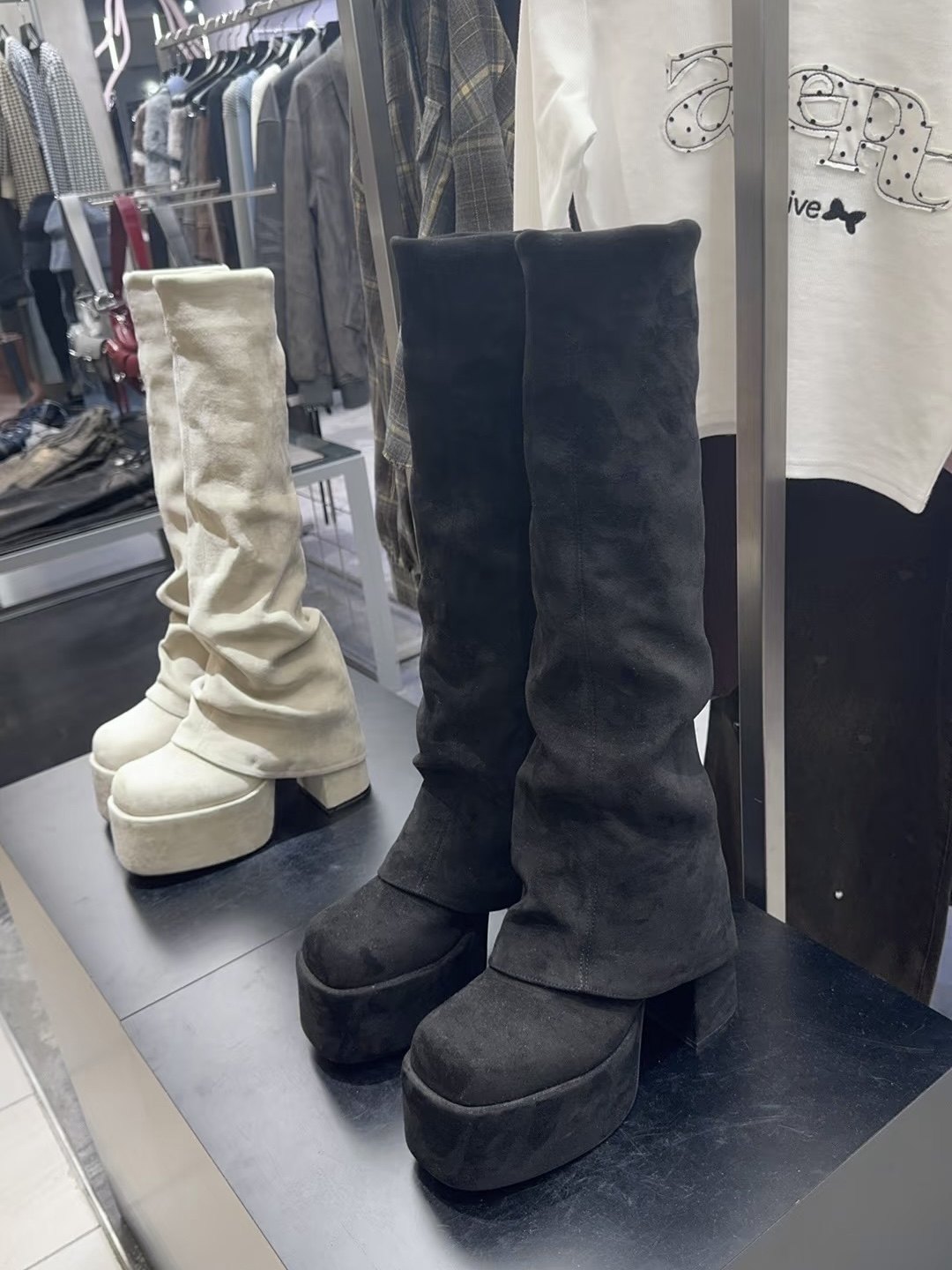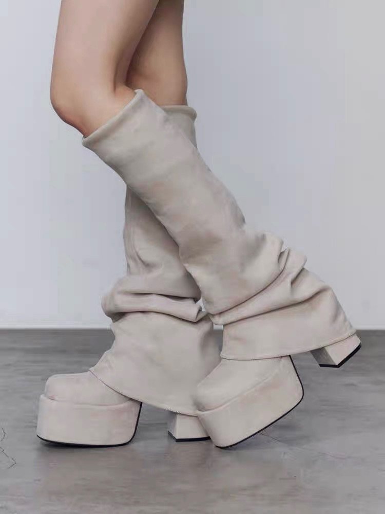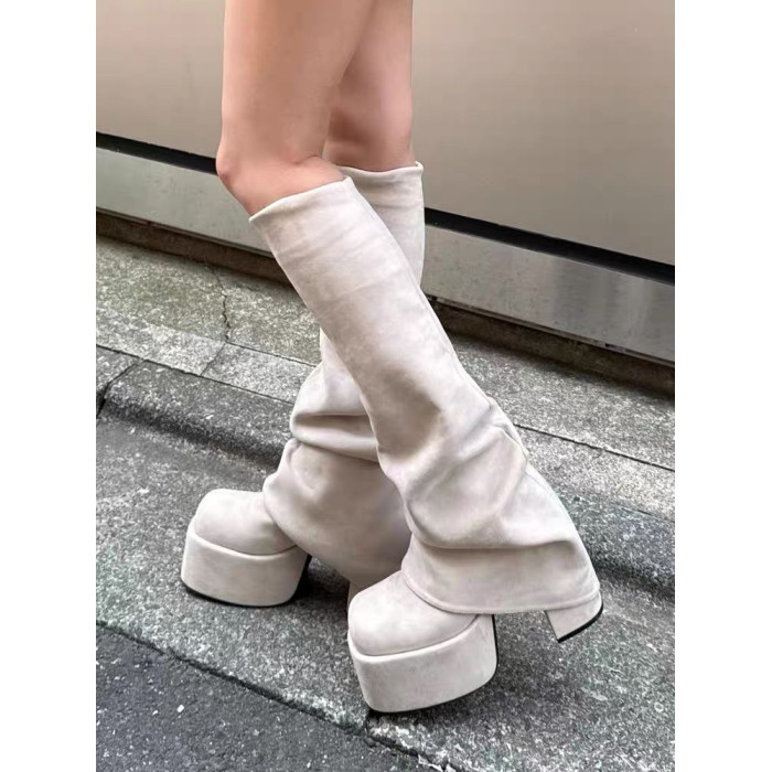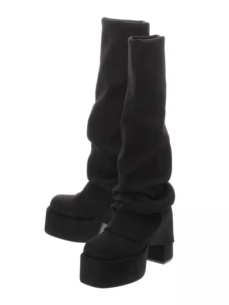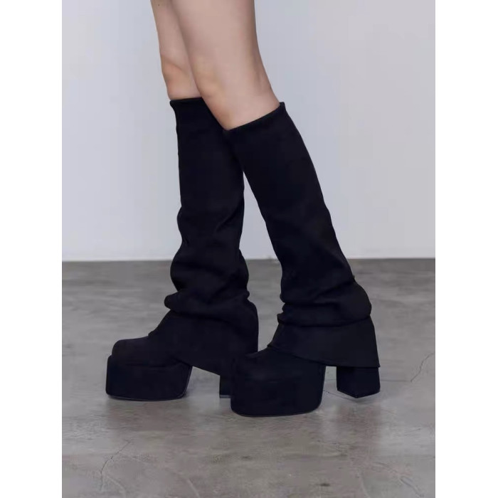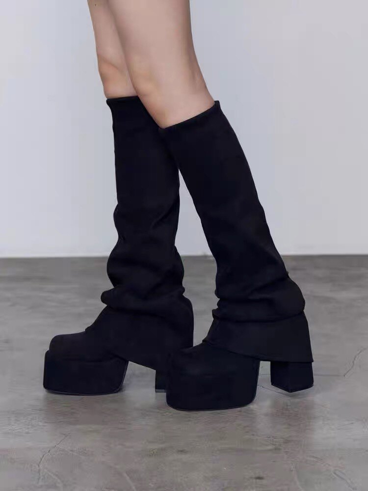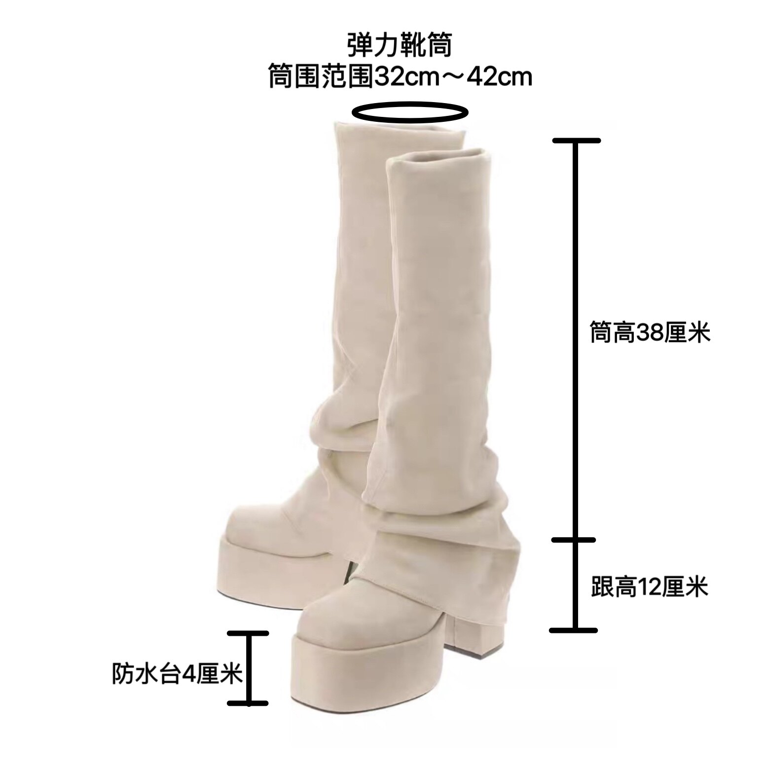 日系厚底高跟辣妹褲琯靴2026春季新款方頭高筒靴顯瘦彈力瘦瘦靴女