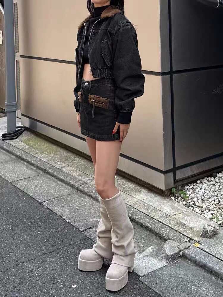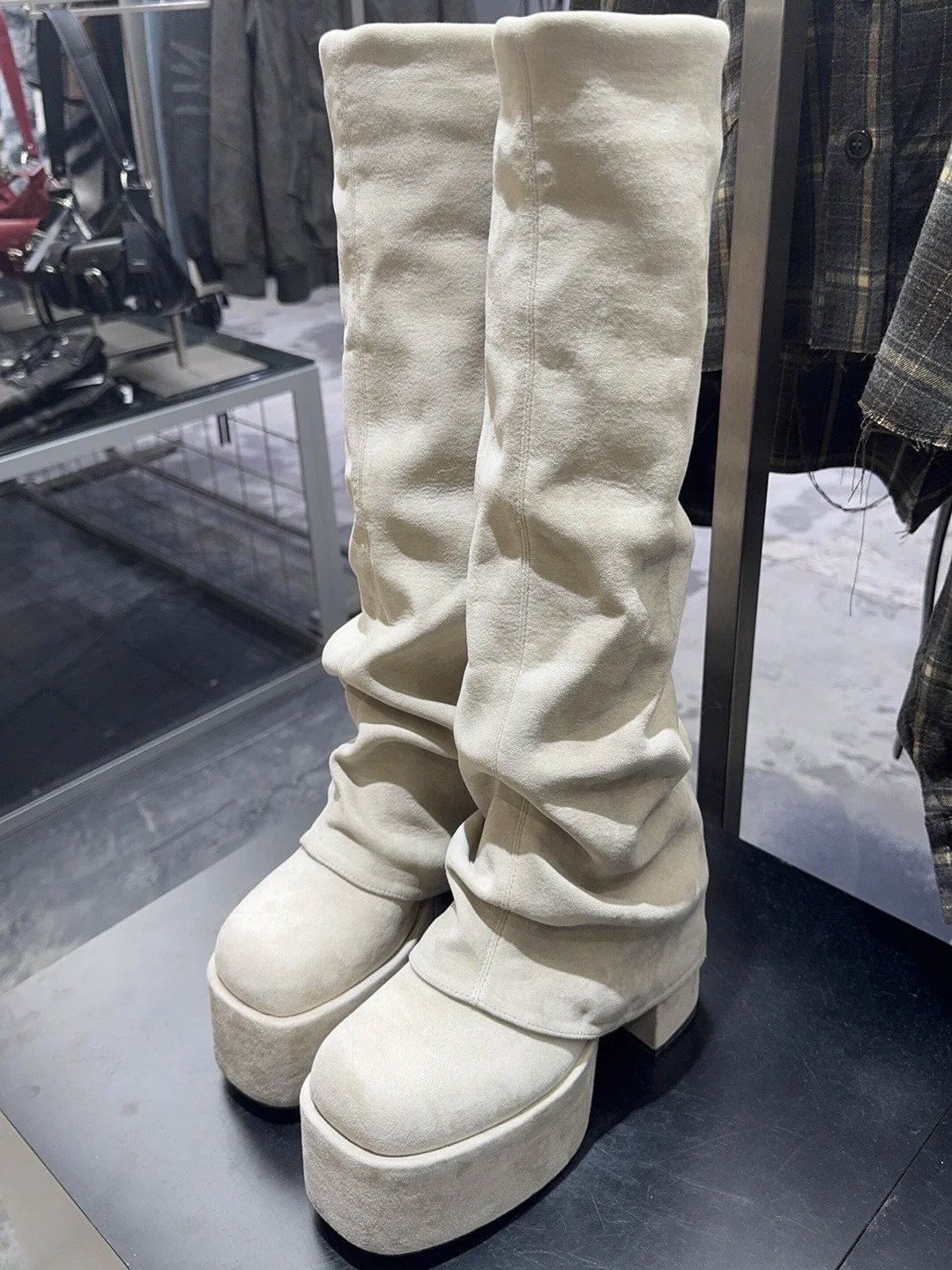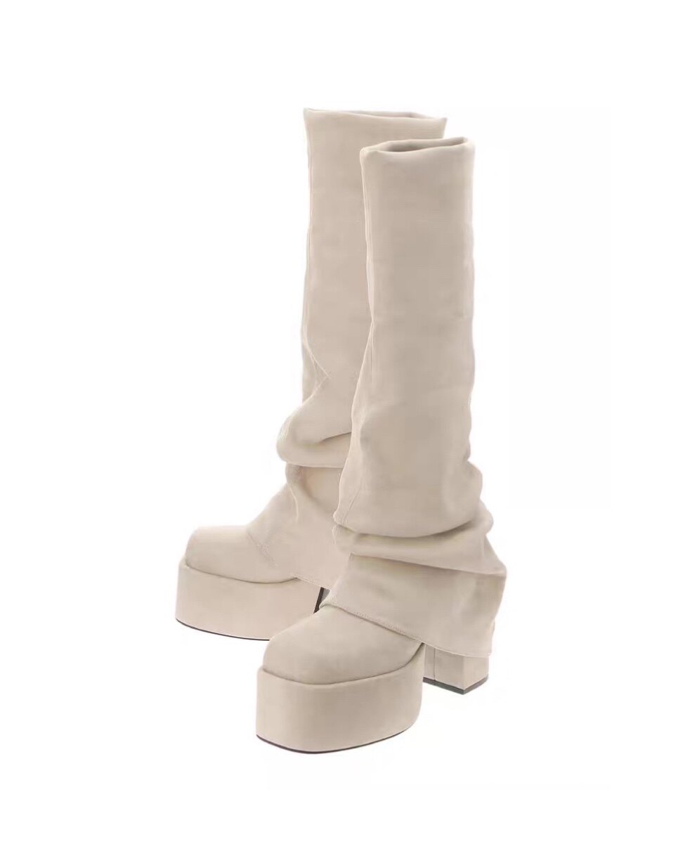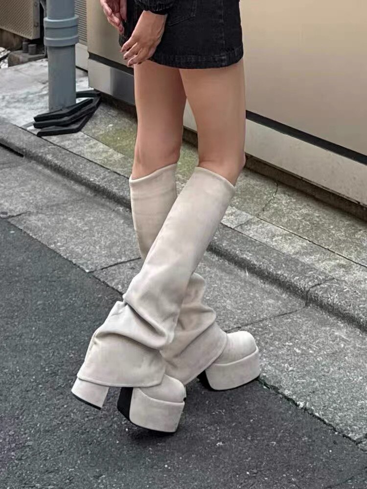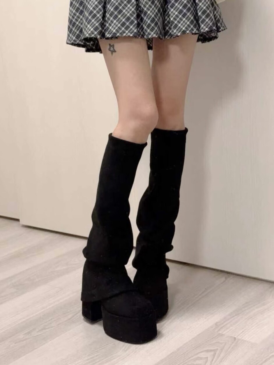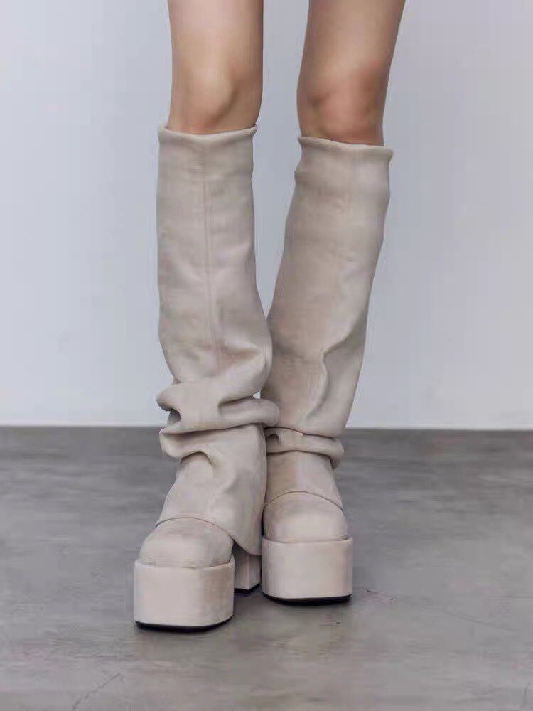 日系厚底高跟辣妹褲琯靴2026春季新款方頭高筒靴顯瘦彈力瘦瘦靴女