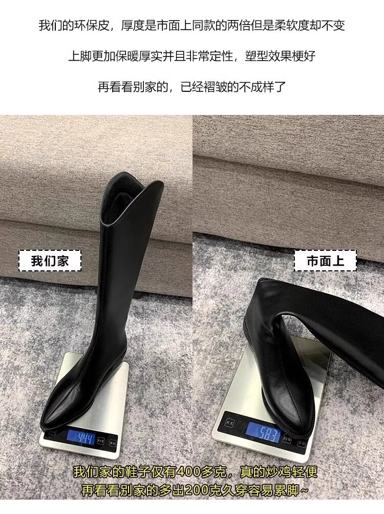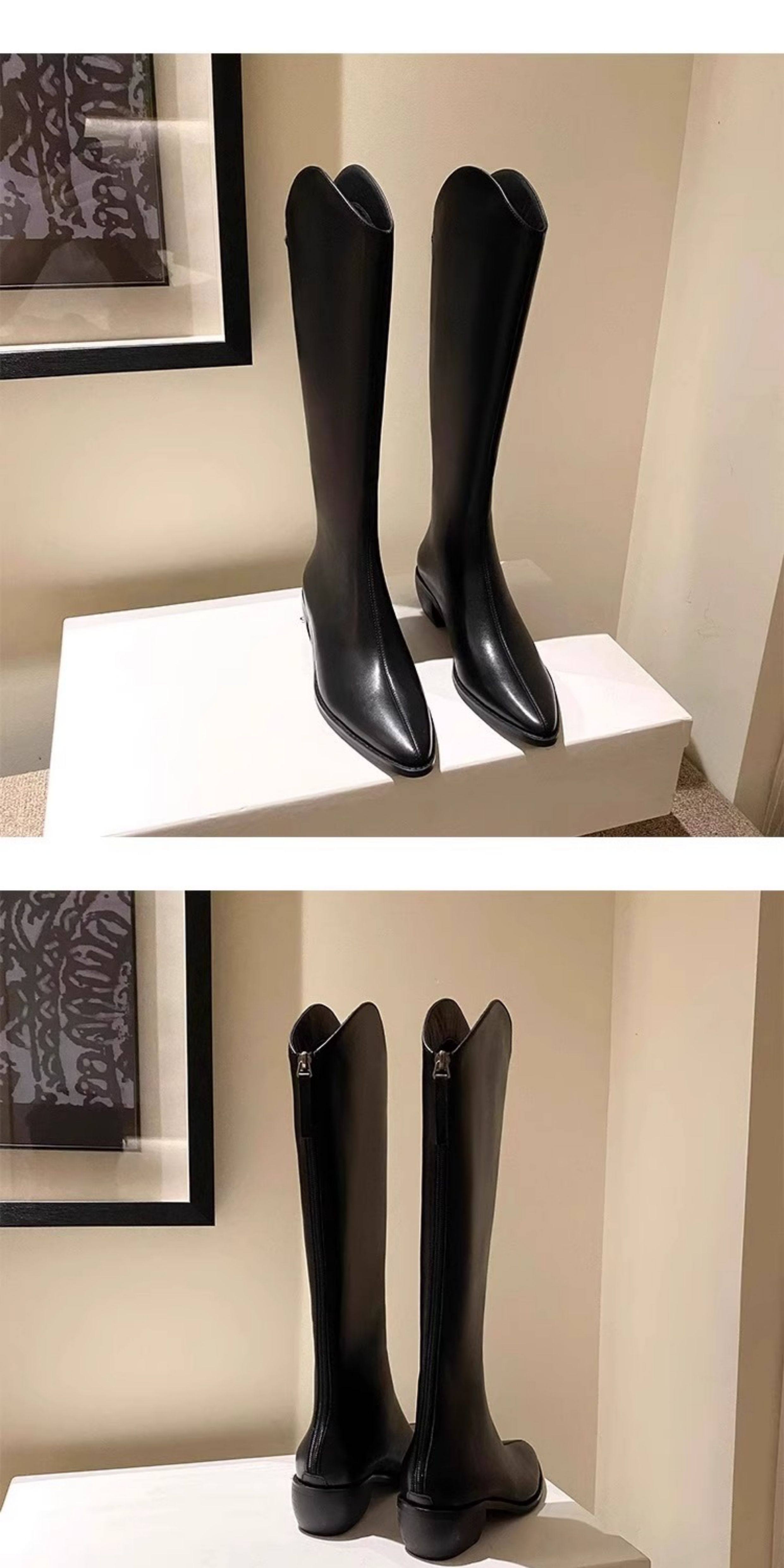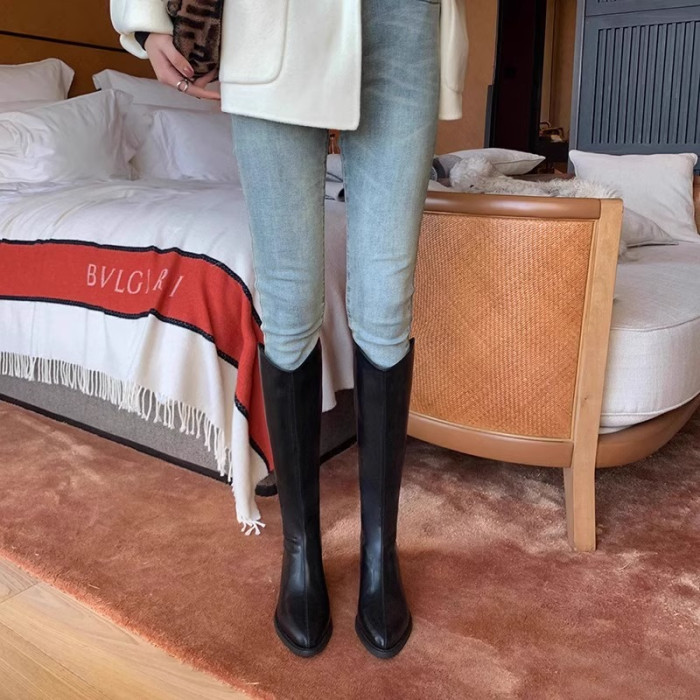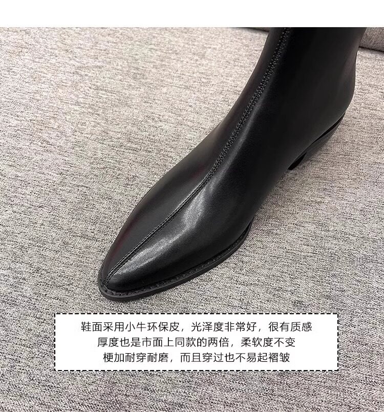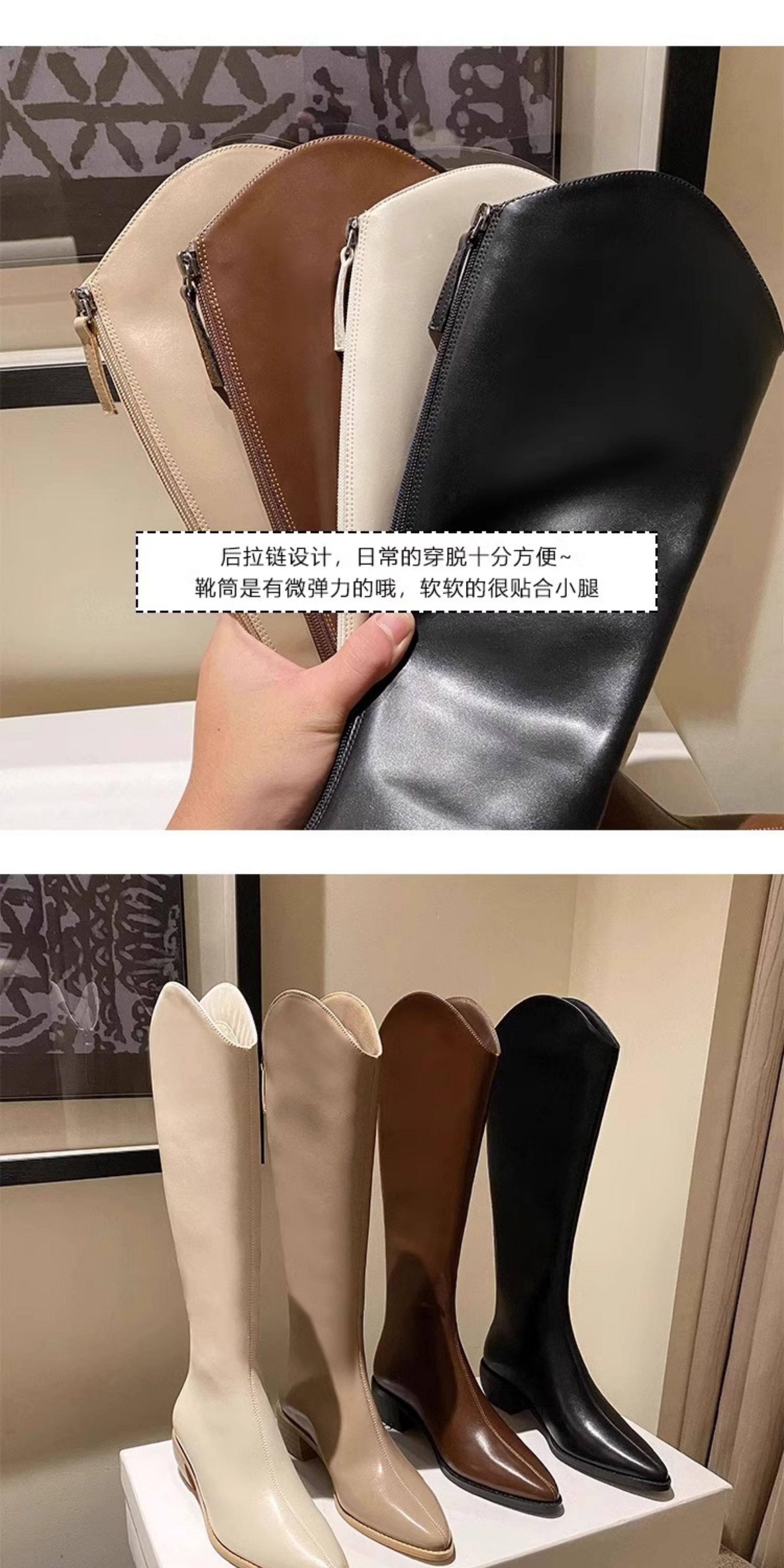 品牌撤櫃真皮時裝靴女2025年秋冬新款中跟粗跟長靴不過膝長靴子