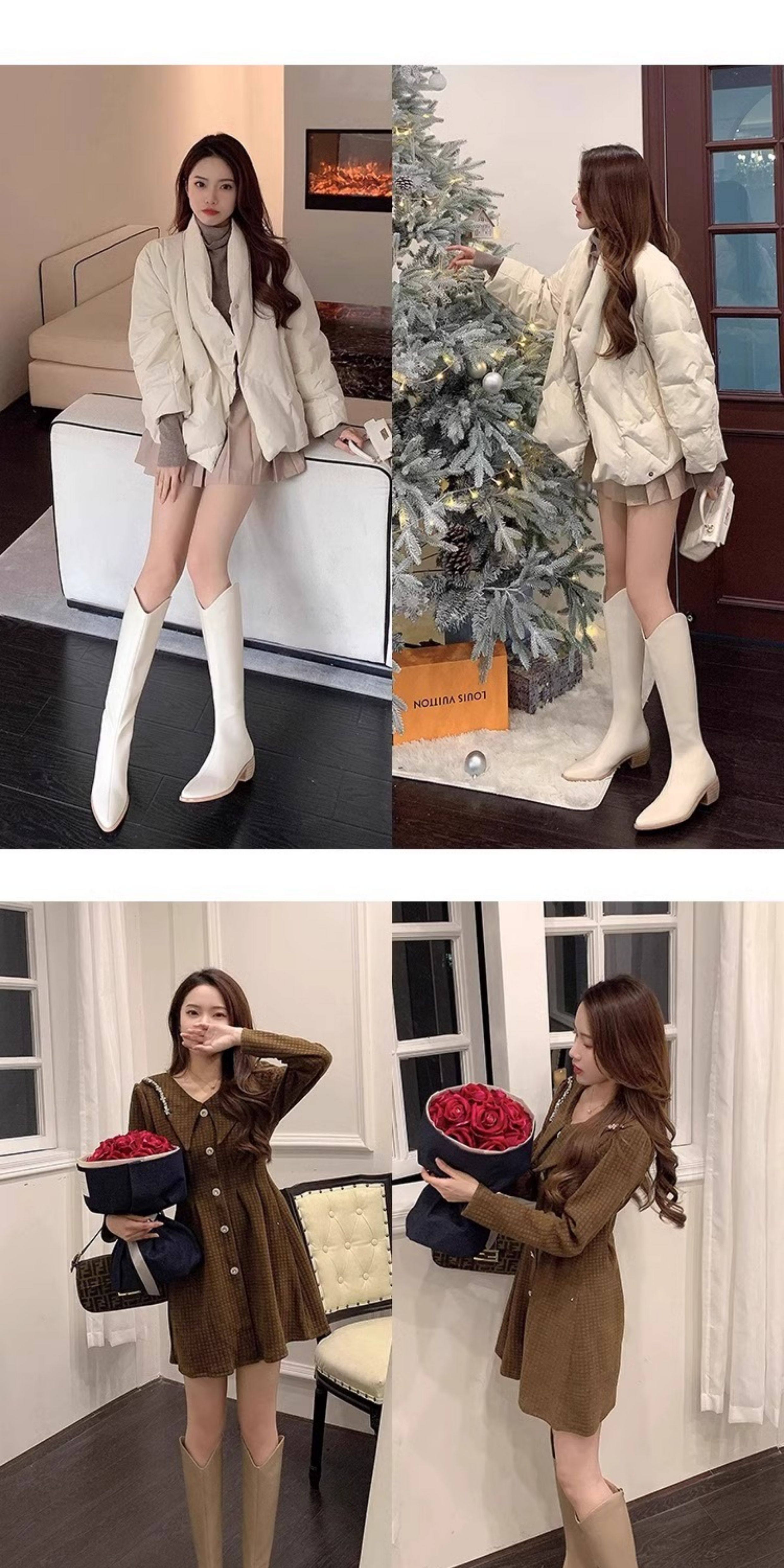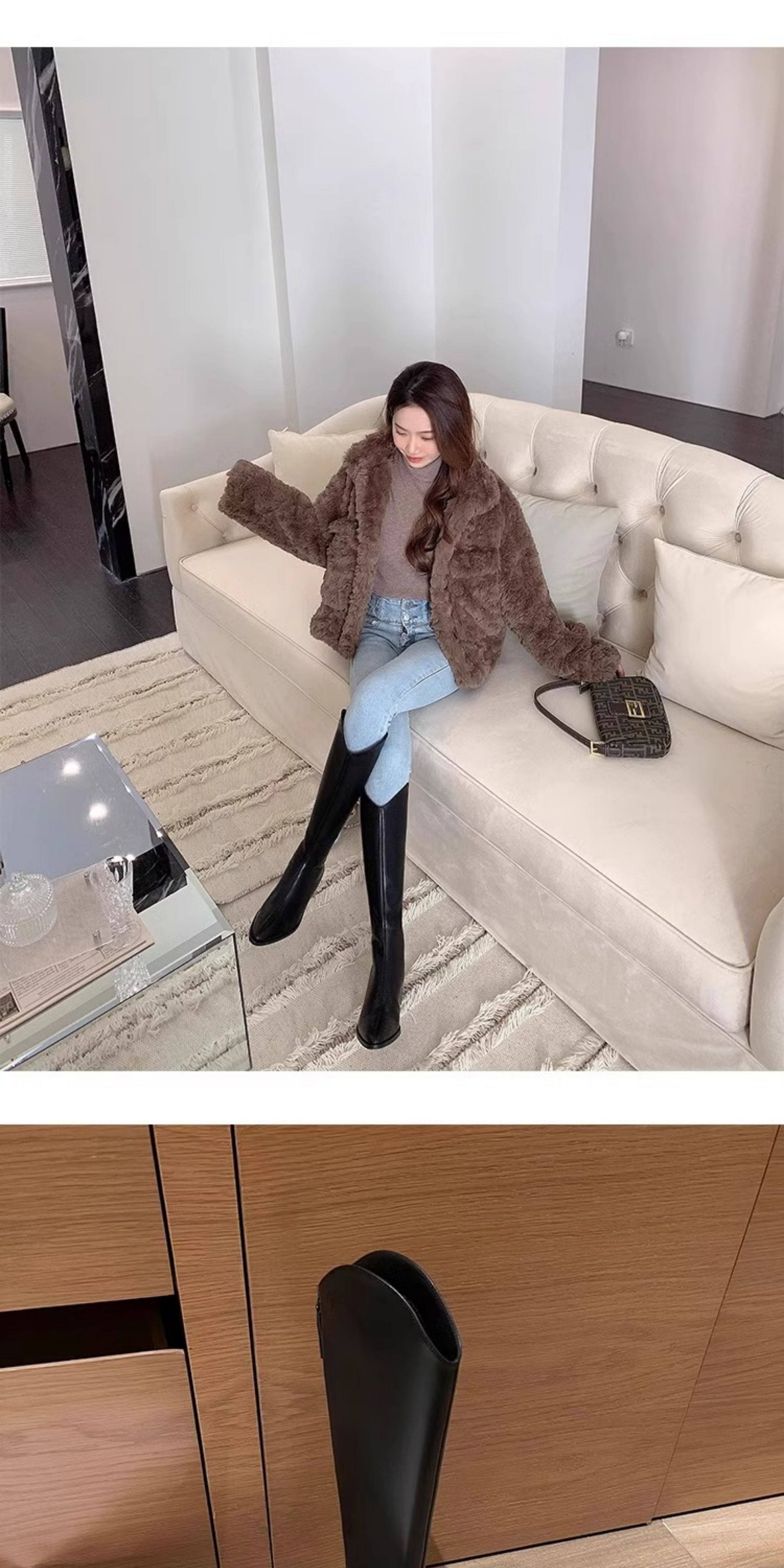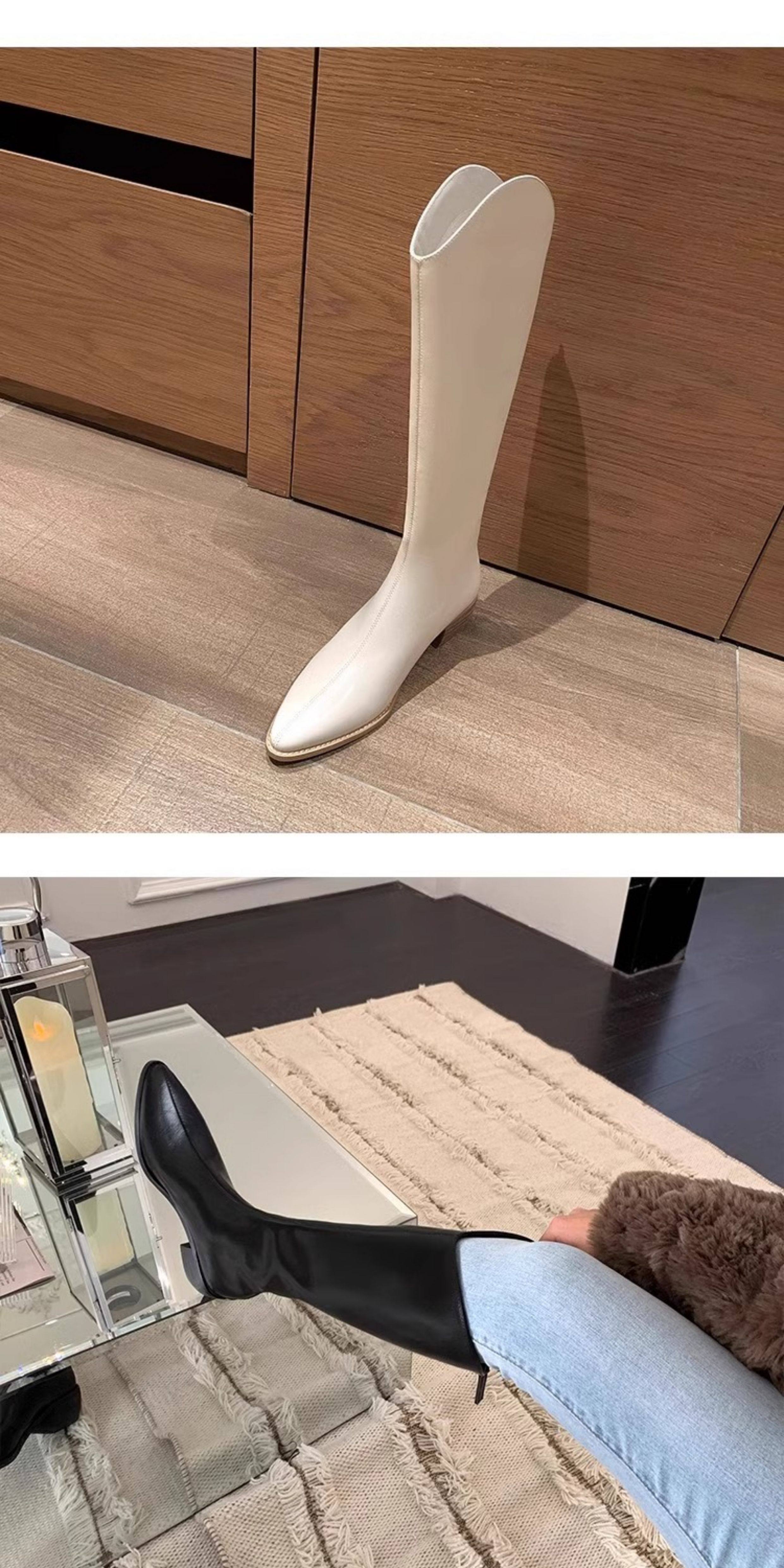 品牌撤櫃真皮時裝靴女2025年秋冬新款中跟粗跟長靴不過膝長靴子