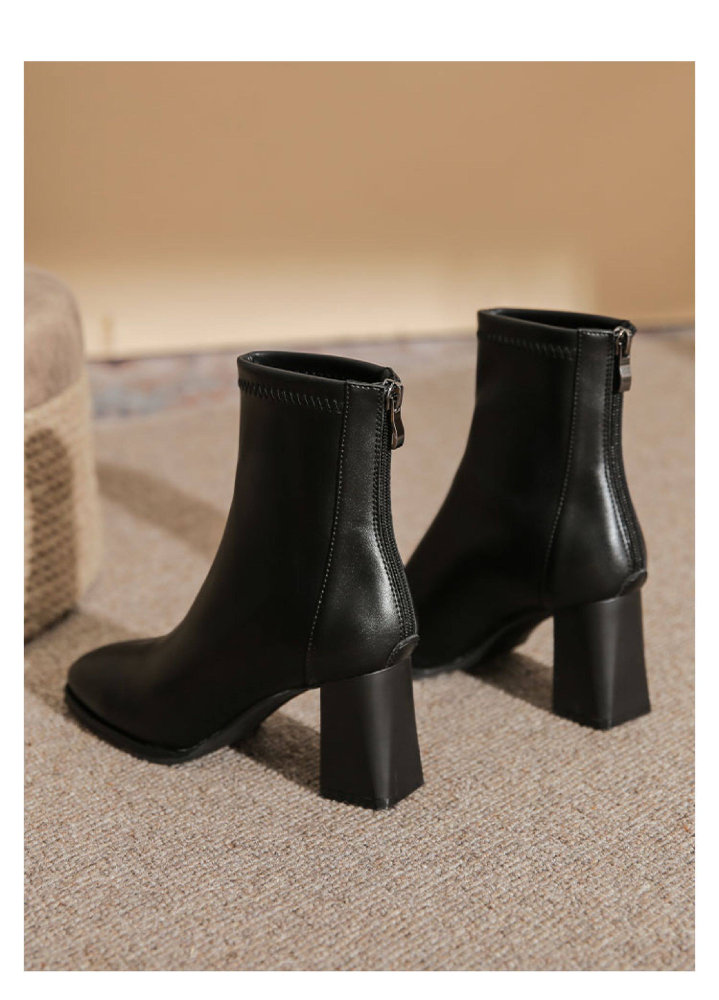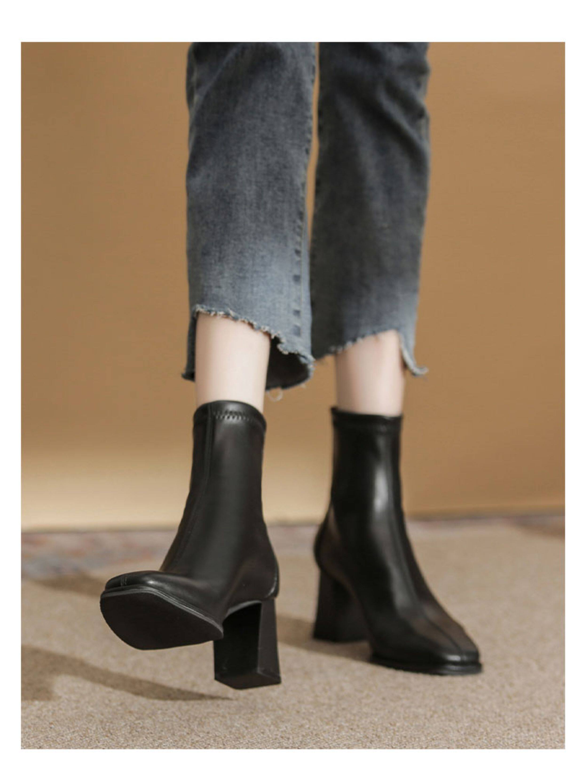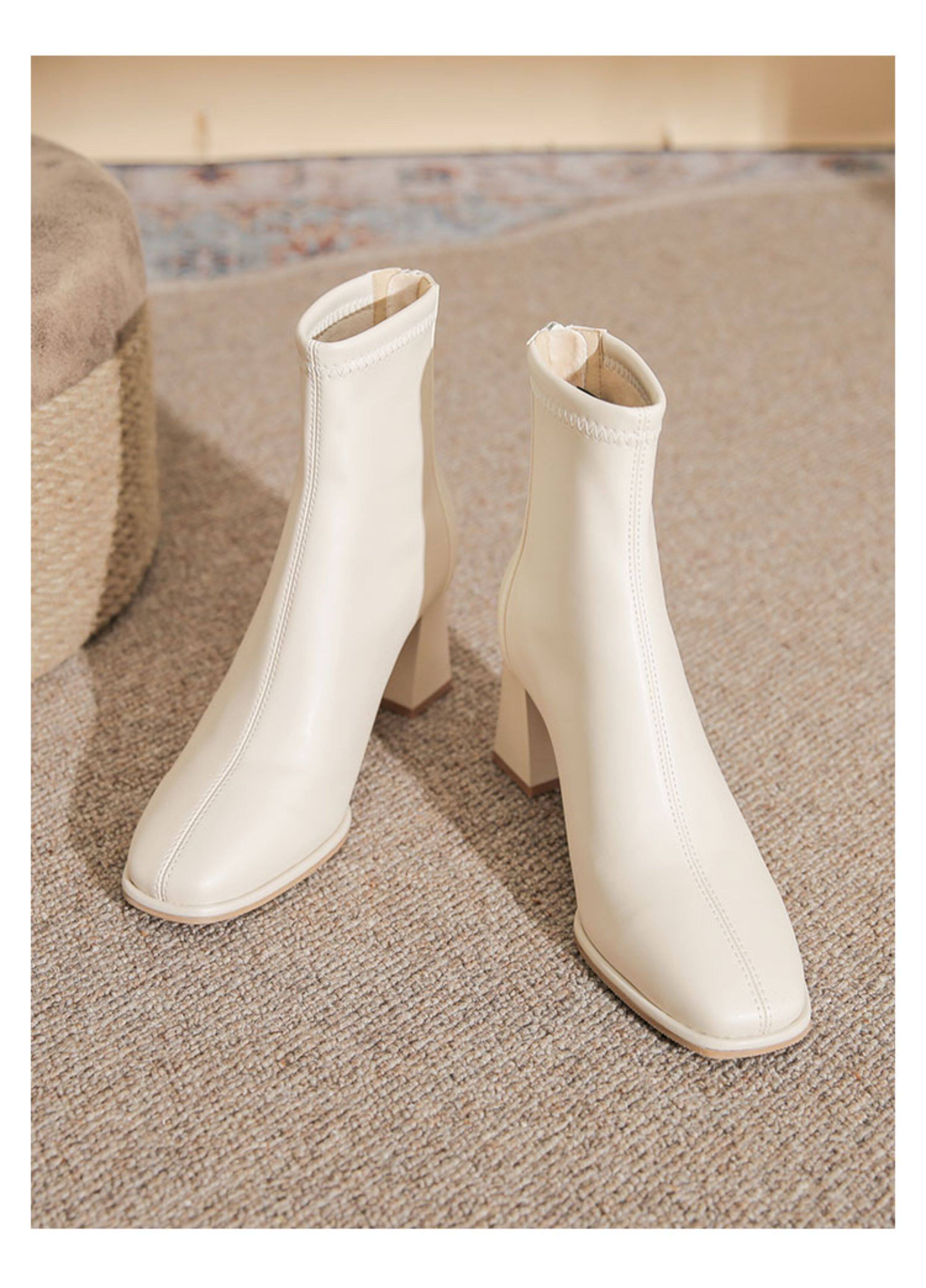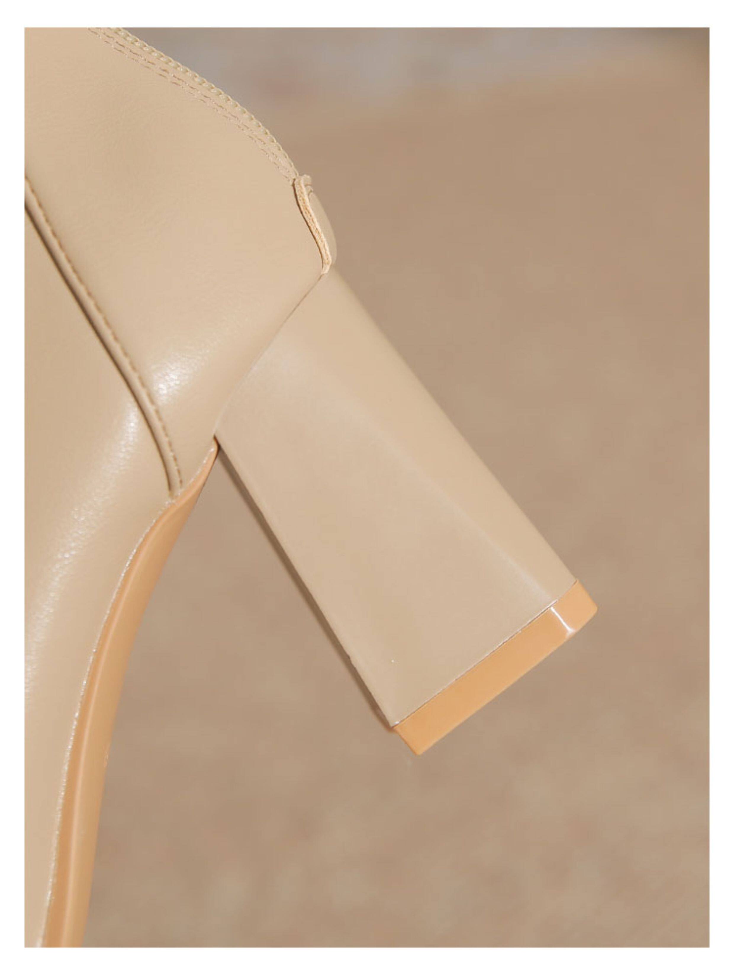 微先生美拉德風氣質高跟短靴女韓版瘦瘦靴女靴子女奶茶色粗跟短靴