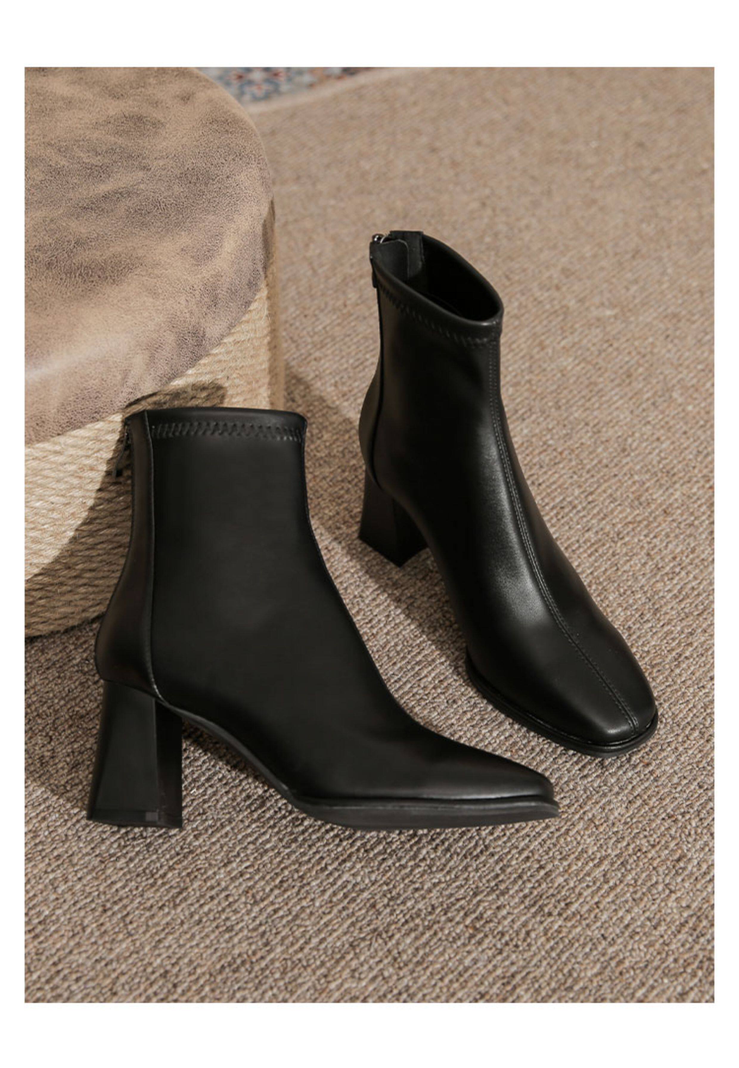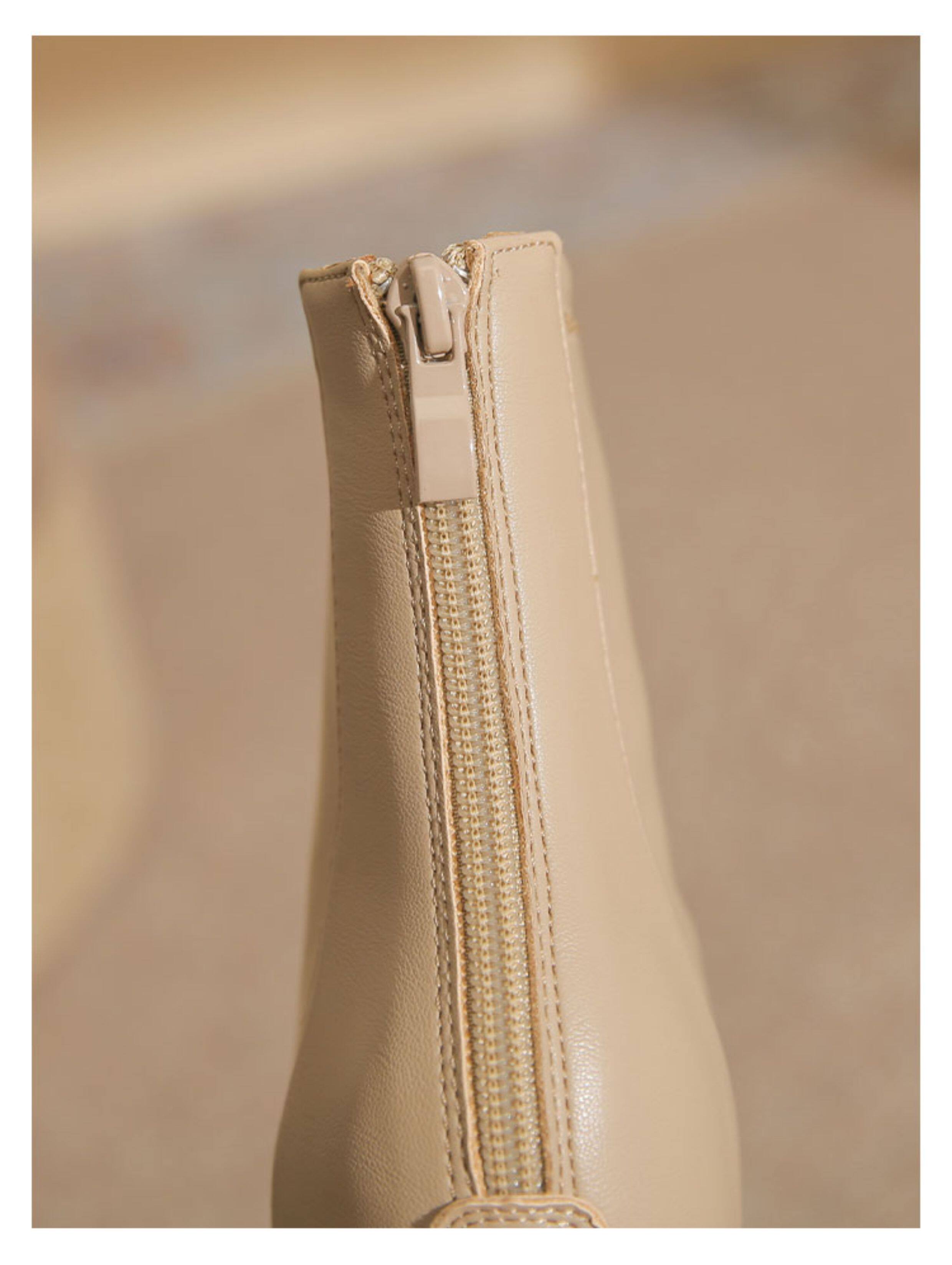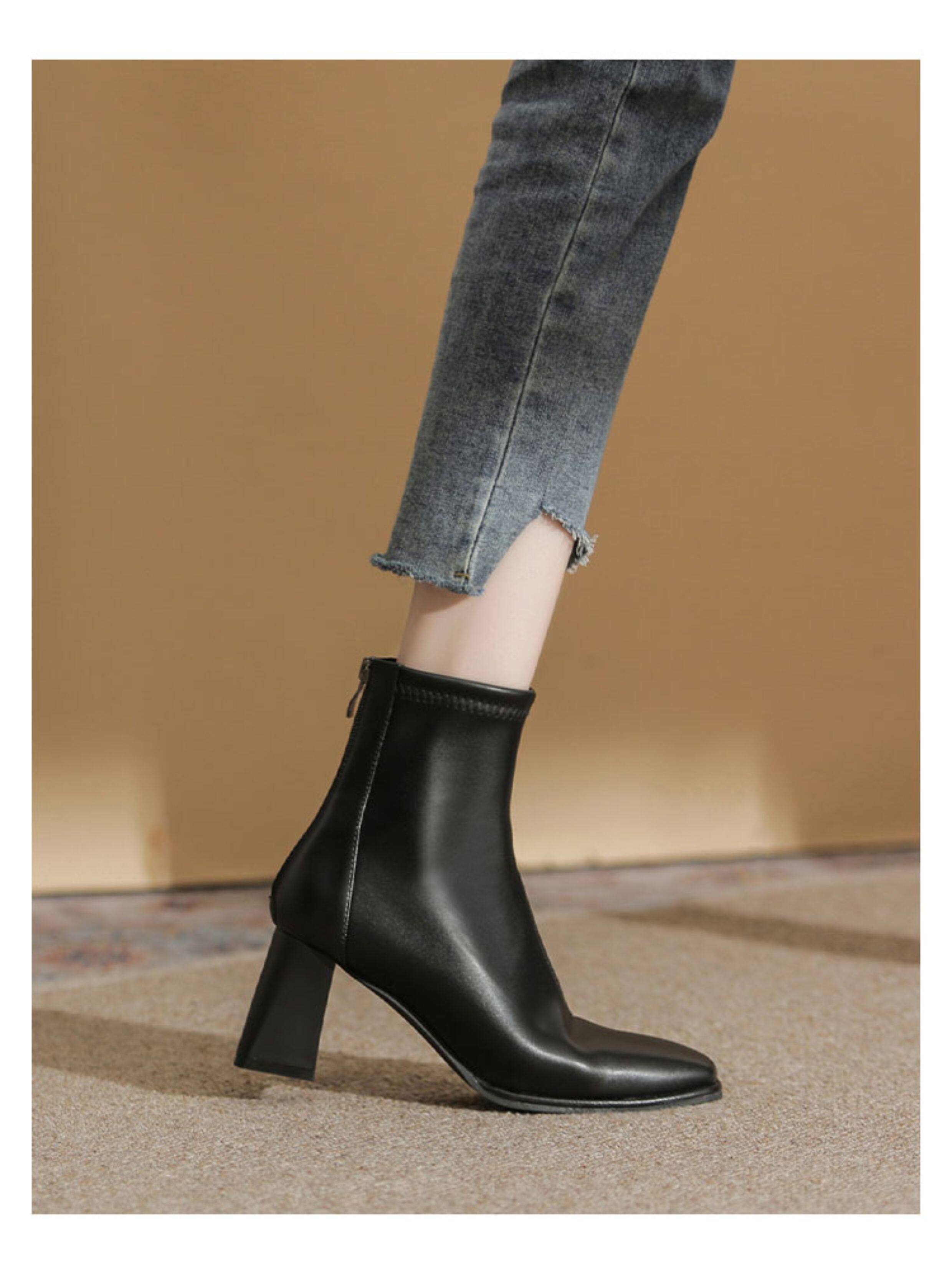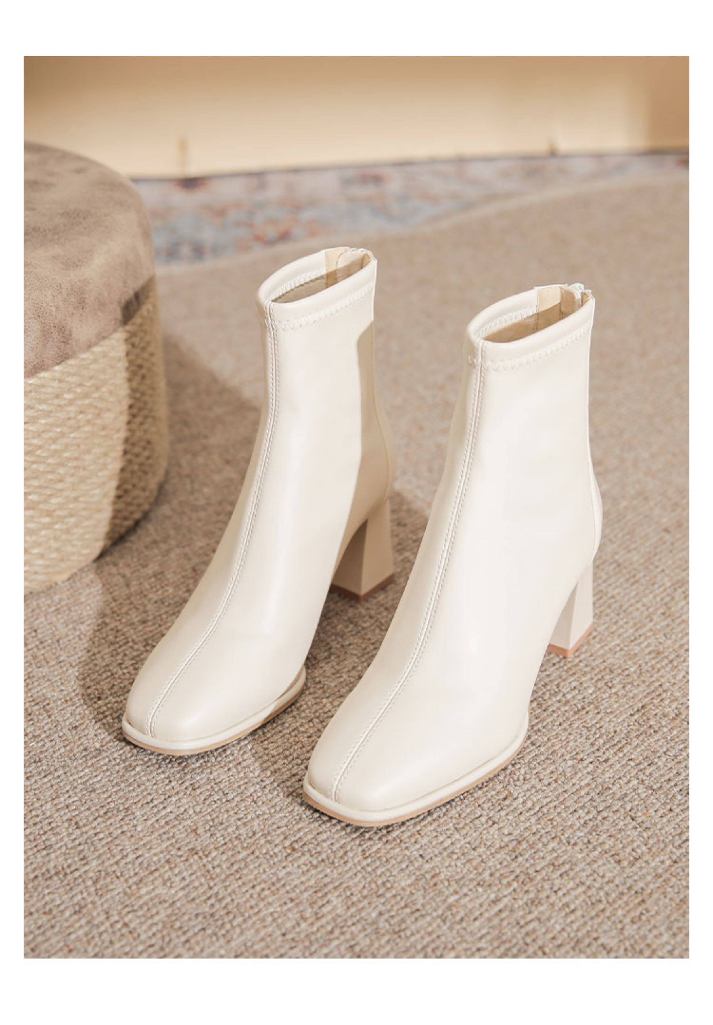 微先生美拉德風氣質高跟短靴女韓版瘦瘦靴女靴子女奶茶色粗跟短靴