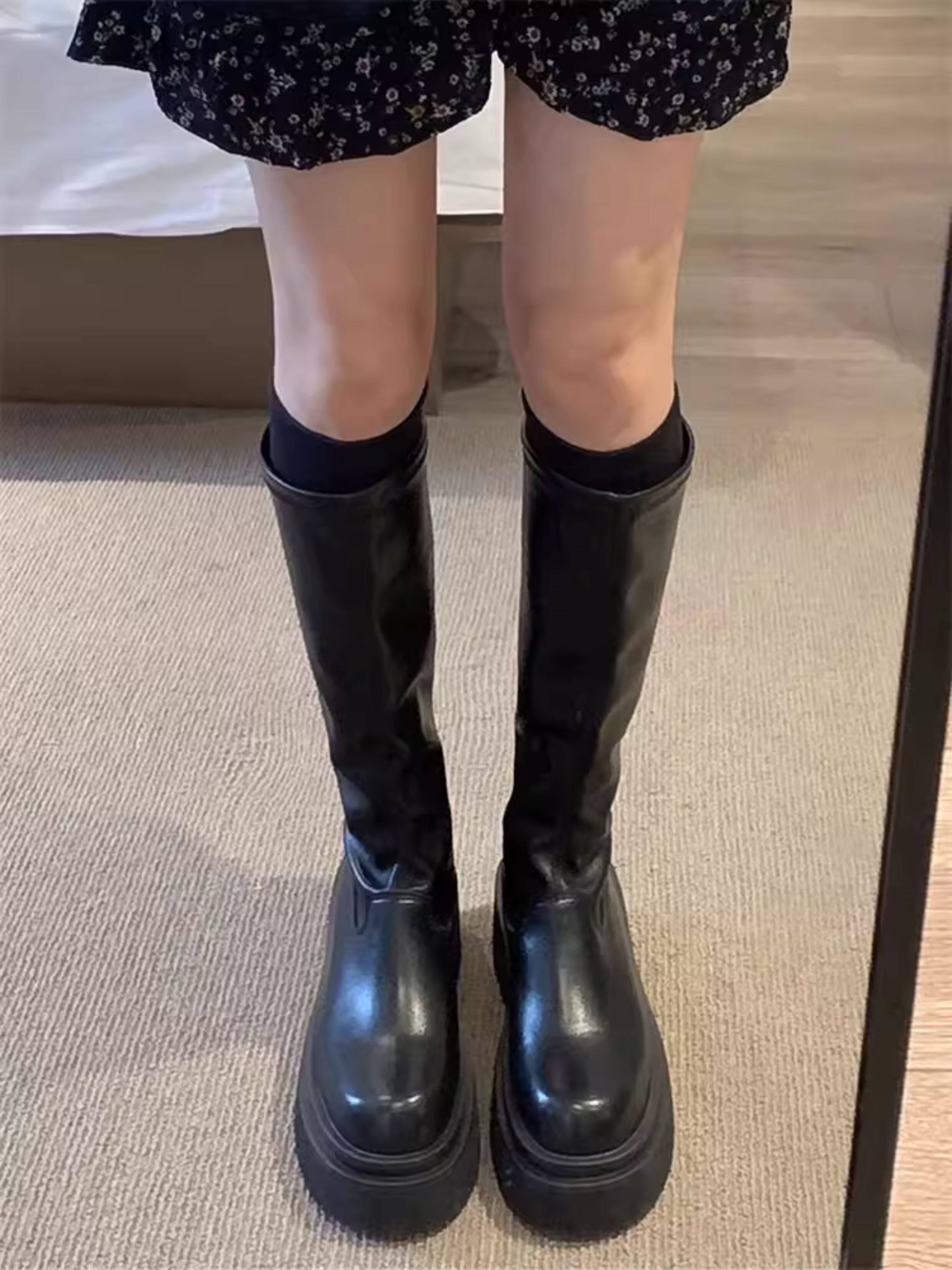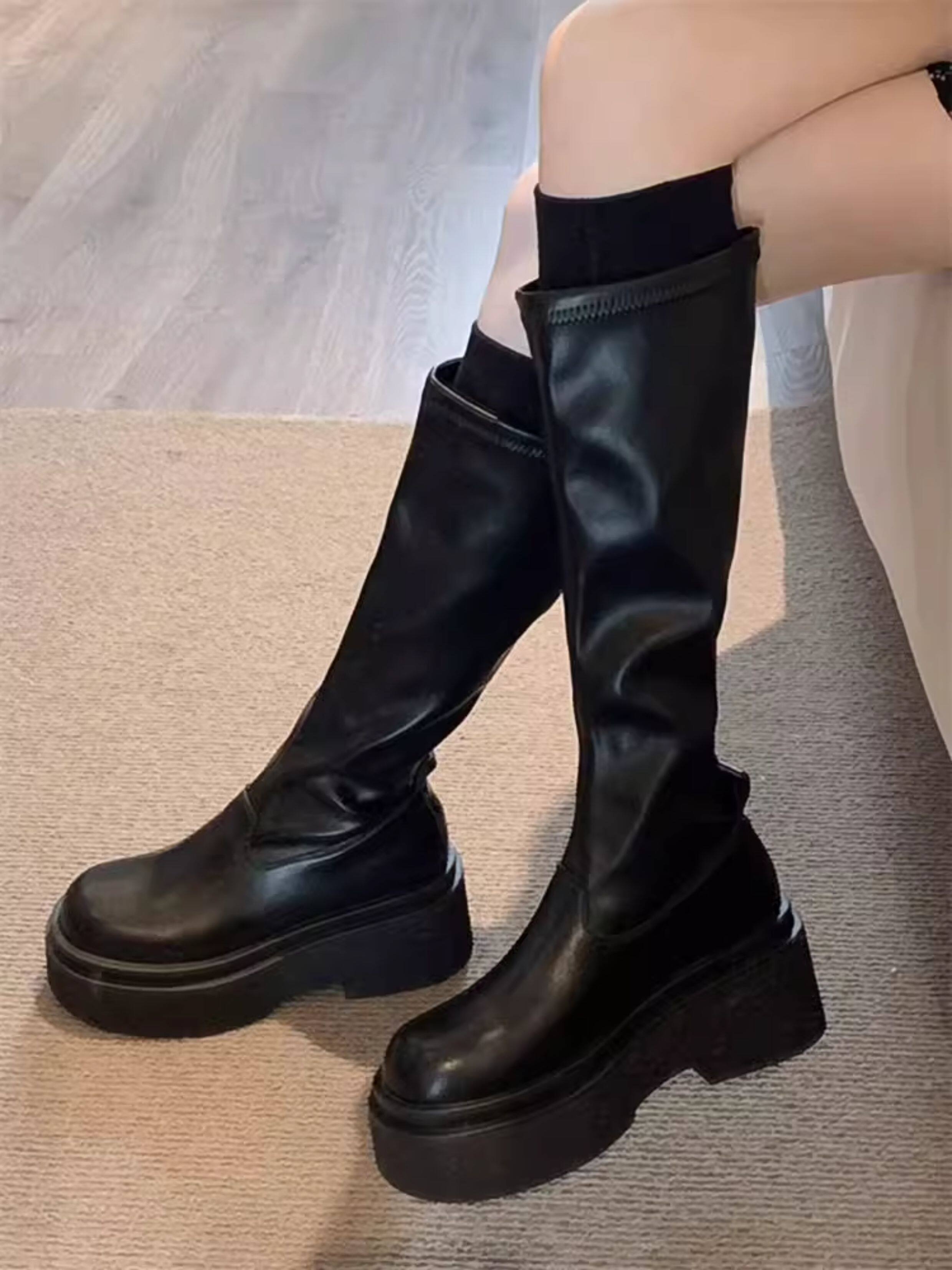 厚底長筒靴女2026年春秋新款不過膝彈力瘦瘦靴增高筒騎士辣妹長靴