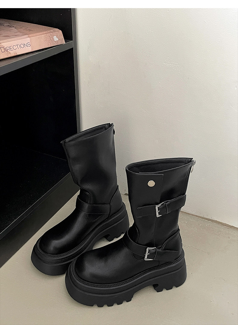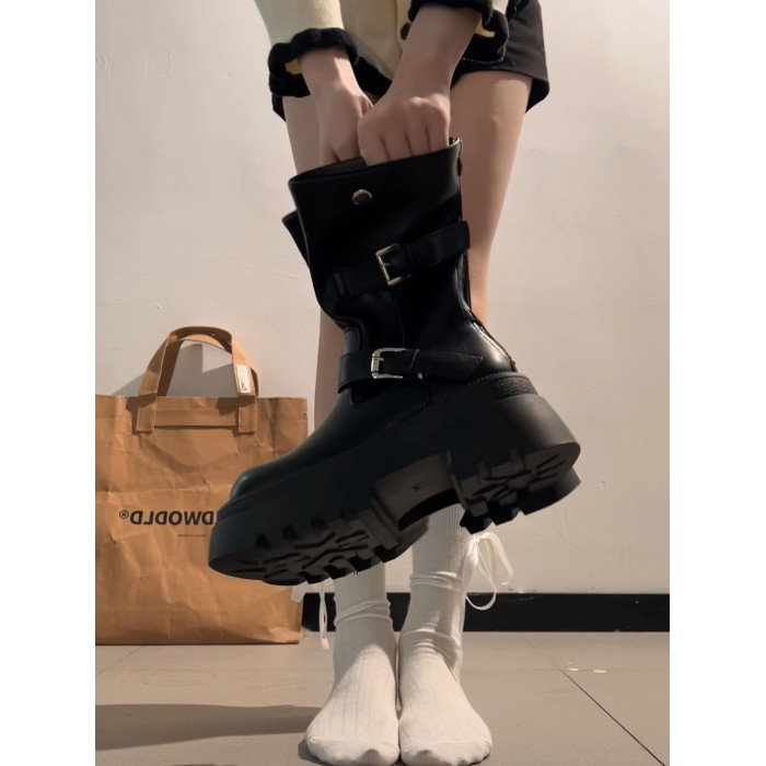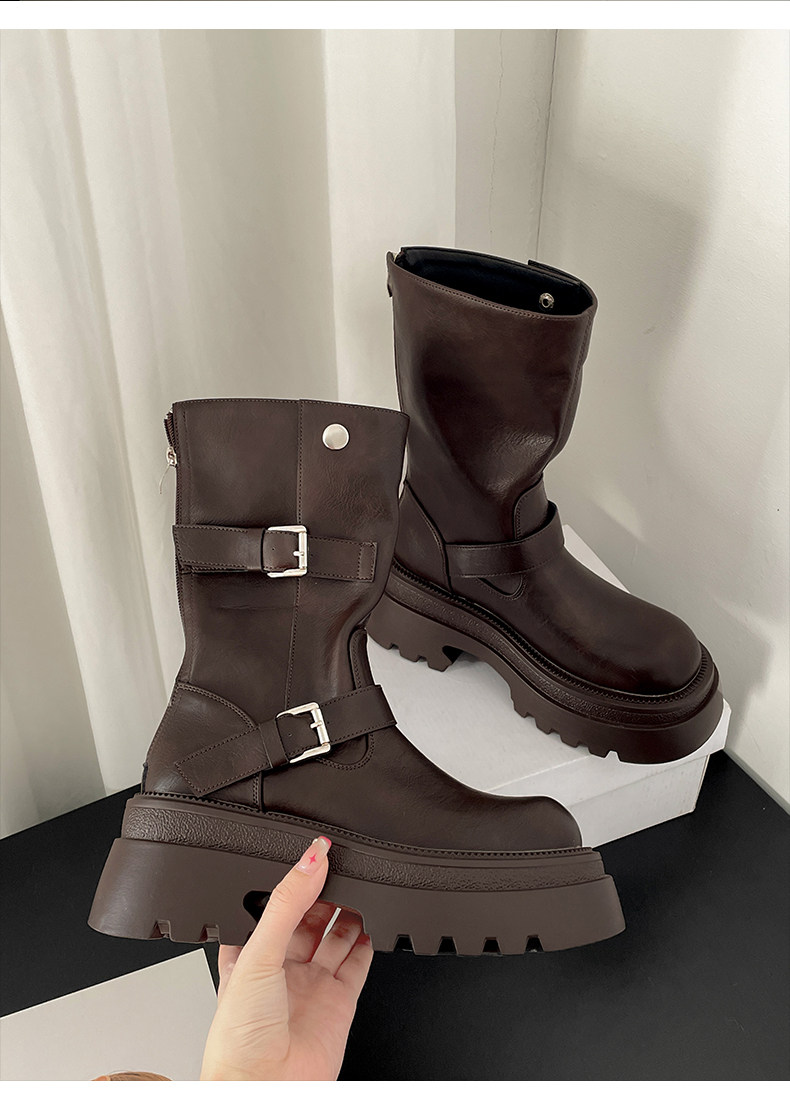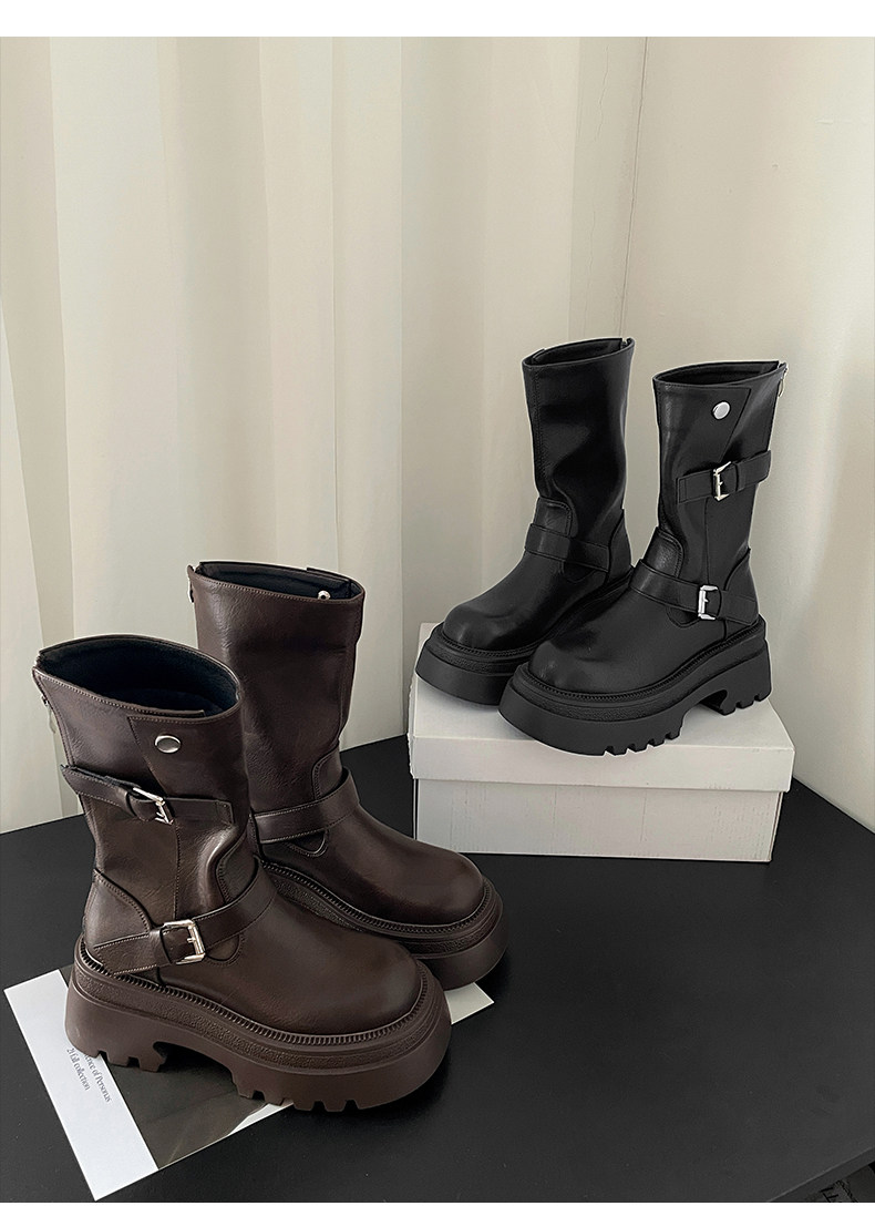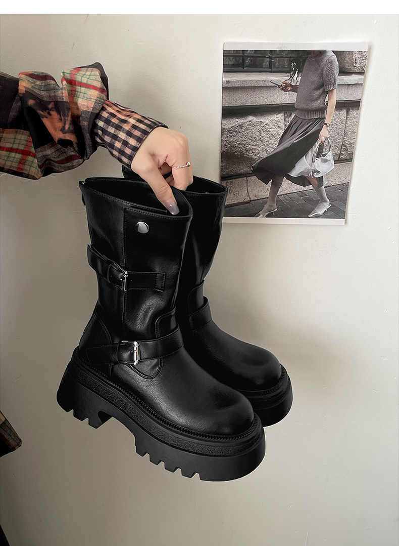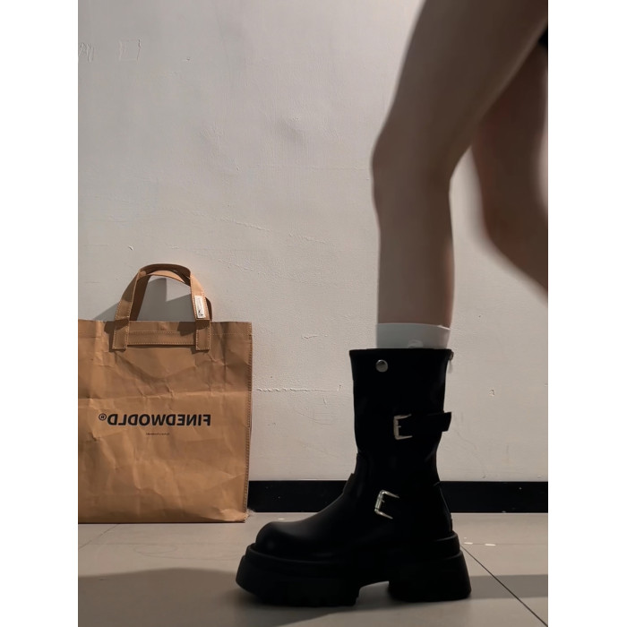 黑色復古英倫風粗跟厚底馬丁靴女款2025新款秋季增高顯瘦騎士短靴