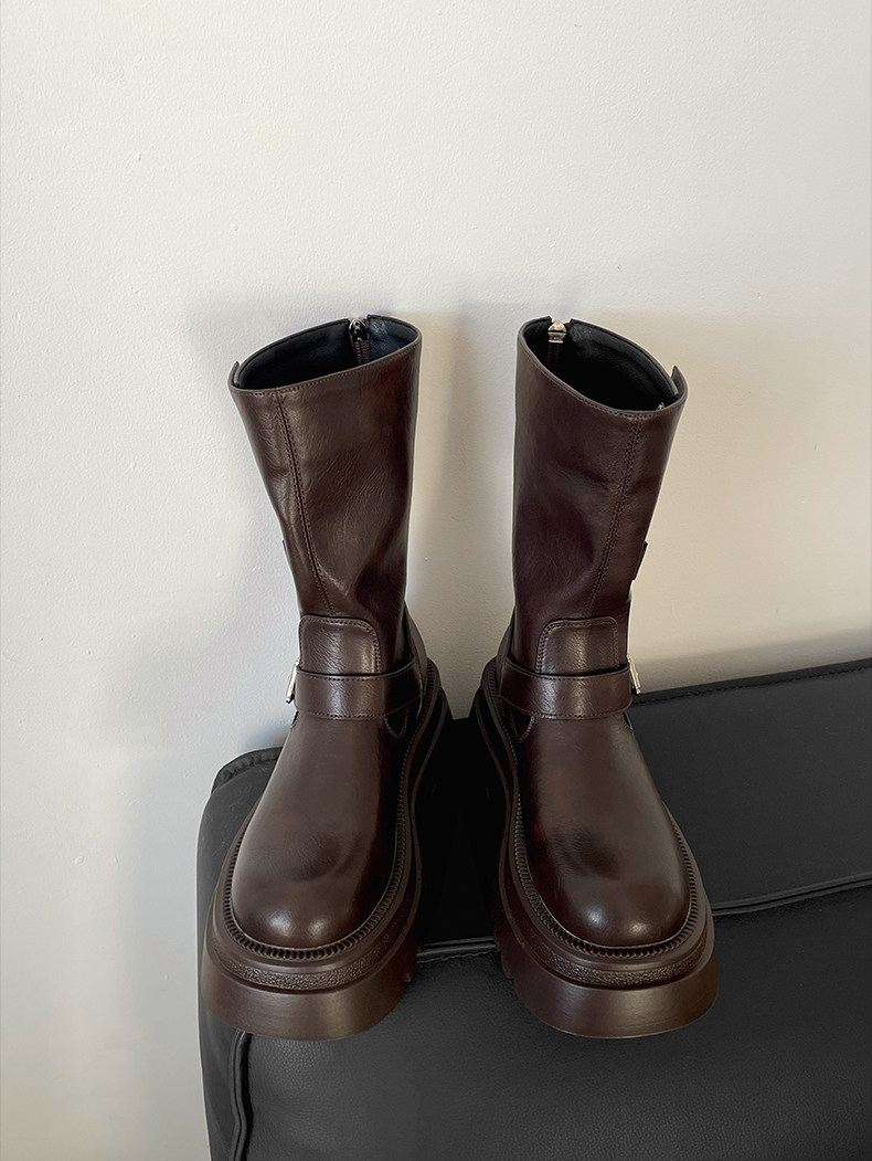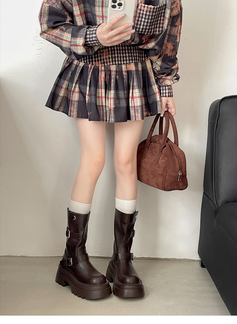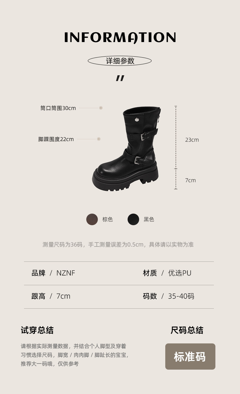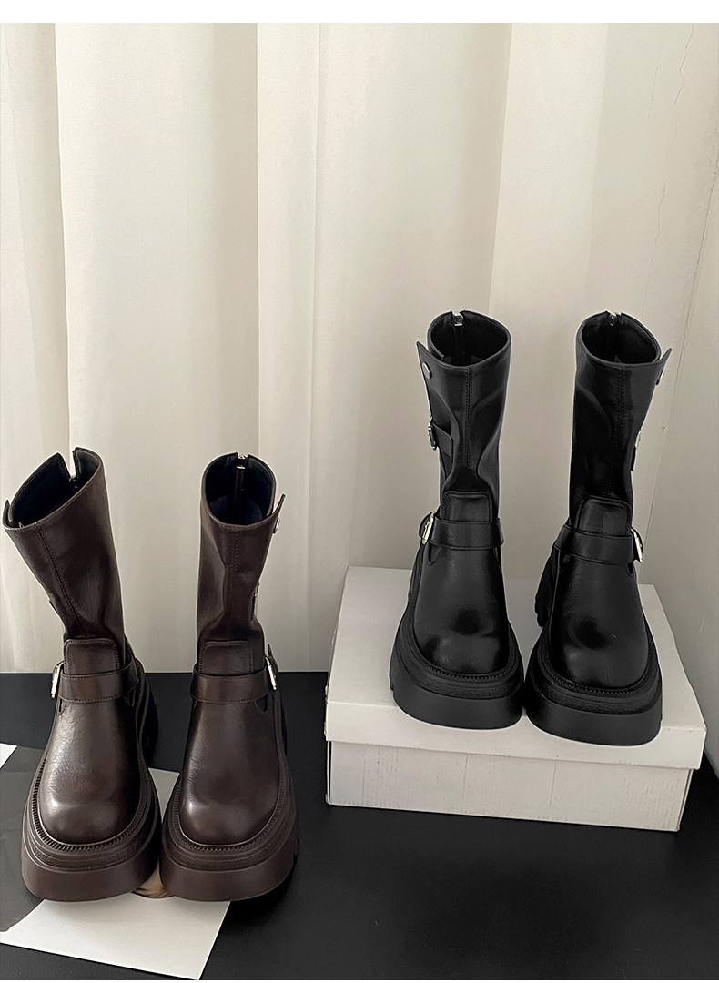 黑色復古英倫風粗跟厚底馬丁靴女款2025新款秋季增高顯瘦騎士短靴