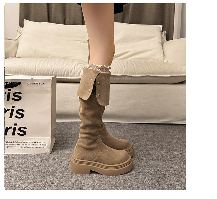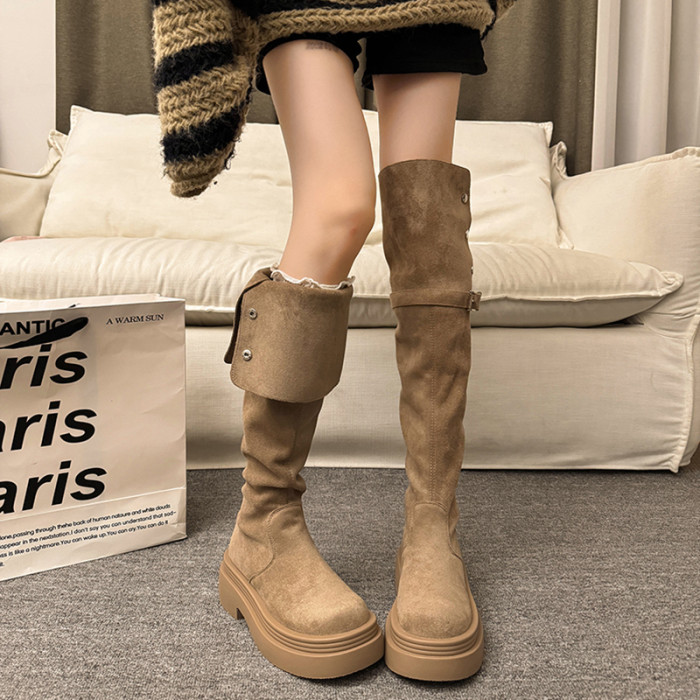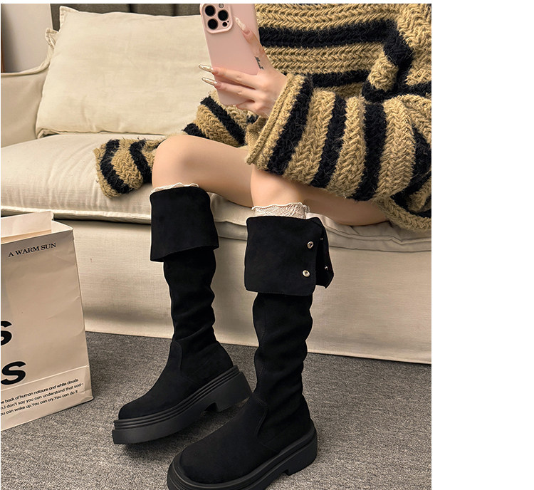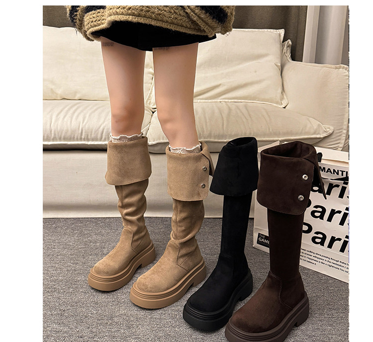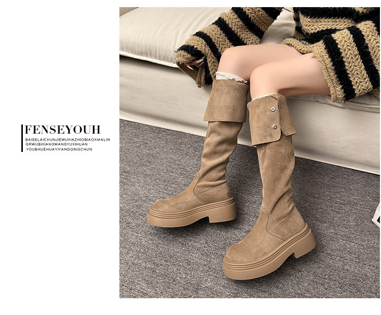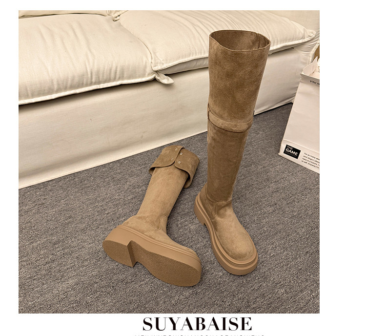 繙折兩穿過膝靴女2026秋冬新款厚底長筒靴女絨面顯瘦高筒騎士靴子