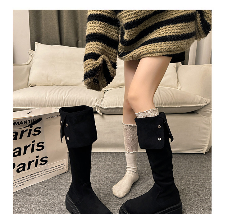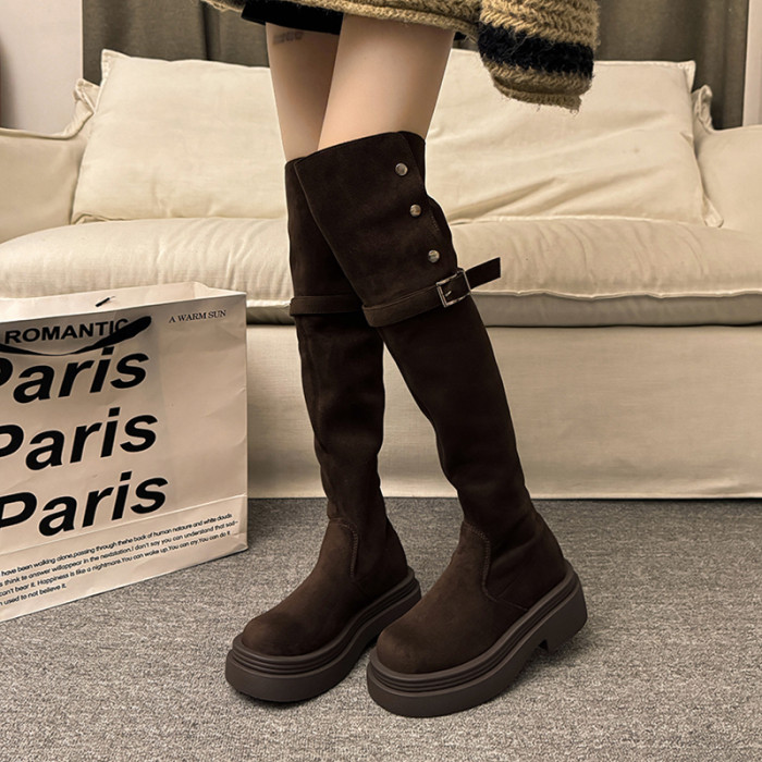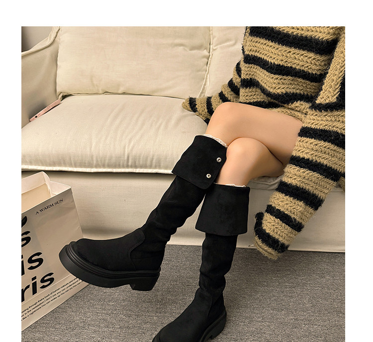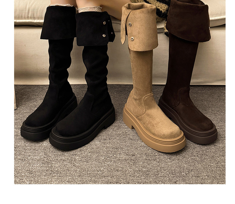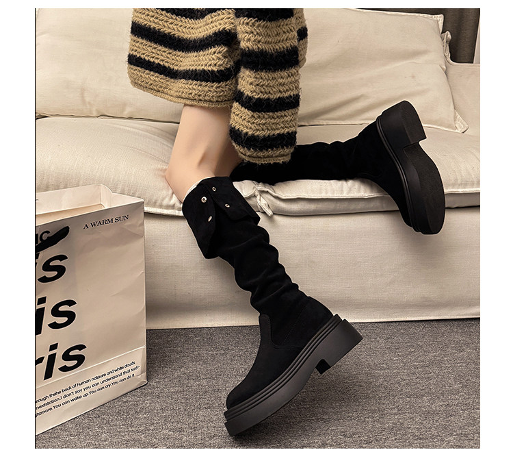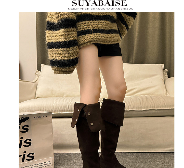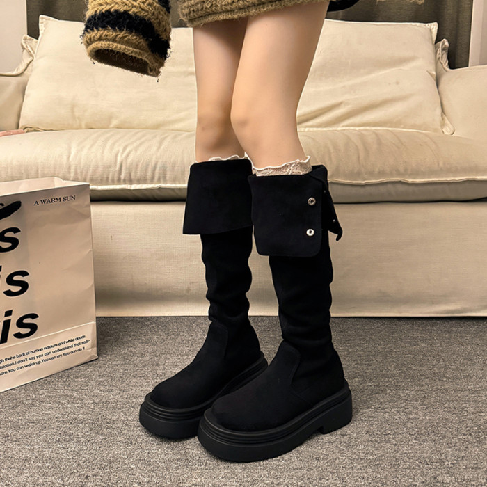 繙折兩穿過膝靴女2026秋冬新款厚底長筒靴女絨面顯瘦高筒騎士靴子