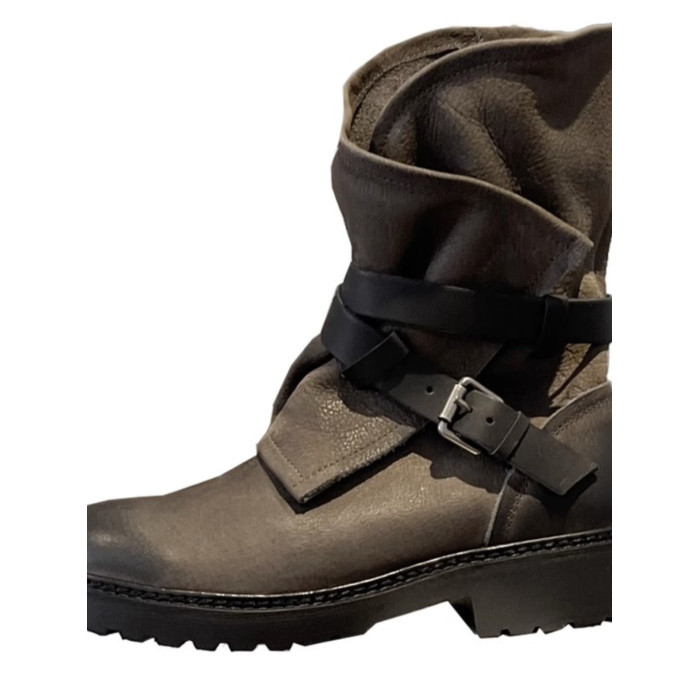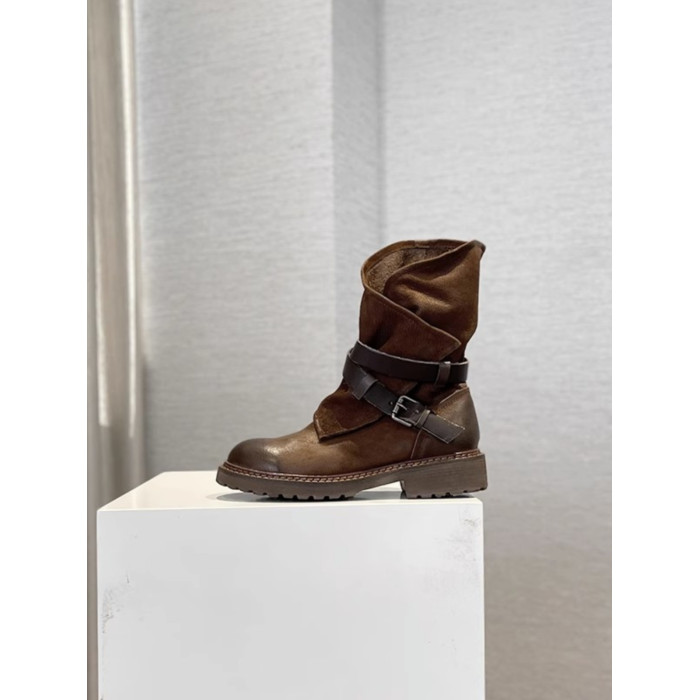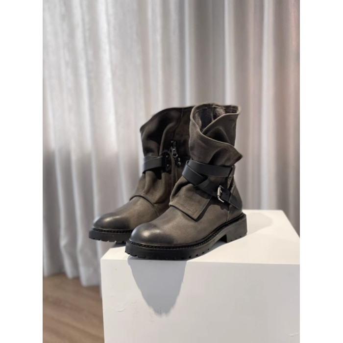 慵懶風軟皮西部牛仔復古英倫風真皮機車靴平底馬丁靴女顯瘦短靴