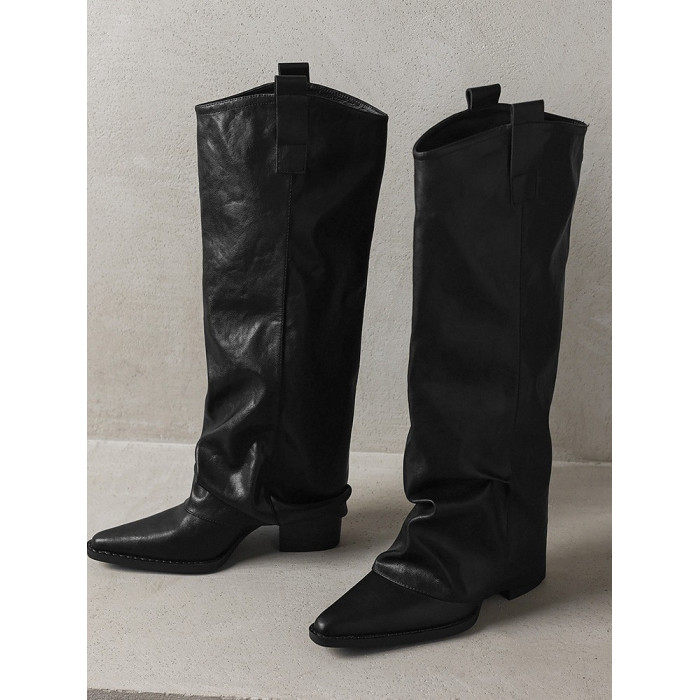 復古尖頭高跟褲琯靴女2026秋冬新款粗跟騎士靴超百搭不過膝長筒靴