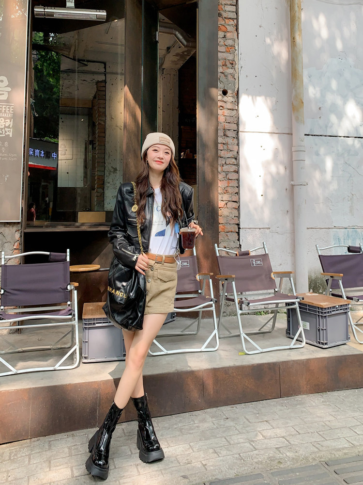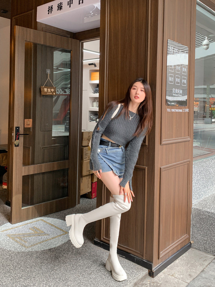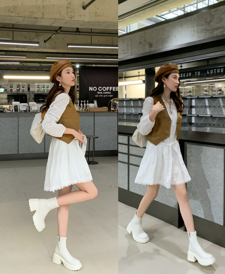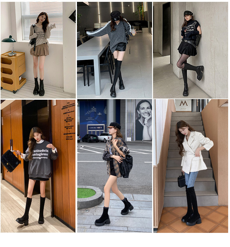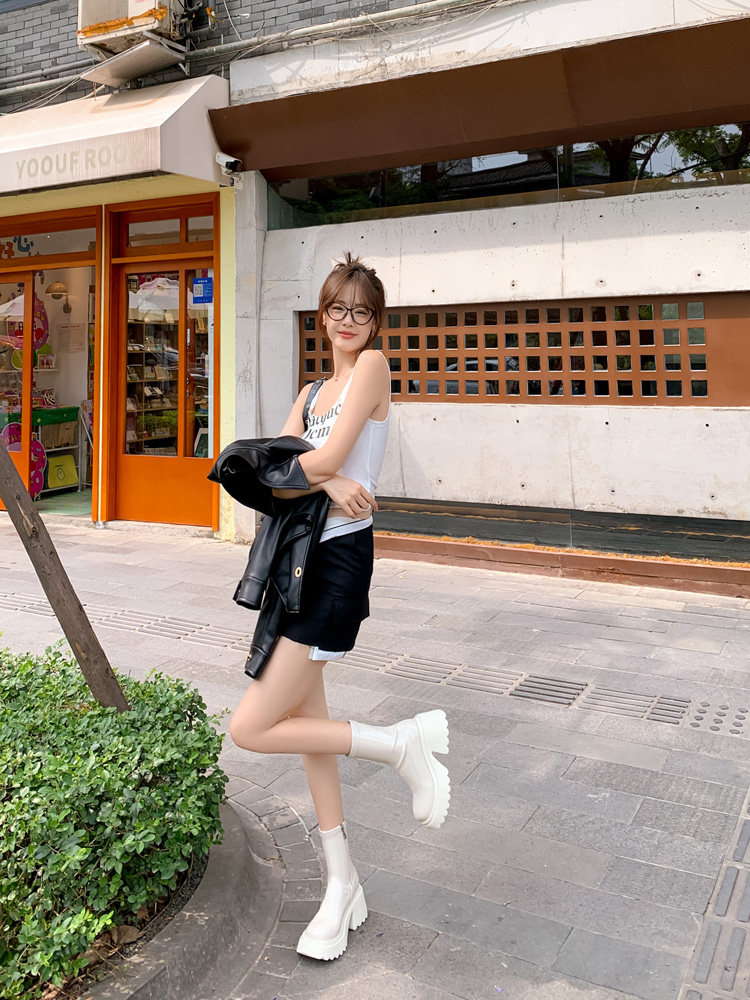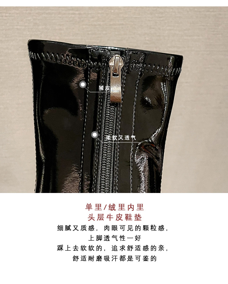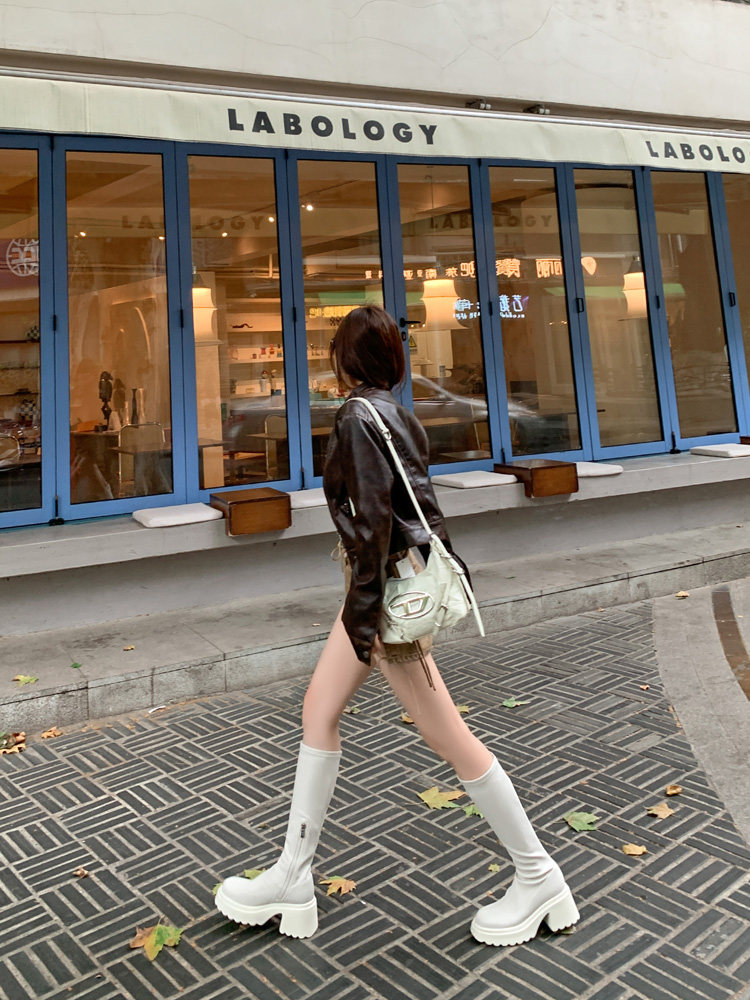 白色短靴彈力長靴子女小個子漆皮厚底高筒靴防水台過膝長筒騎士靴