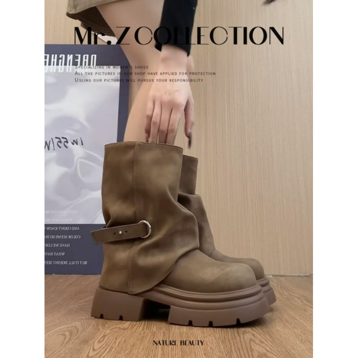 棕色厚底馬丁靴女款2025新款秋冬加絨增高褲琯英倫風美拉德短靴子