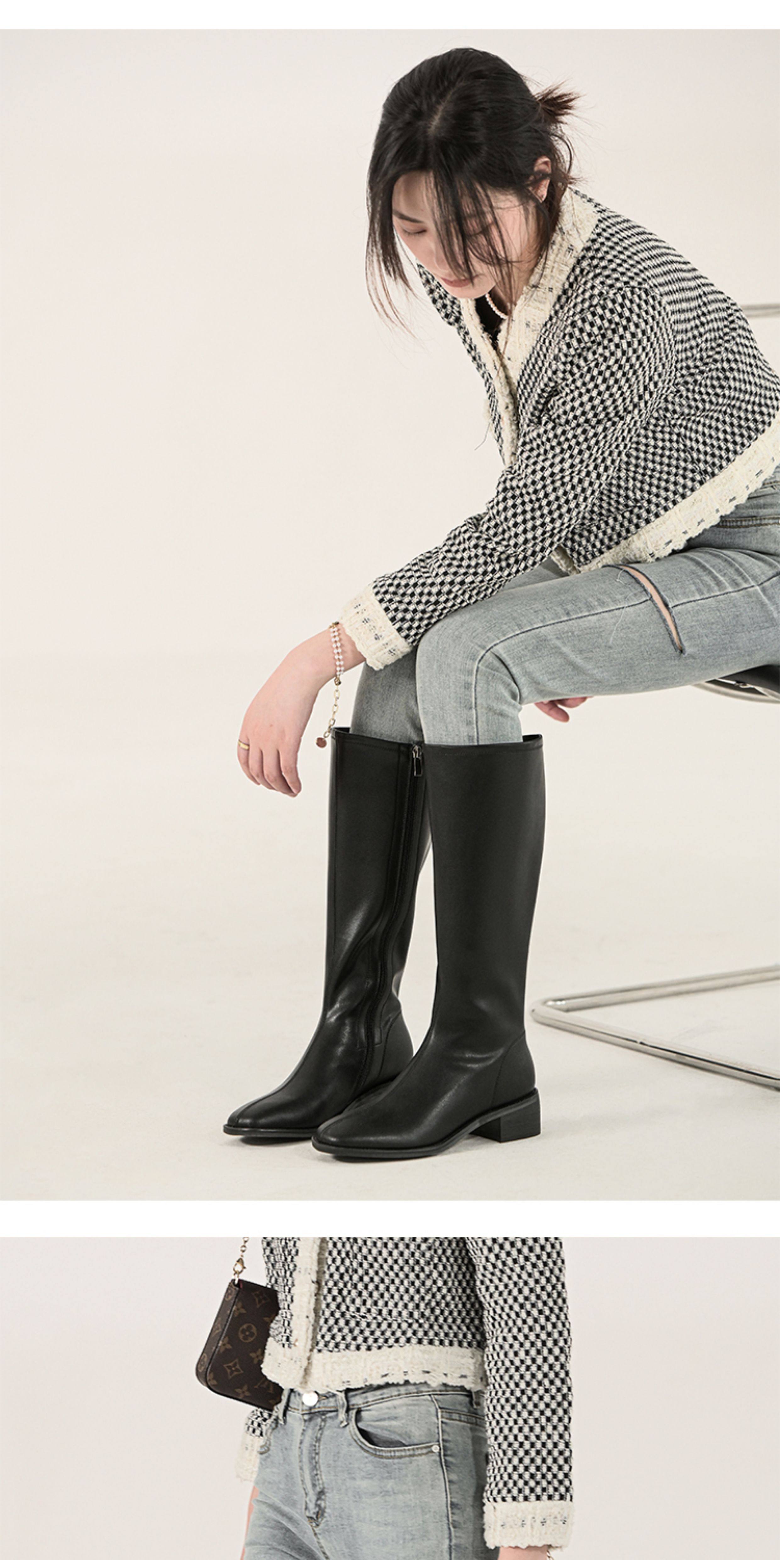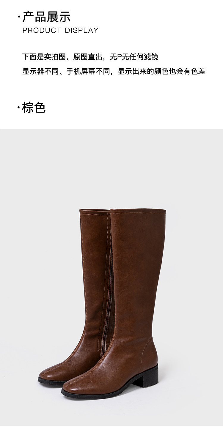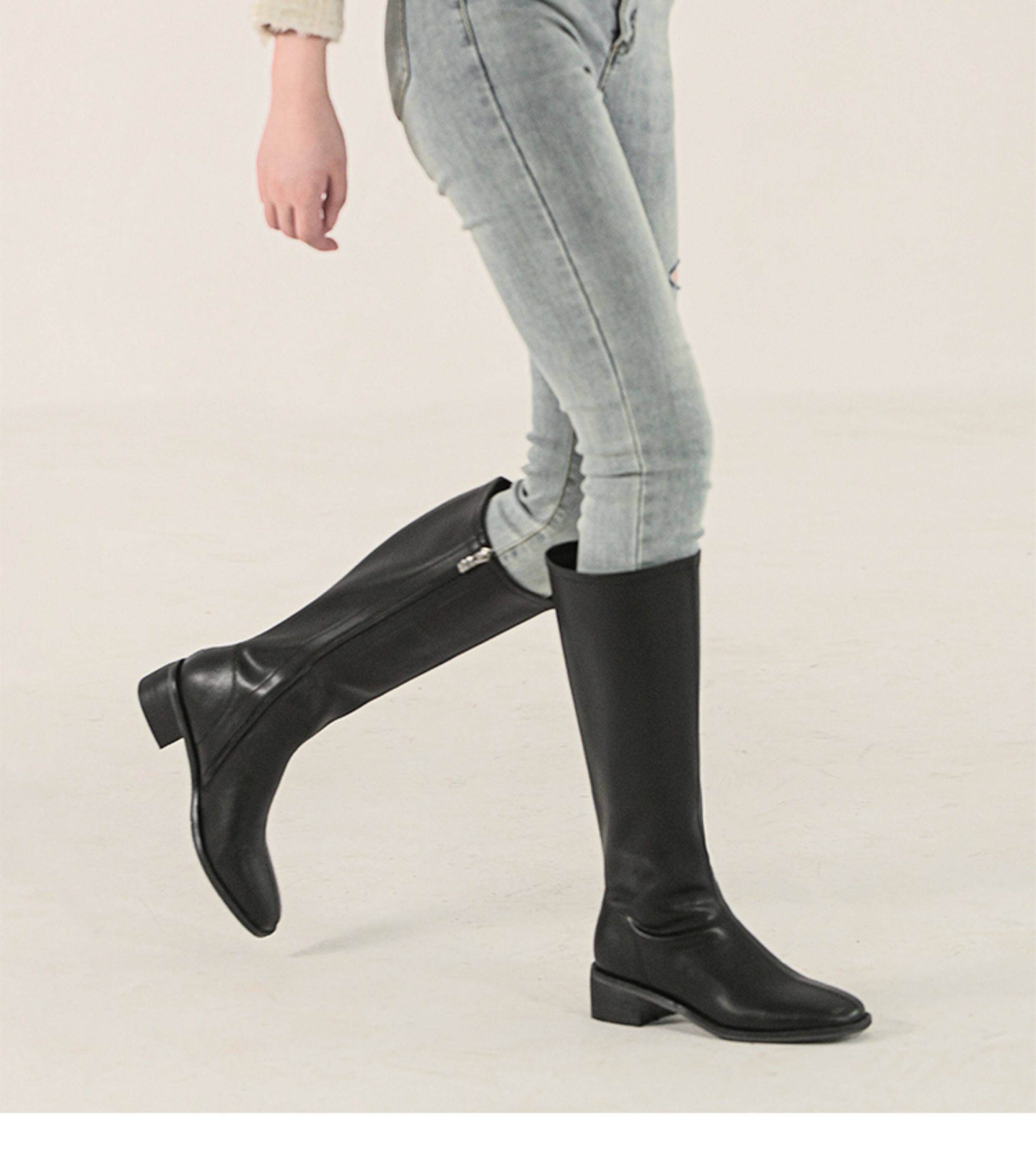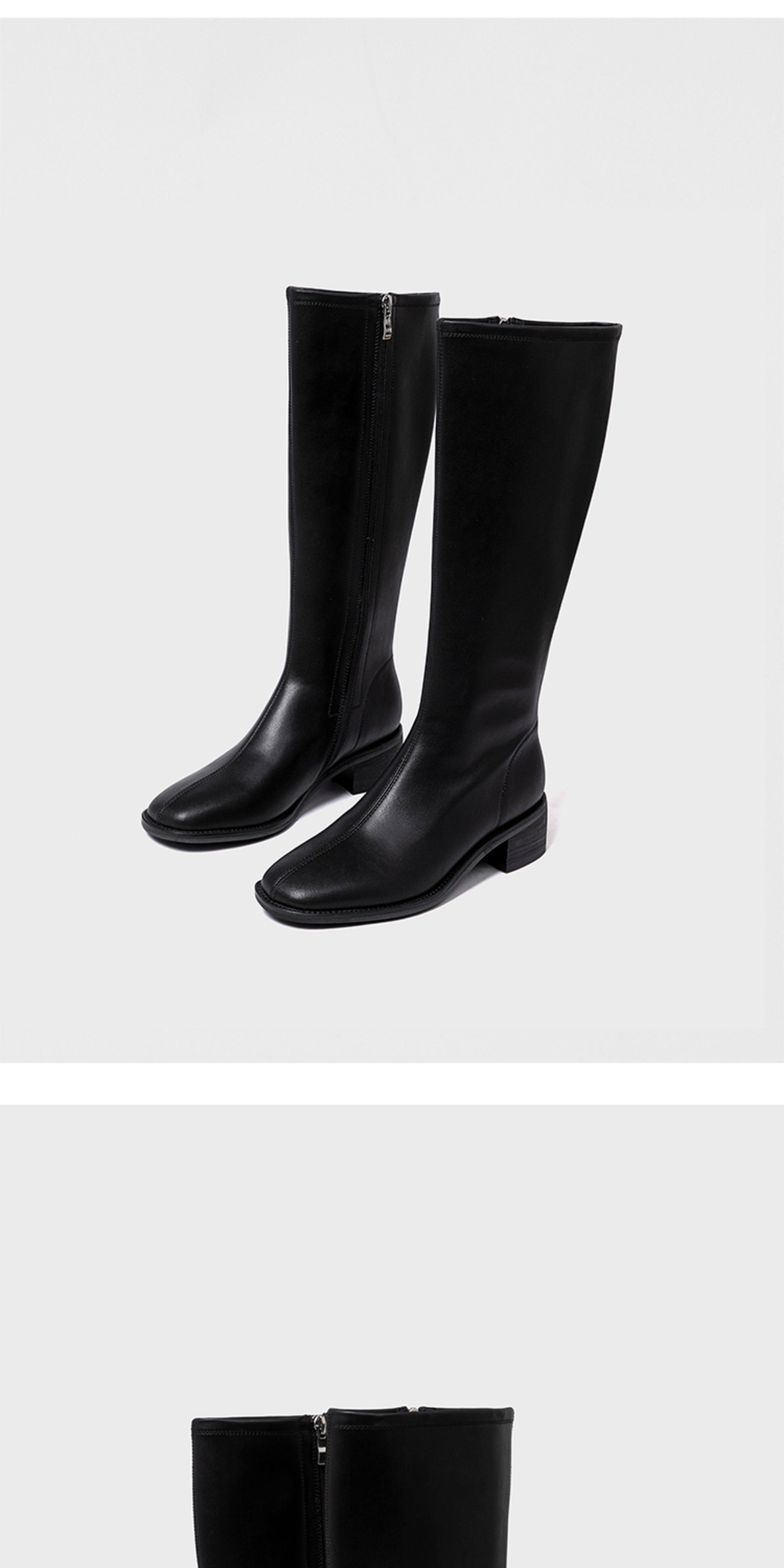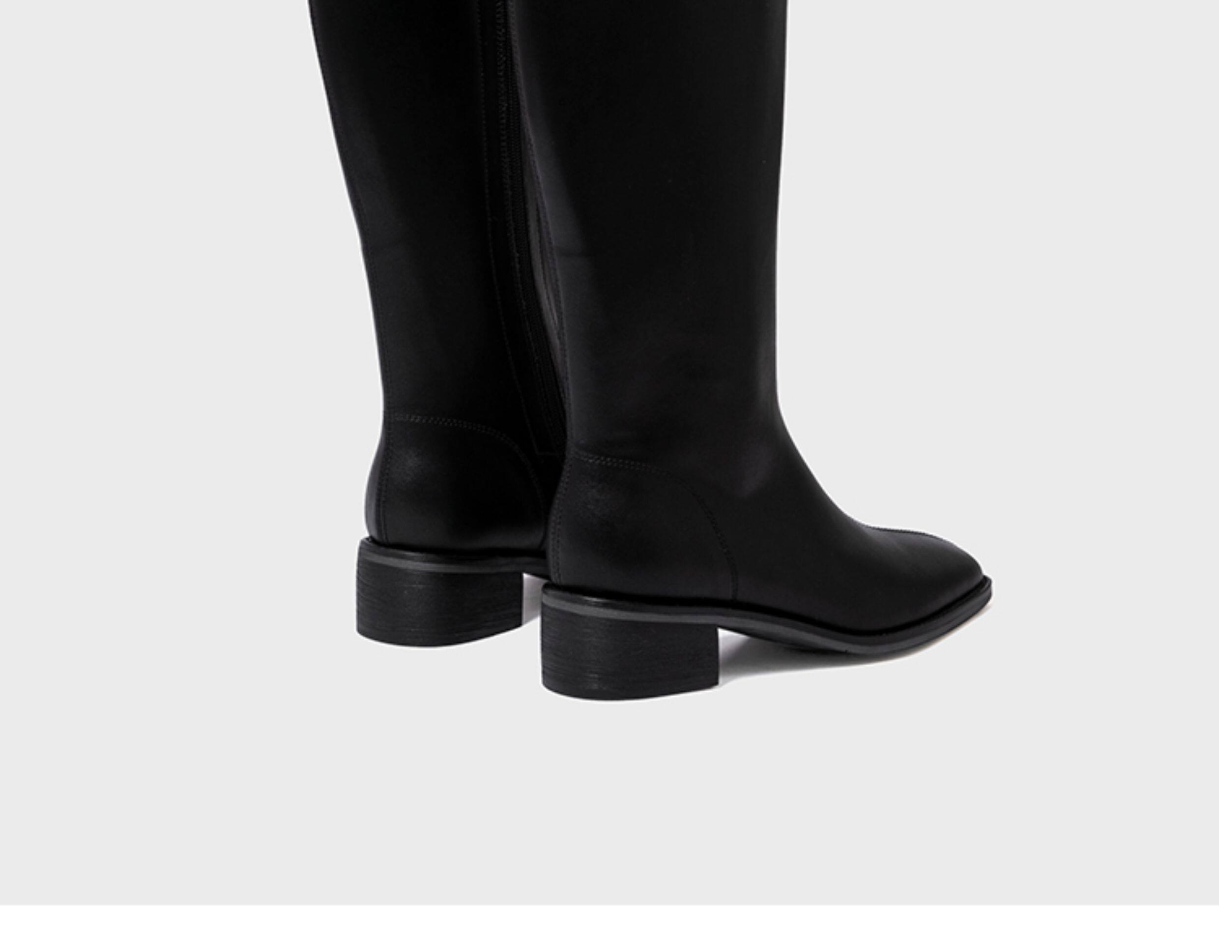 ST三人行 焦糖甜棕|真皮長靴中跟不過膝靴牛皮方頭粗跟高筒騎士靴