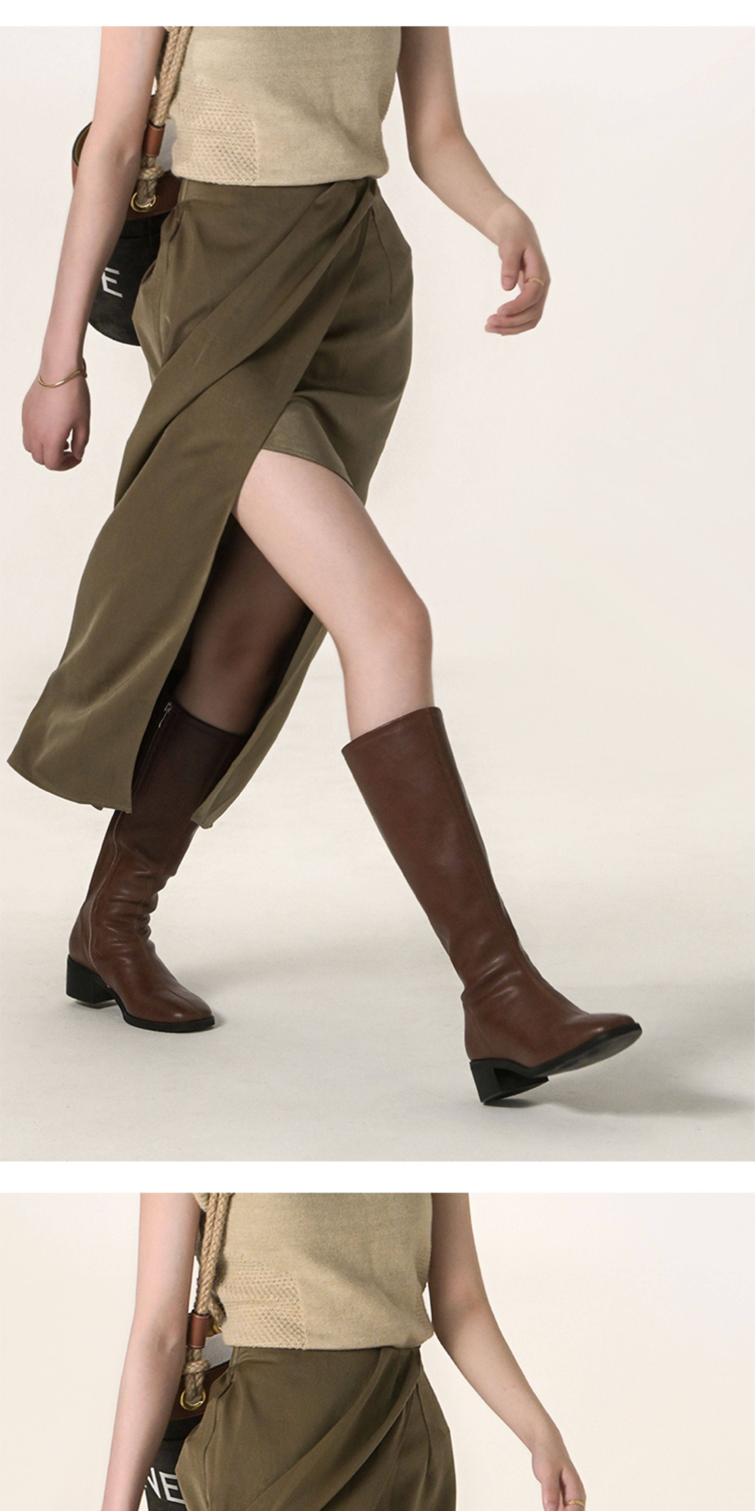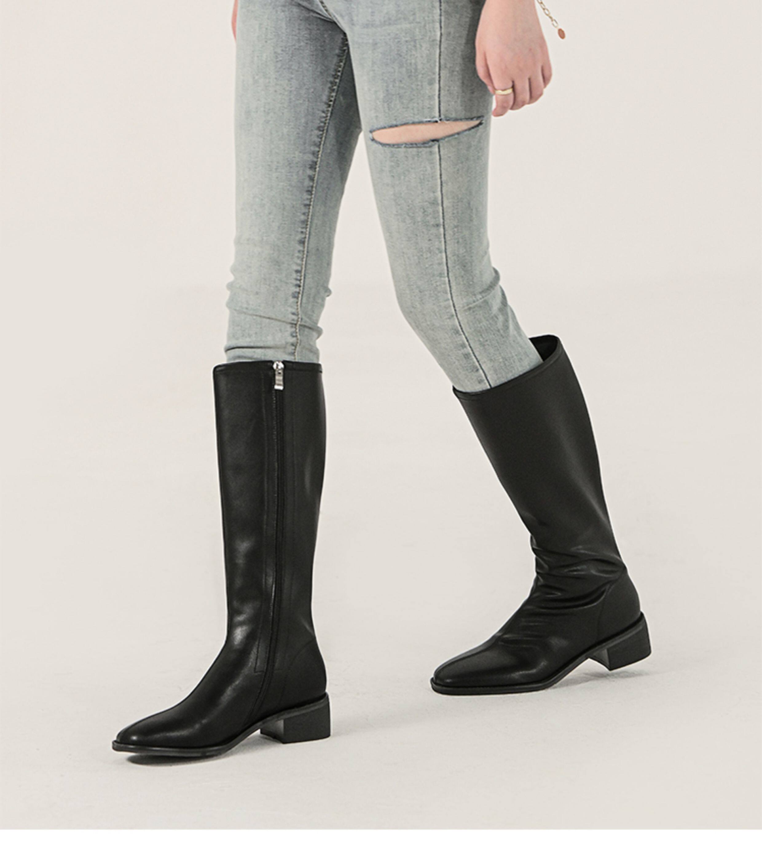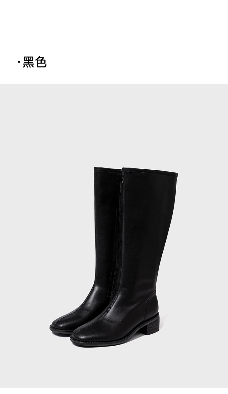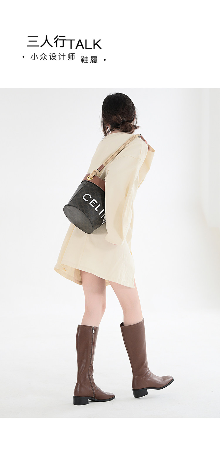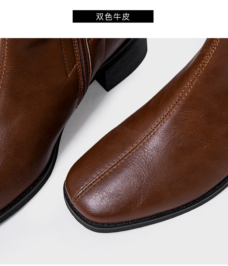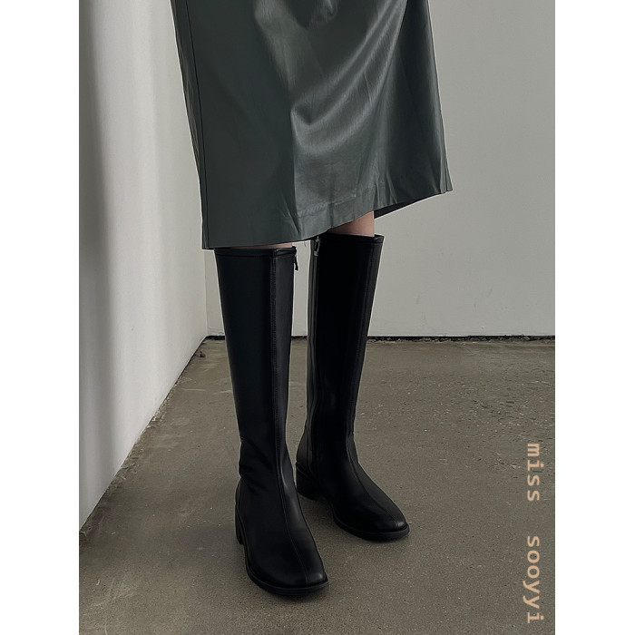 ST三人行 焦糖甜棕|真皮長靴中跟不過膝靴牛皮方頭粗跟高筒騎士靴