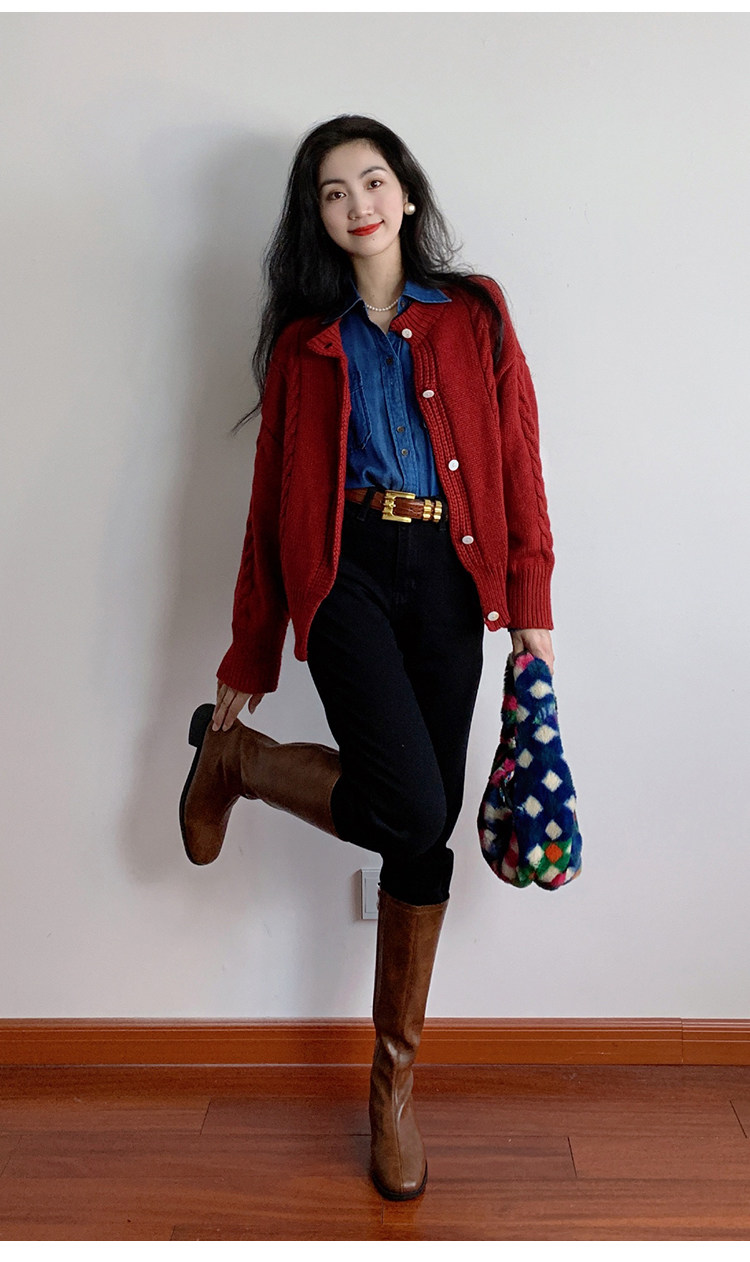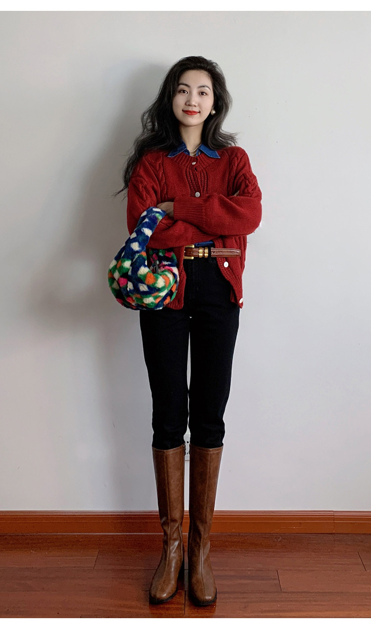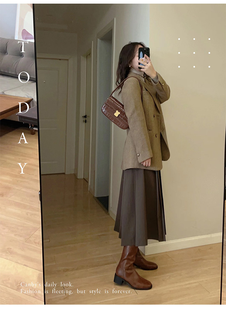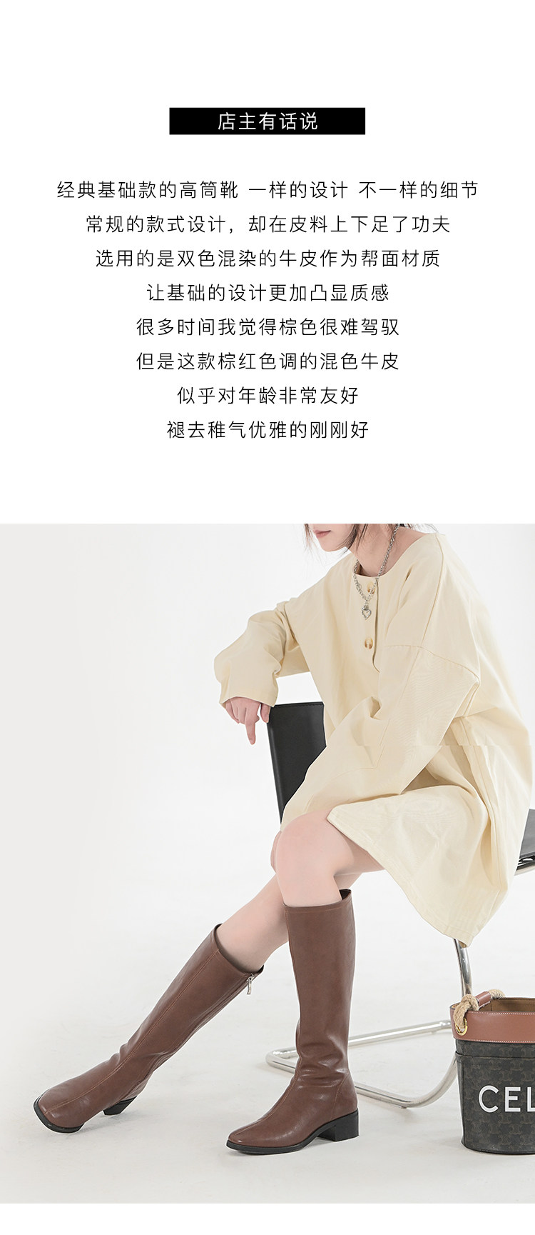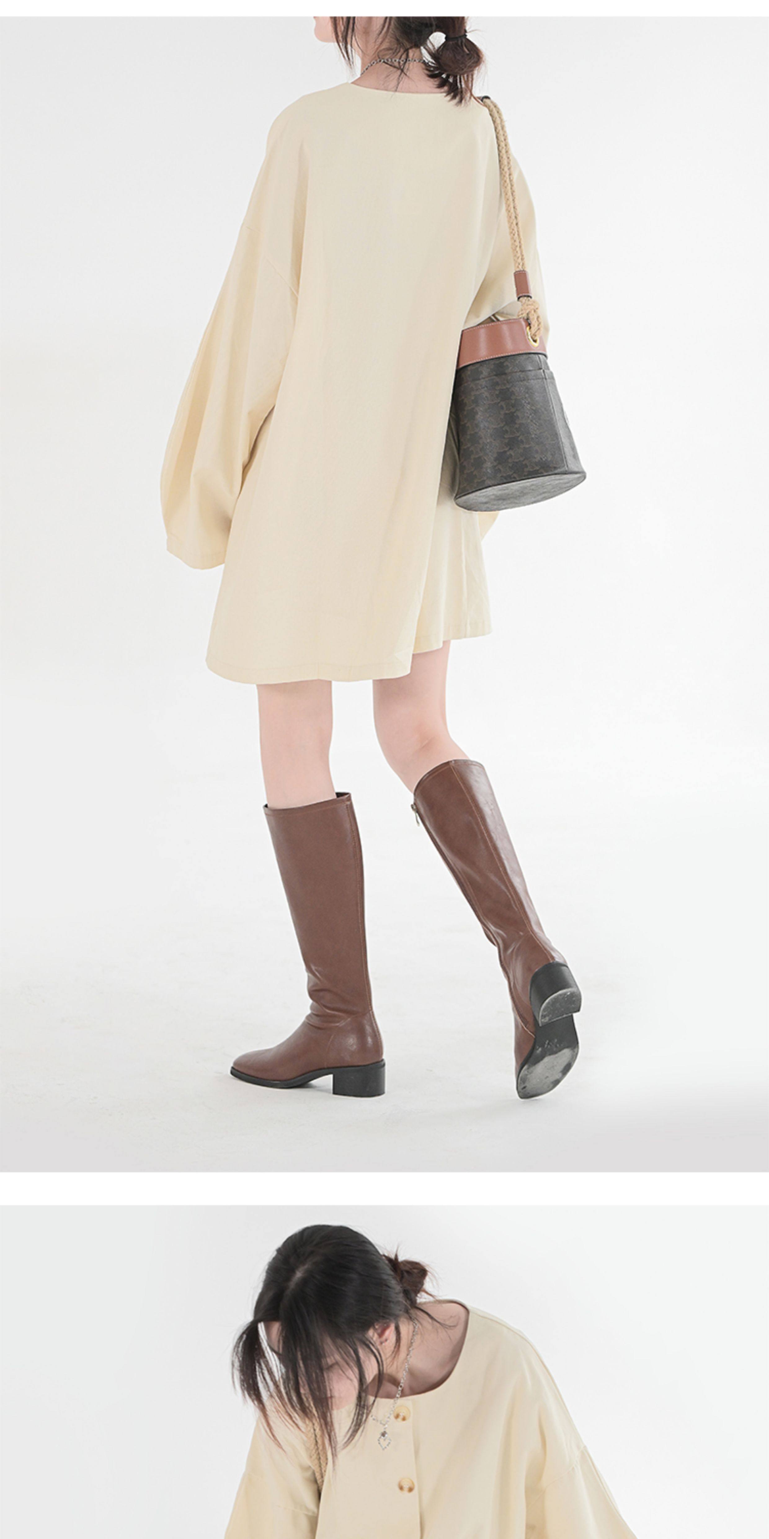 ST三人行 焦糖甜棕|真皮長靴中跟不過膝靴牛皮方頭粗跟高筒騎士靴