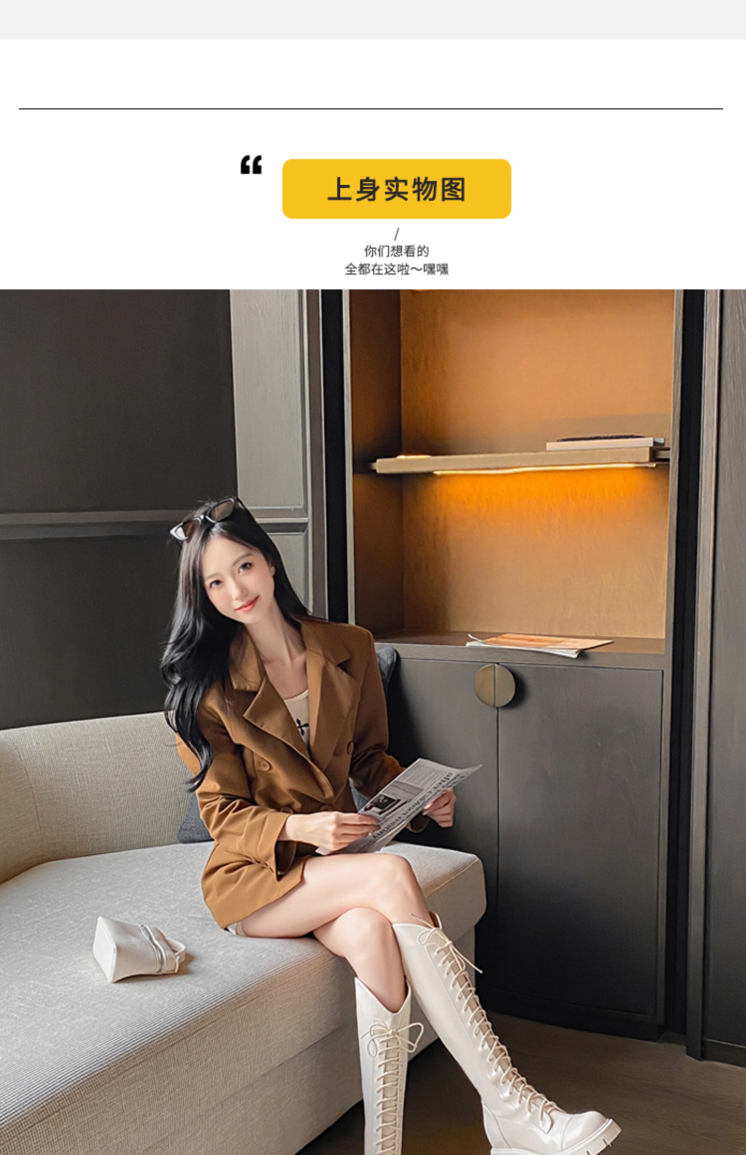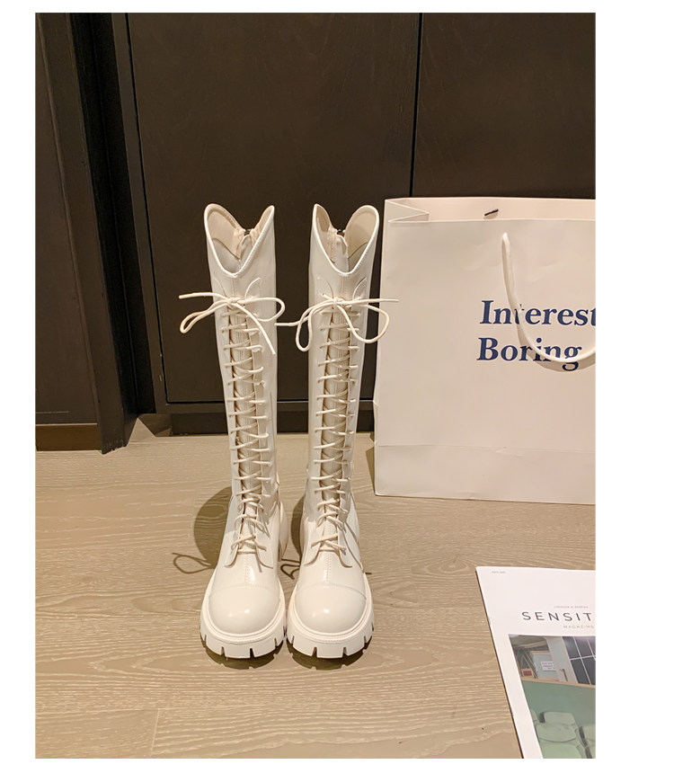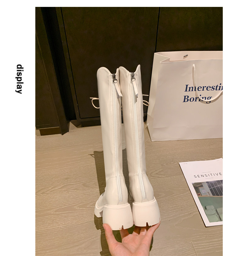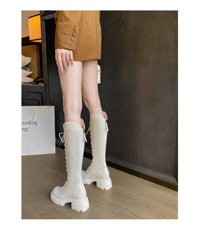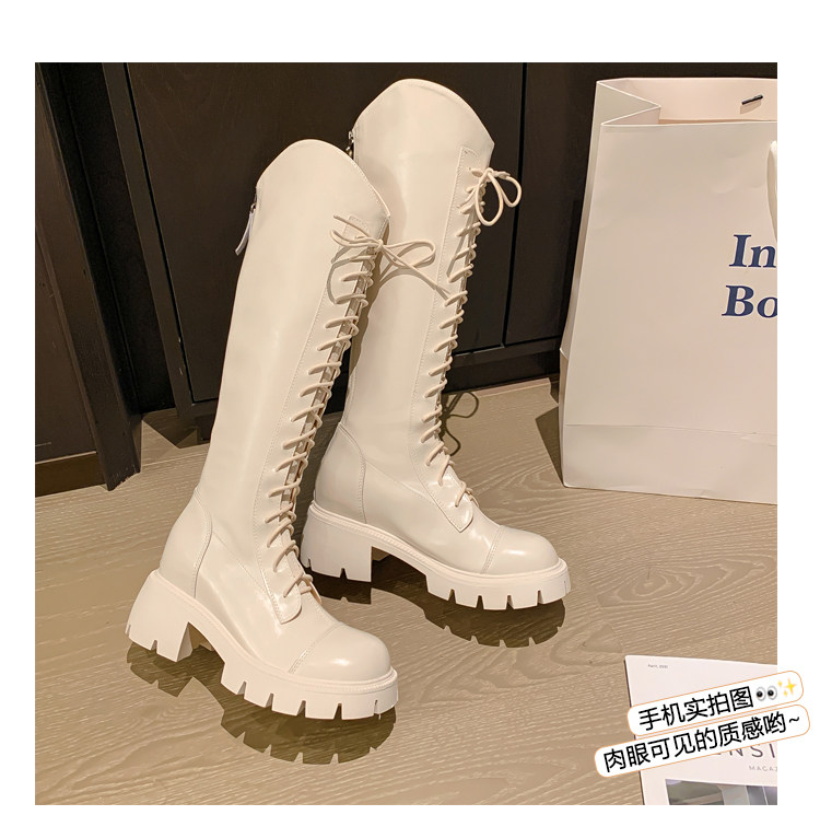 真皮長筒靴女2025秋冬加絨白色高筒靴v口顯瘦長靴百搭厚底騎士靴