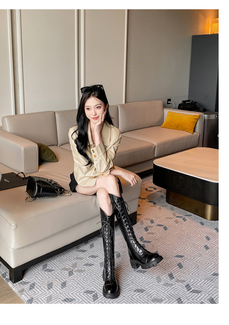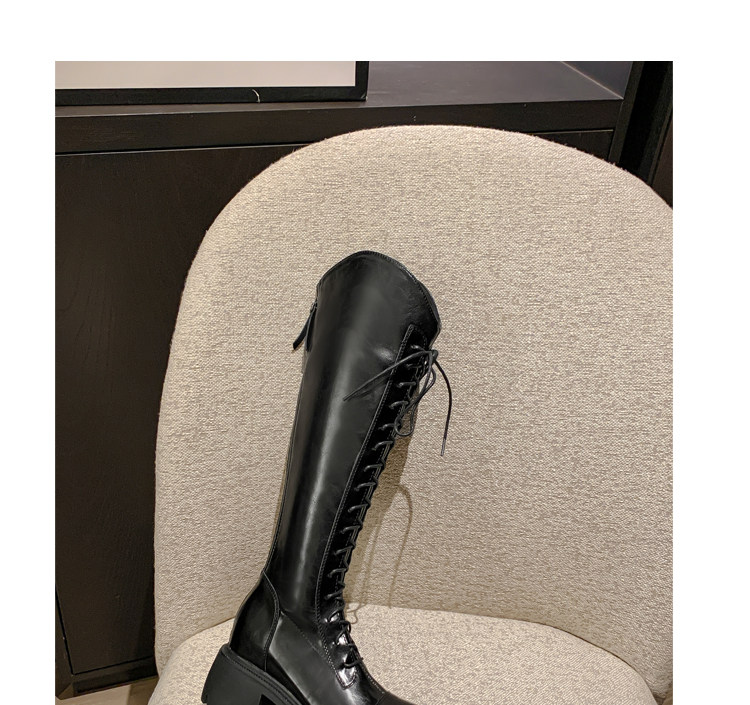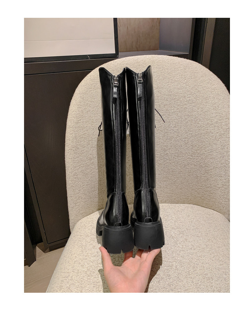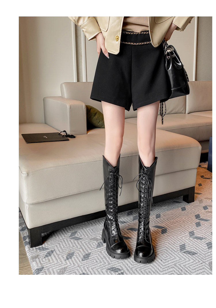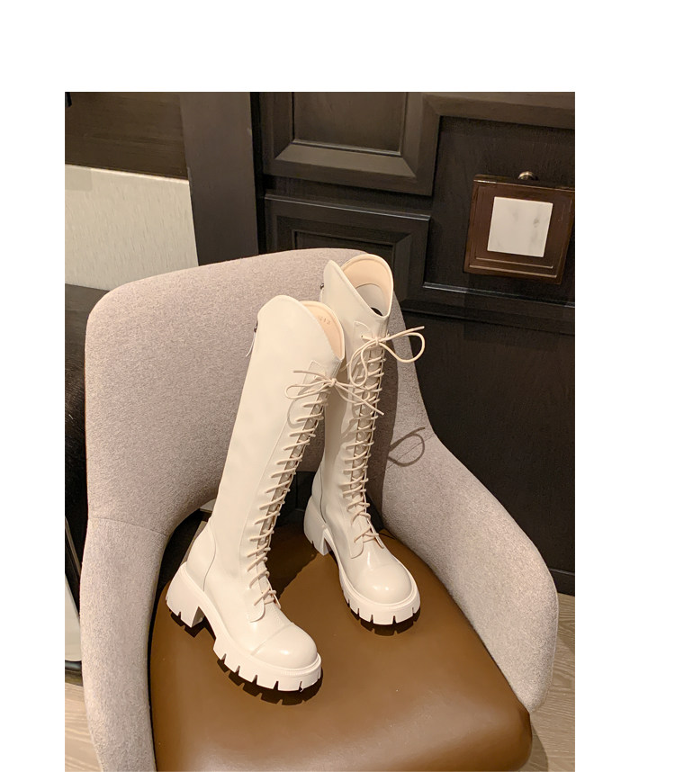 真皮長筒靴女2025秋冬加絨白色高筒靴v口顯瘦長靴百搭厚底騎士靴