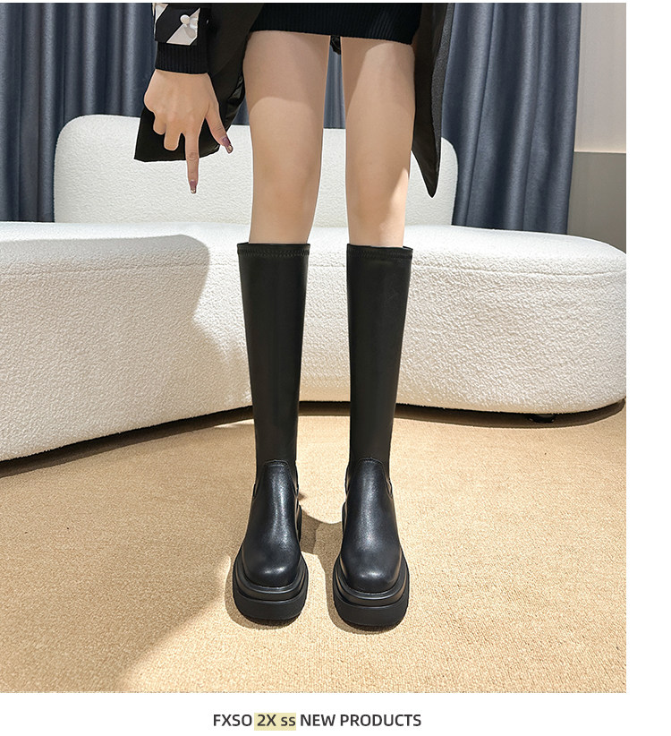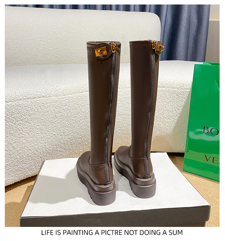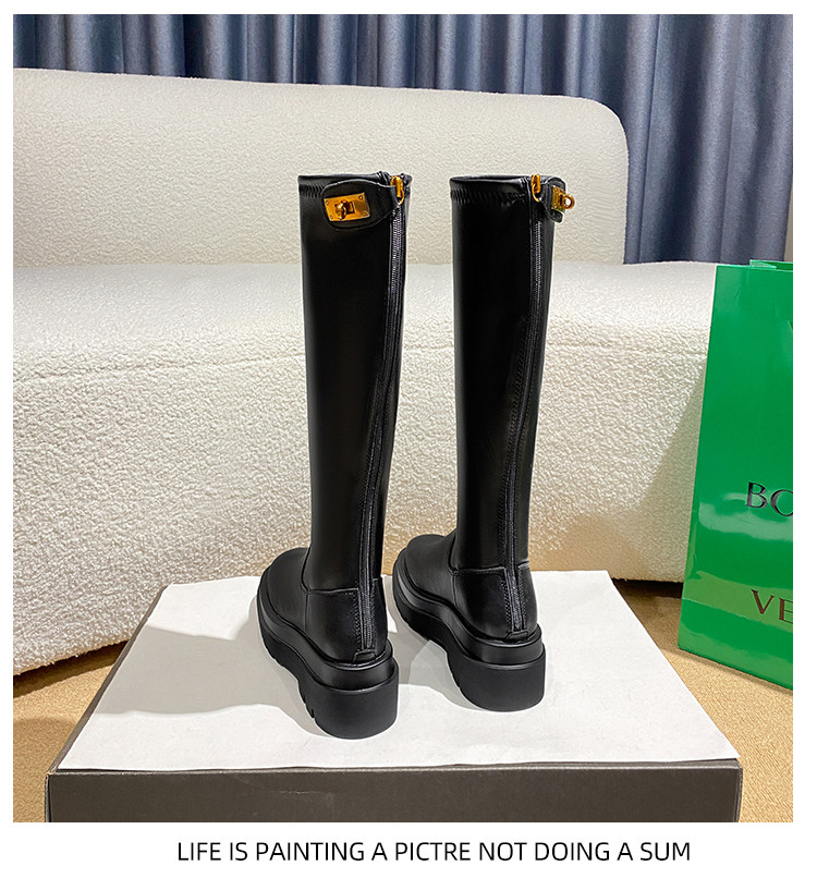 9CM內增高長筒靴女2025爆款洋氣小個子顯腿長靴子厚底英倫騎士靴