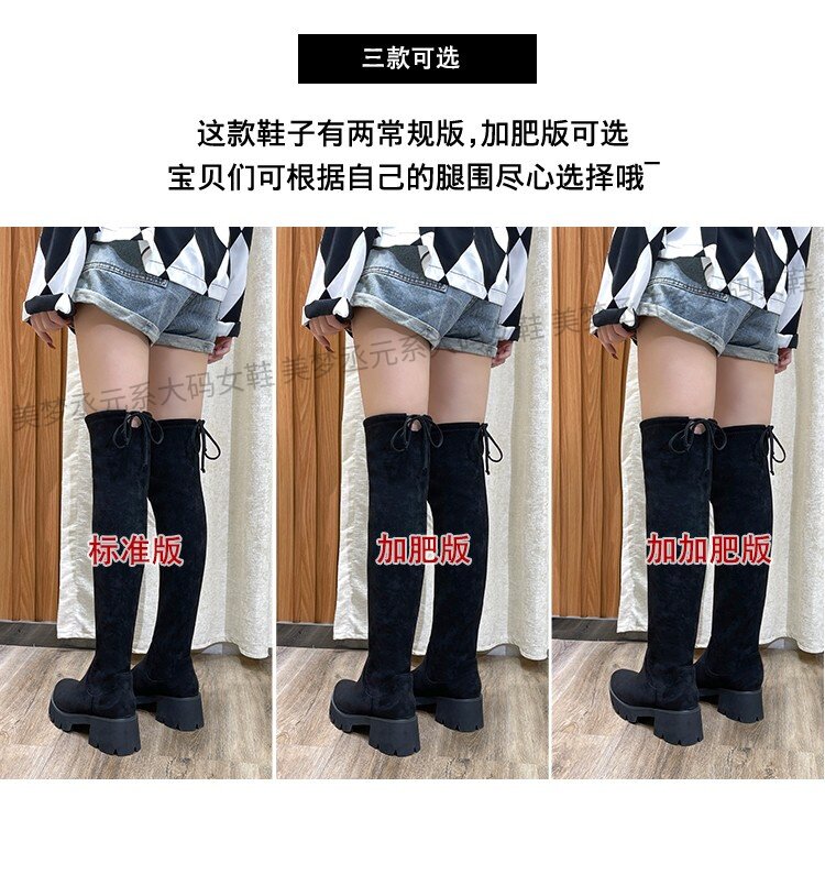 胖MM彈力瘦瘦靴黑色過膝長靴女長筒靴加絨大筒圍高筒靴大碼女靴41