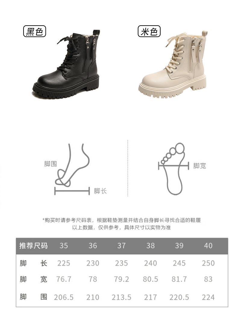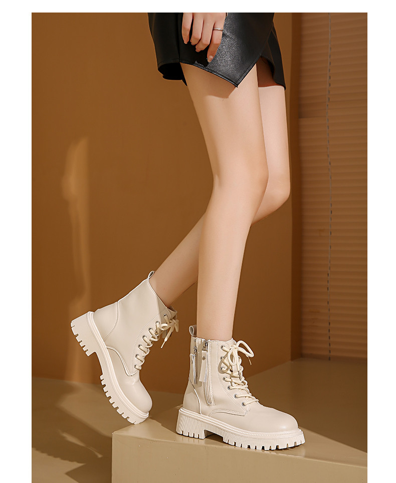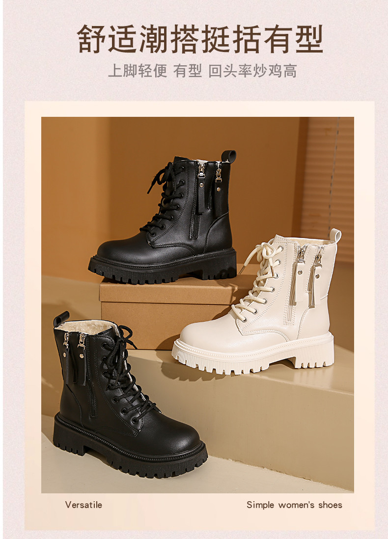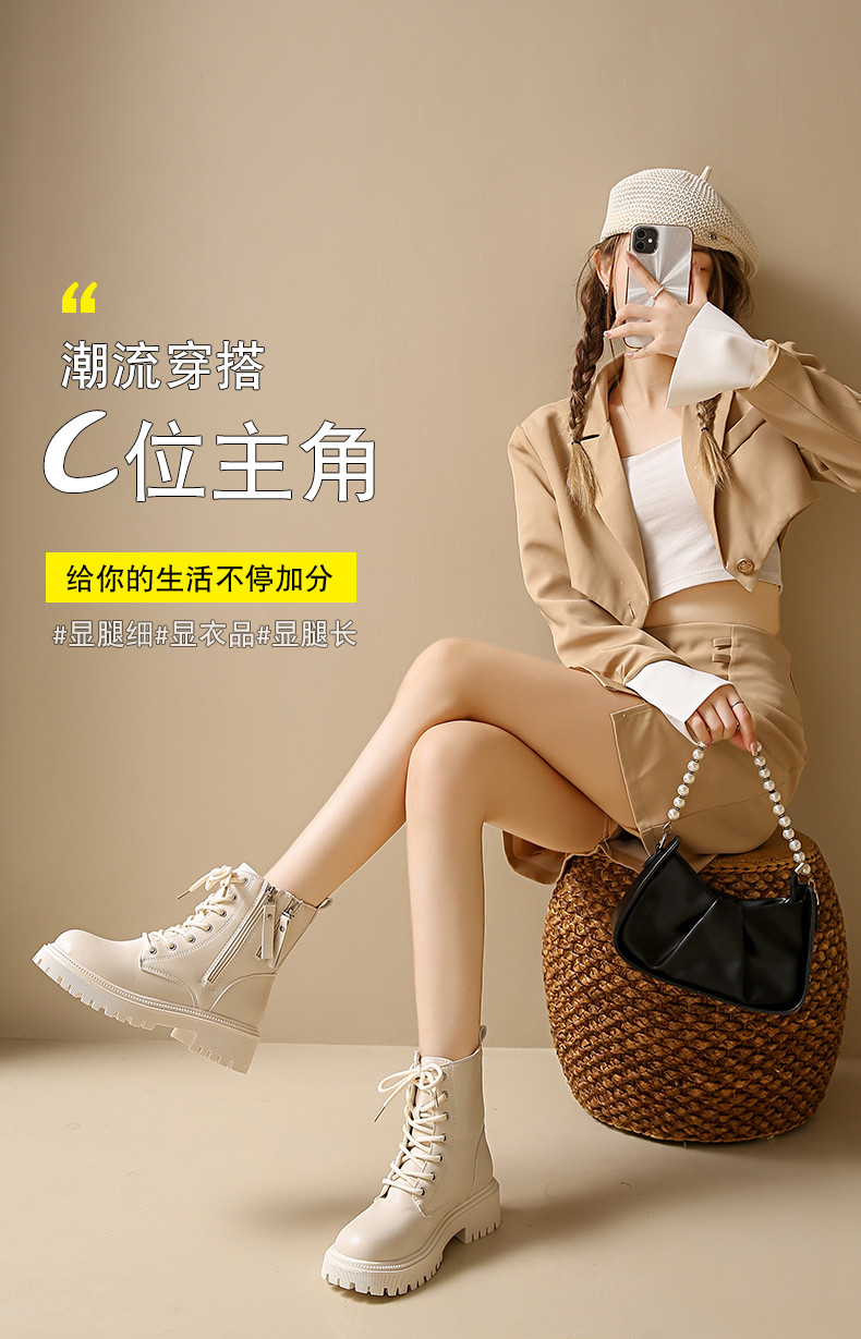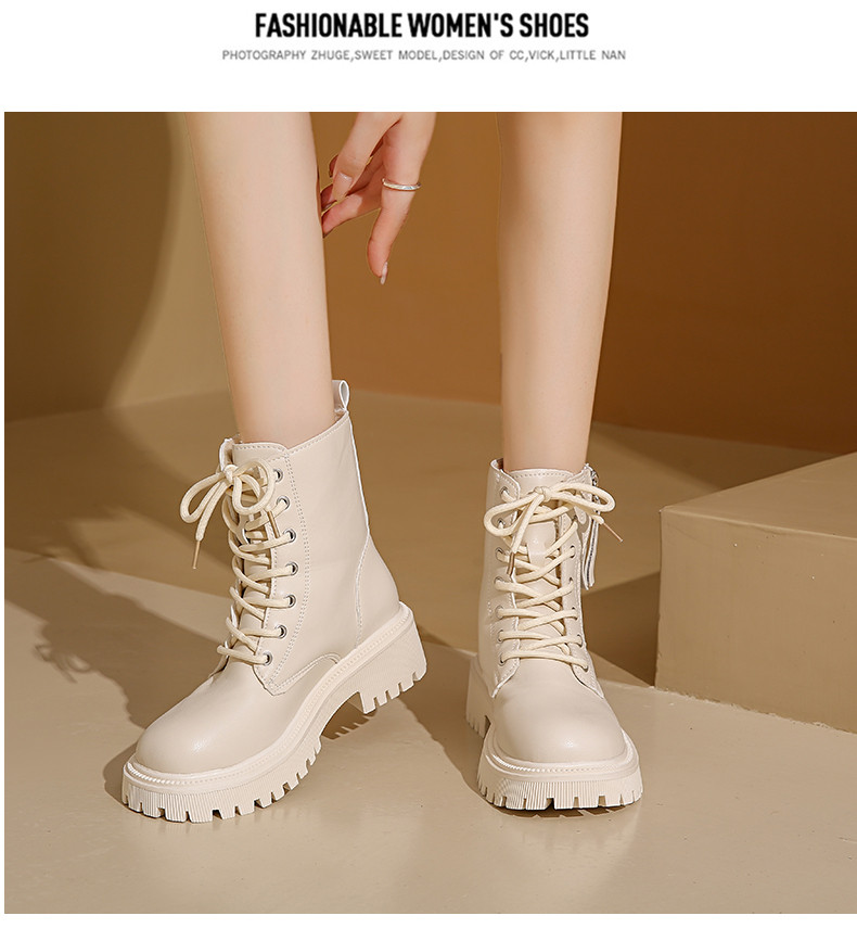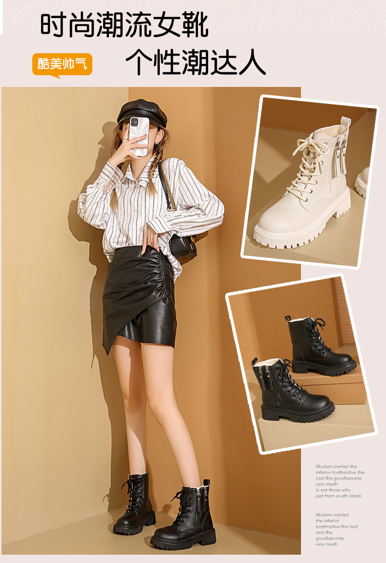 馬丁靴女款2025新款英倫風冬季厚底白色短靴配裙子大碼高幫靴子女