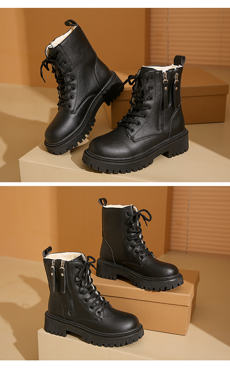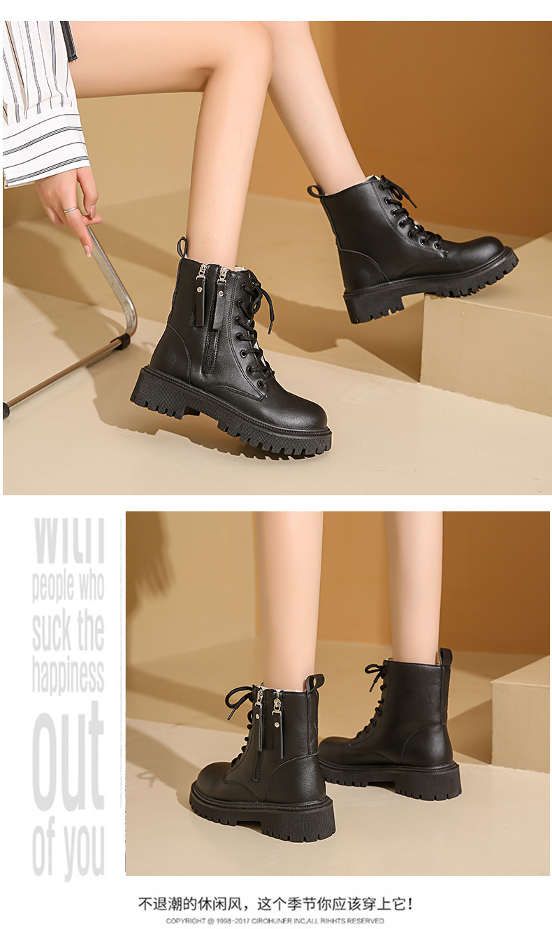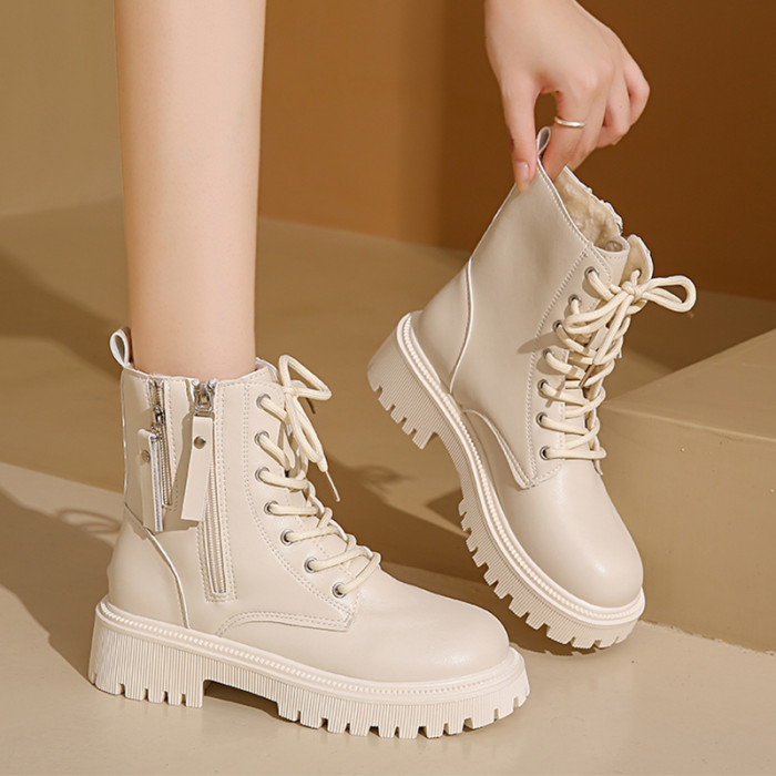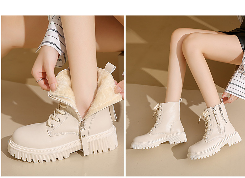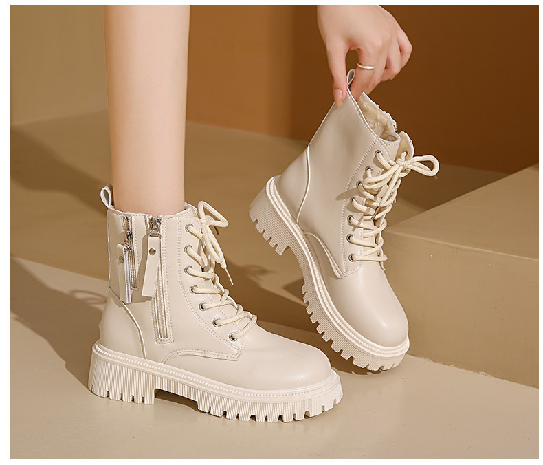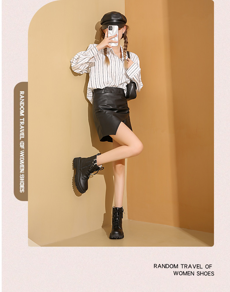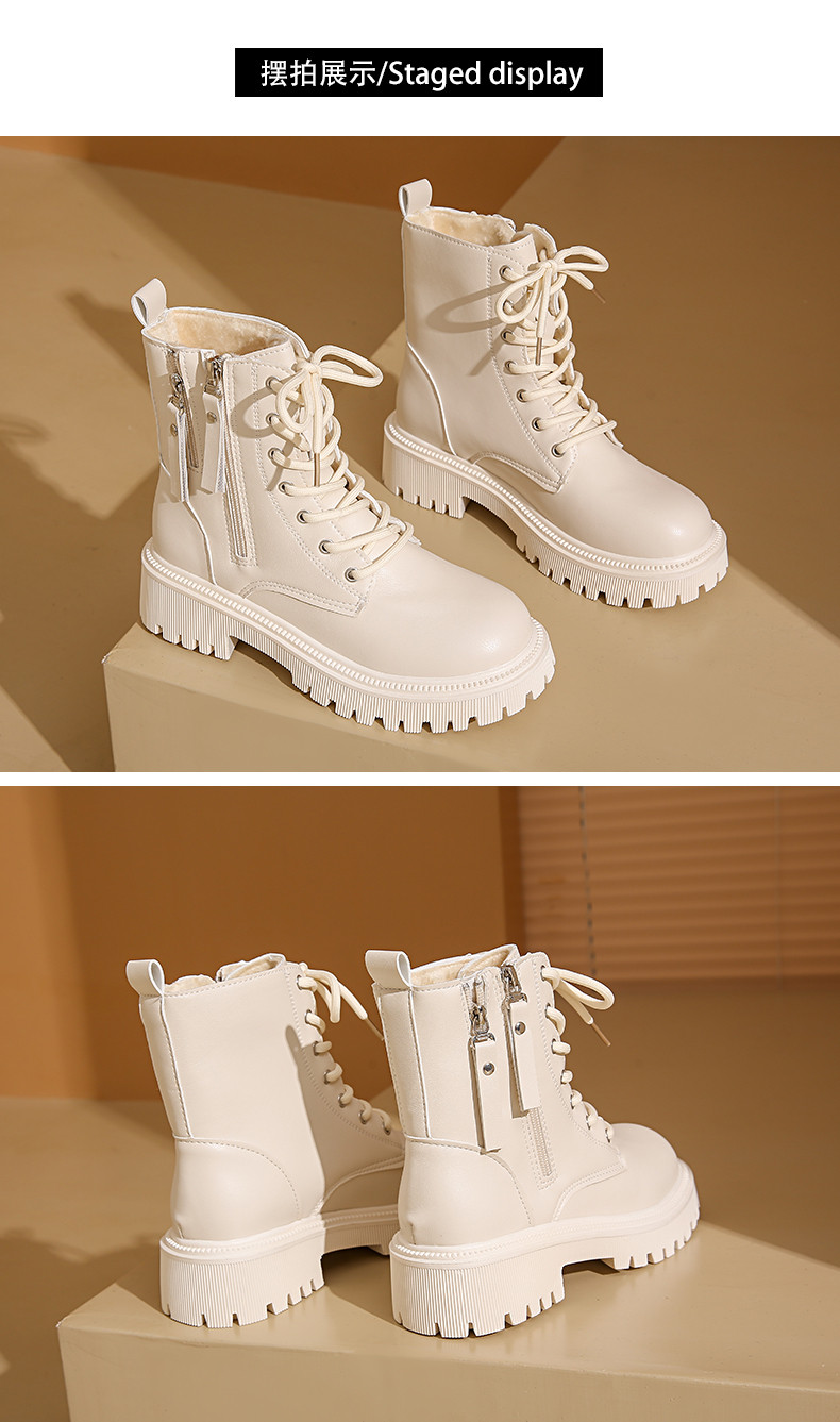 馬丁靴女款2025新款英倫風冬季厚底白色短靴配裙子大碼高幫靴子女
